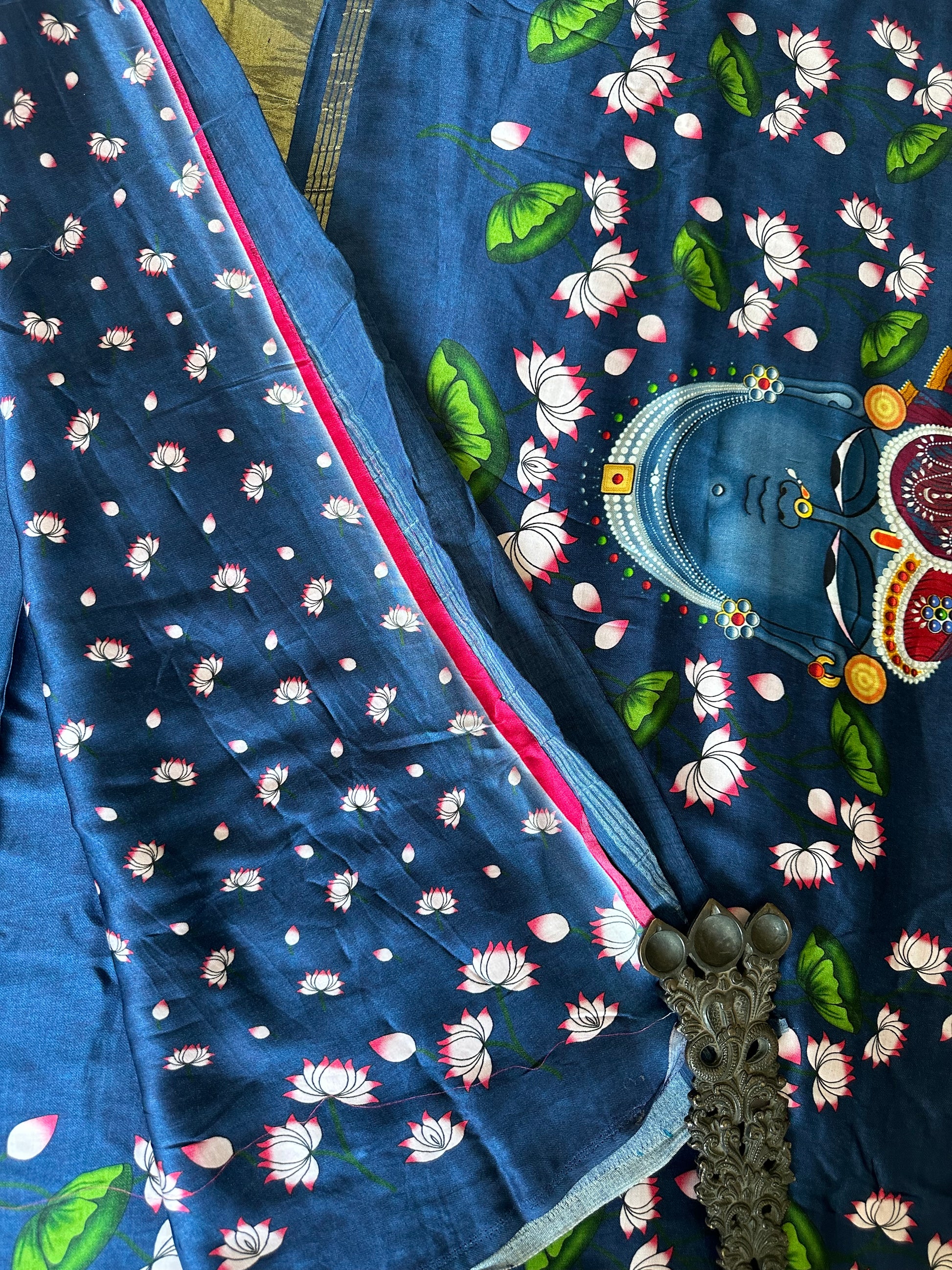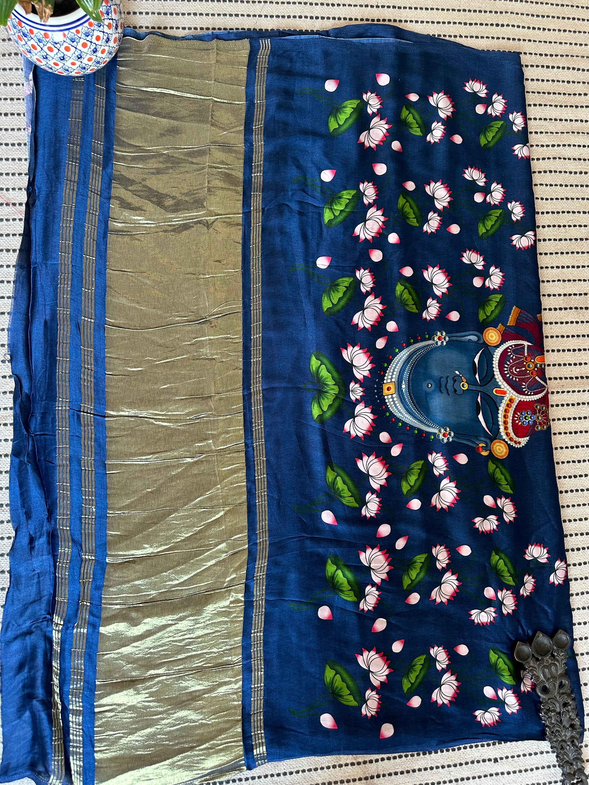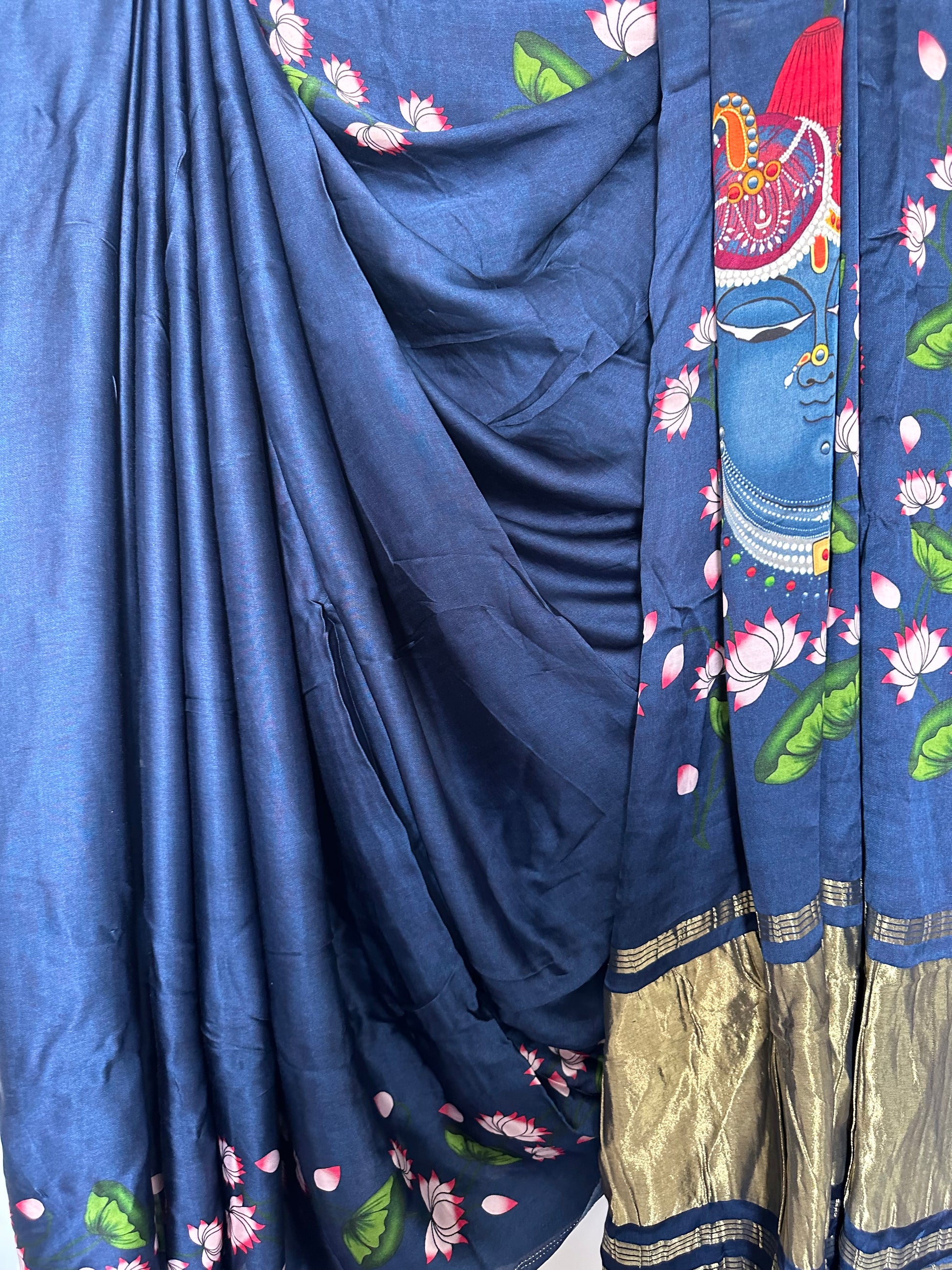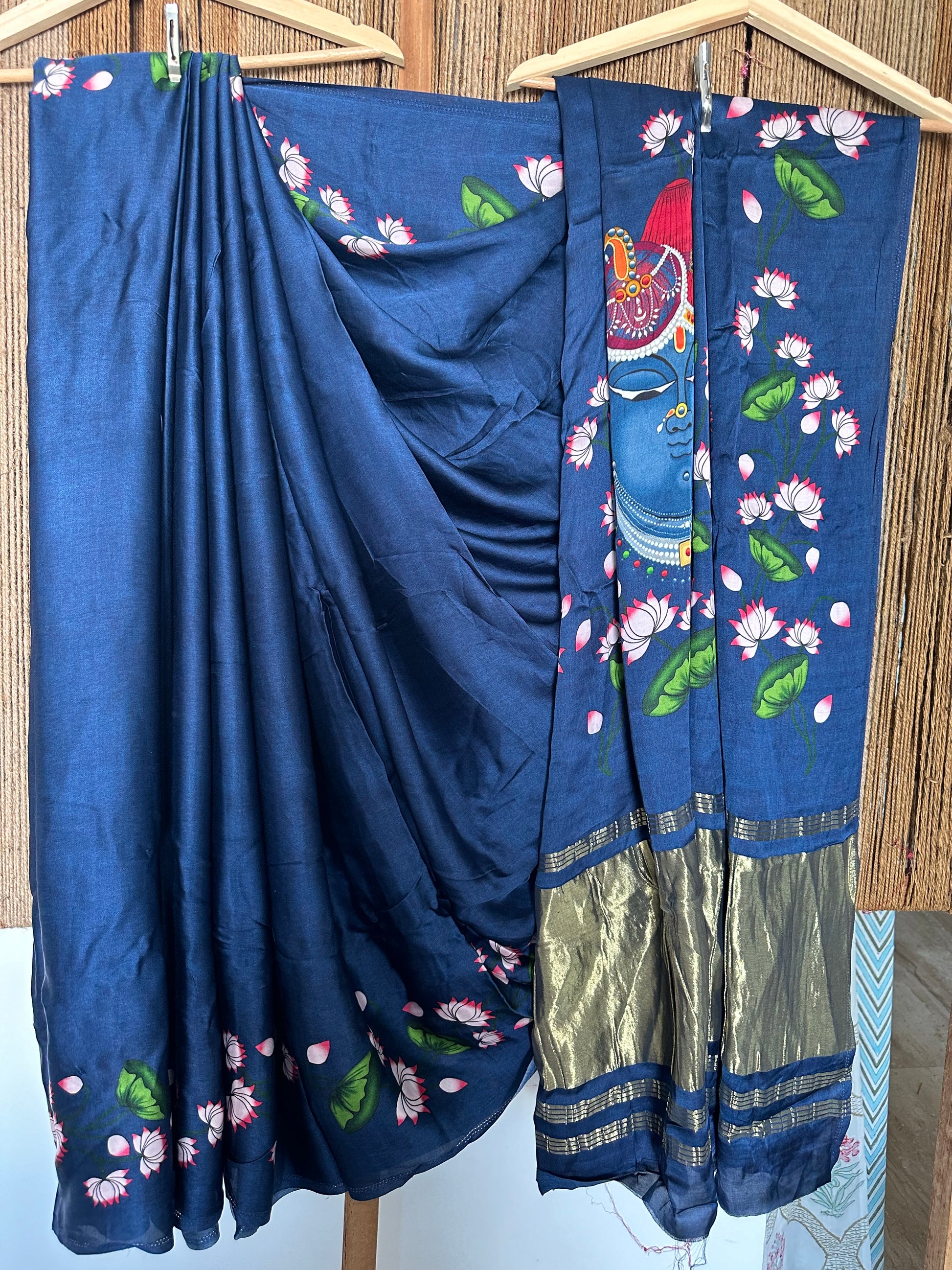 BLUE PICHWAI MODAL SILK PRINT SARI WITH ZARI BORDER PMS- 106
