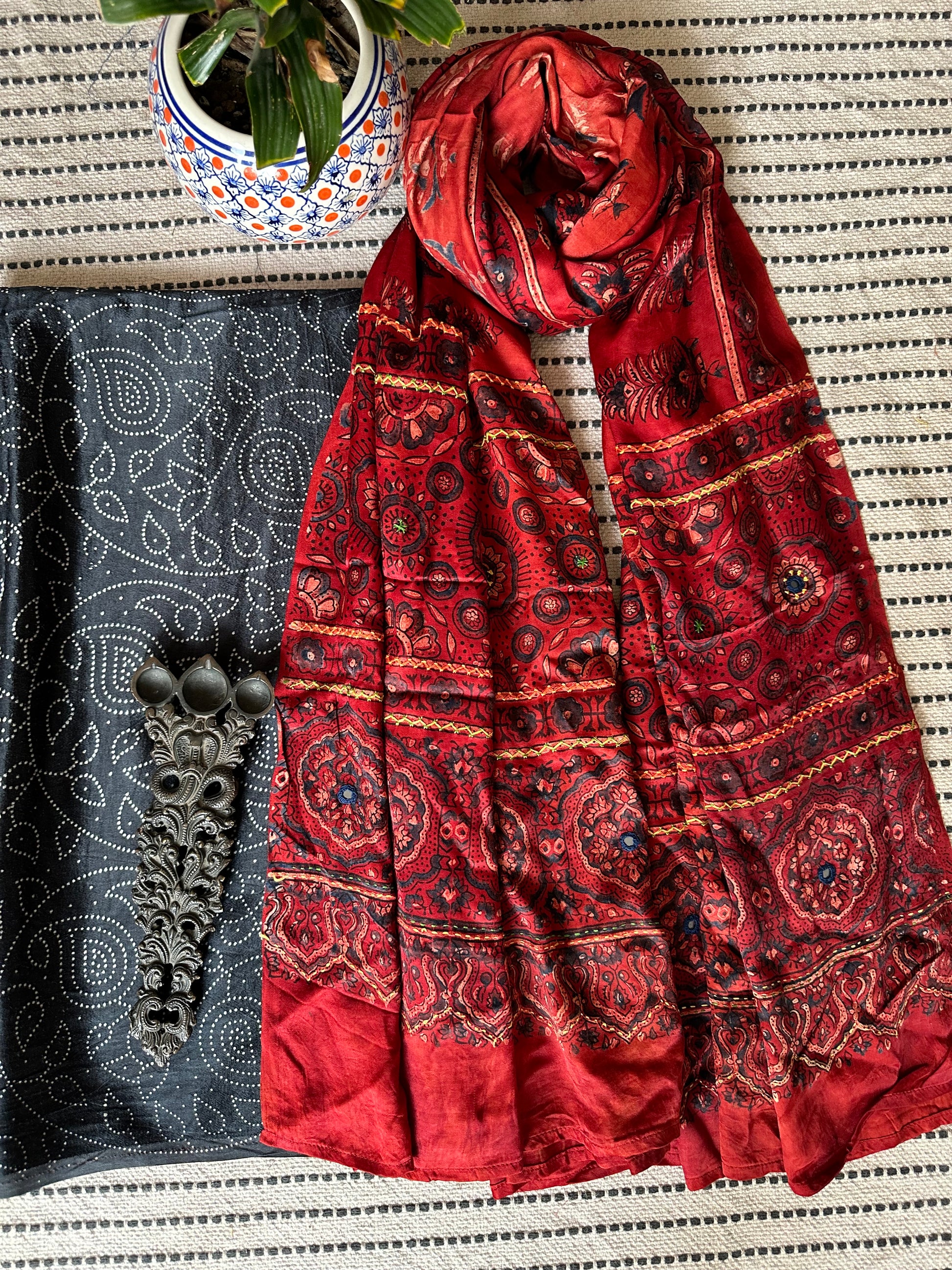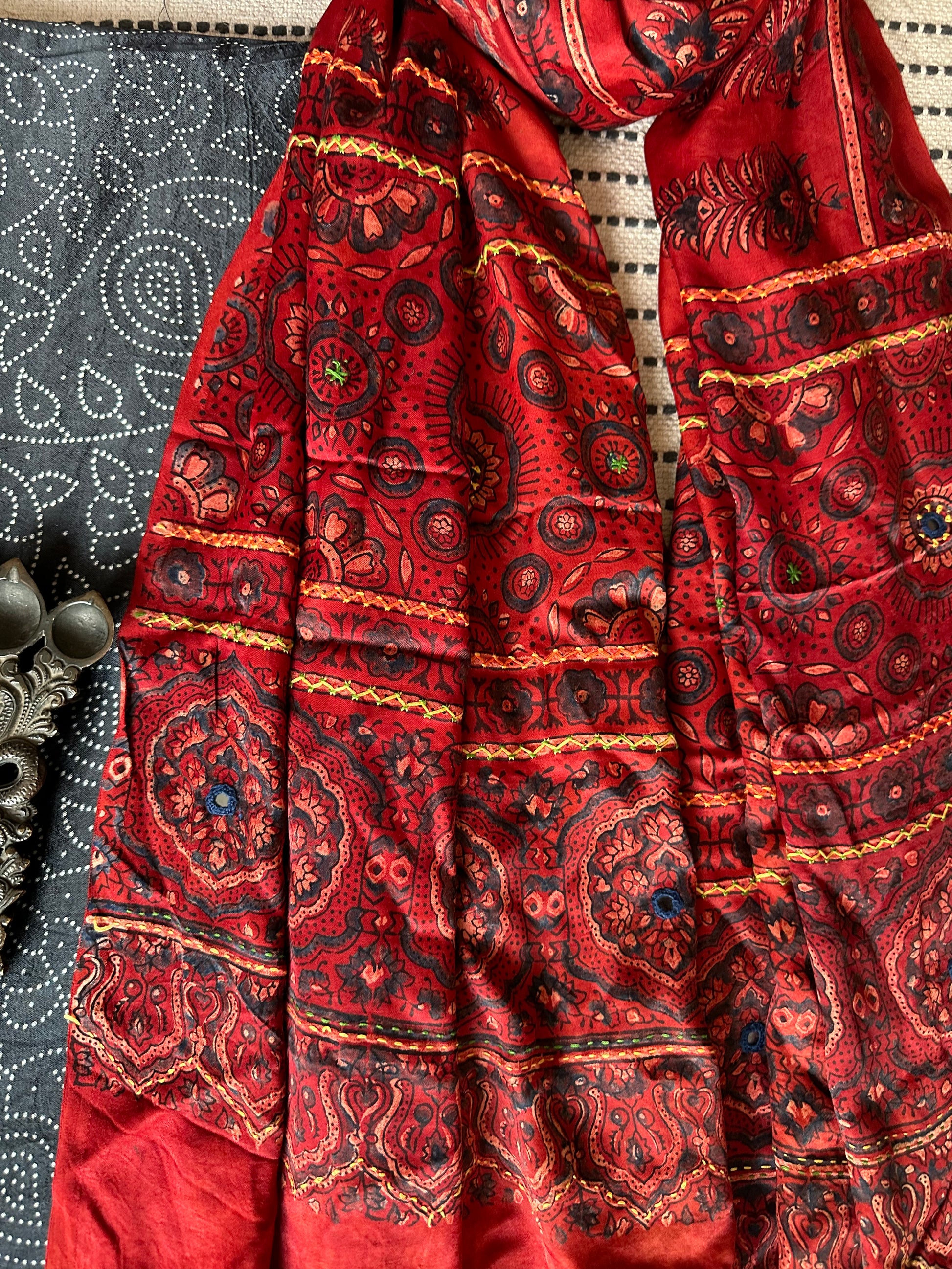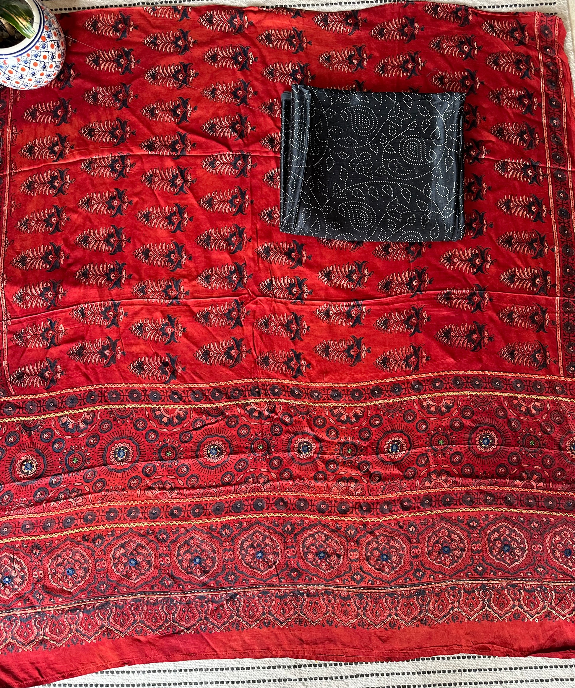 | BLACK MASHRU SILK EMBROIDERY KURTA WITH AJRAKH print MODAL SILK DUPATTA