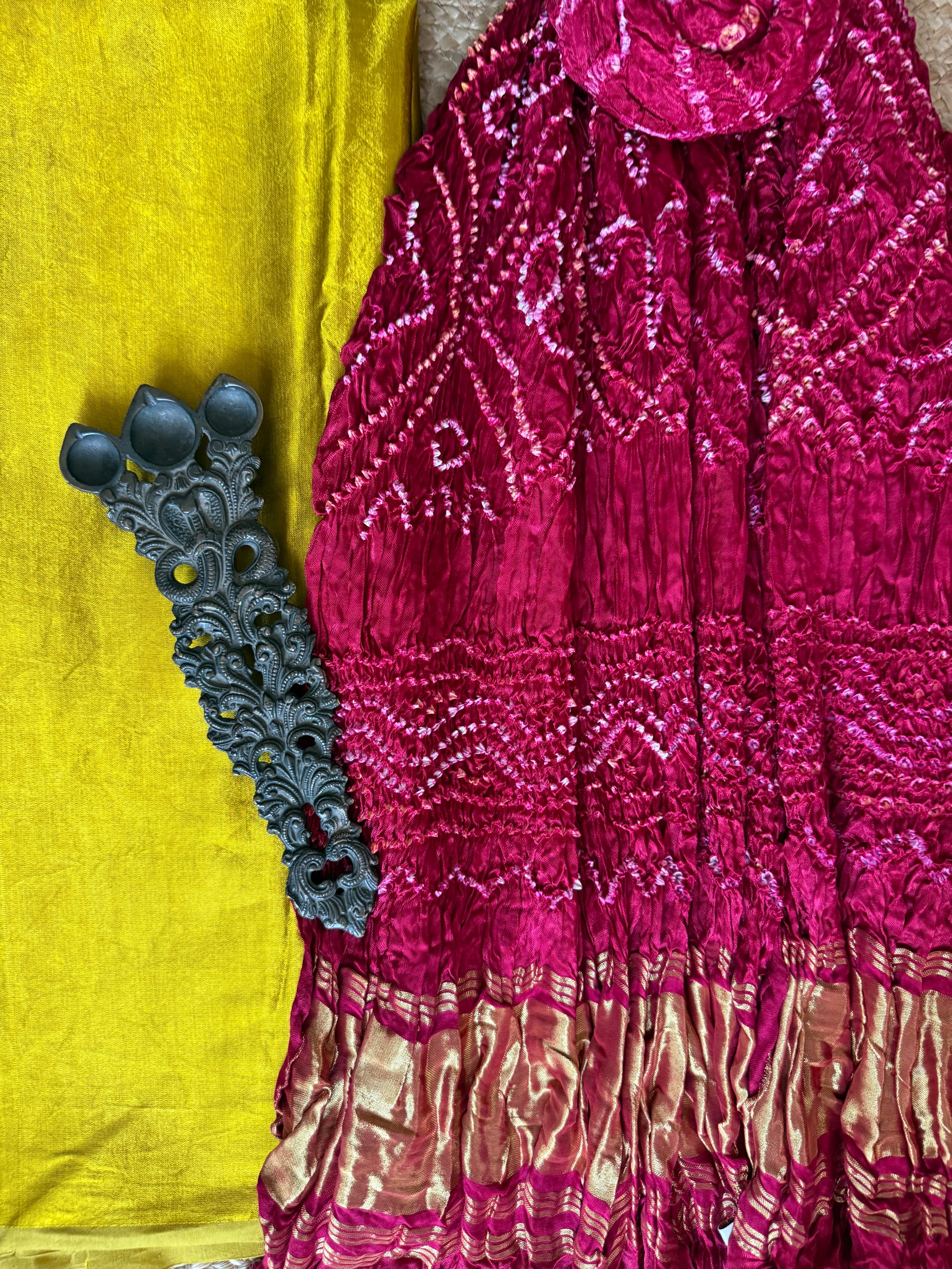 | MUSTARD MASHRU SOLID KURTA WITH GHARCHOLA MODAL SILK DUPATTA