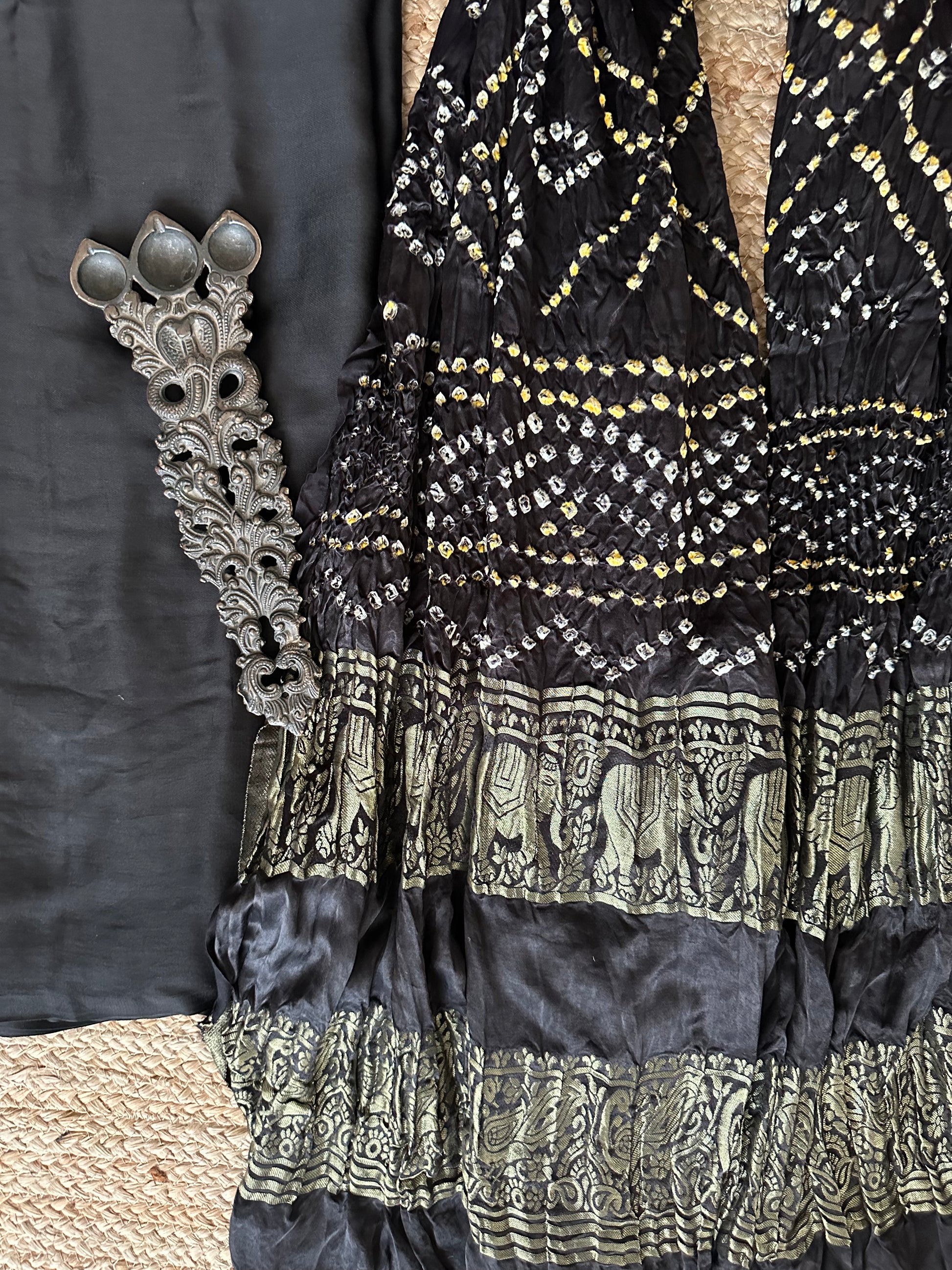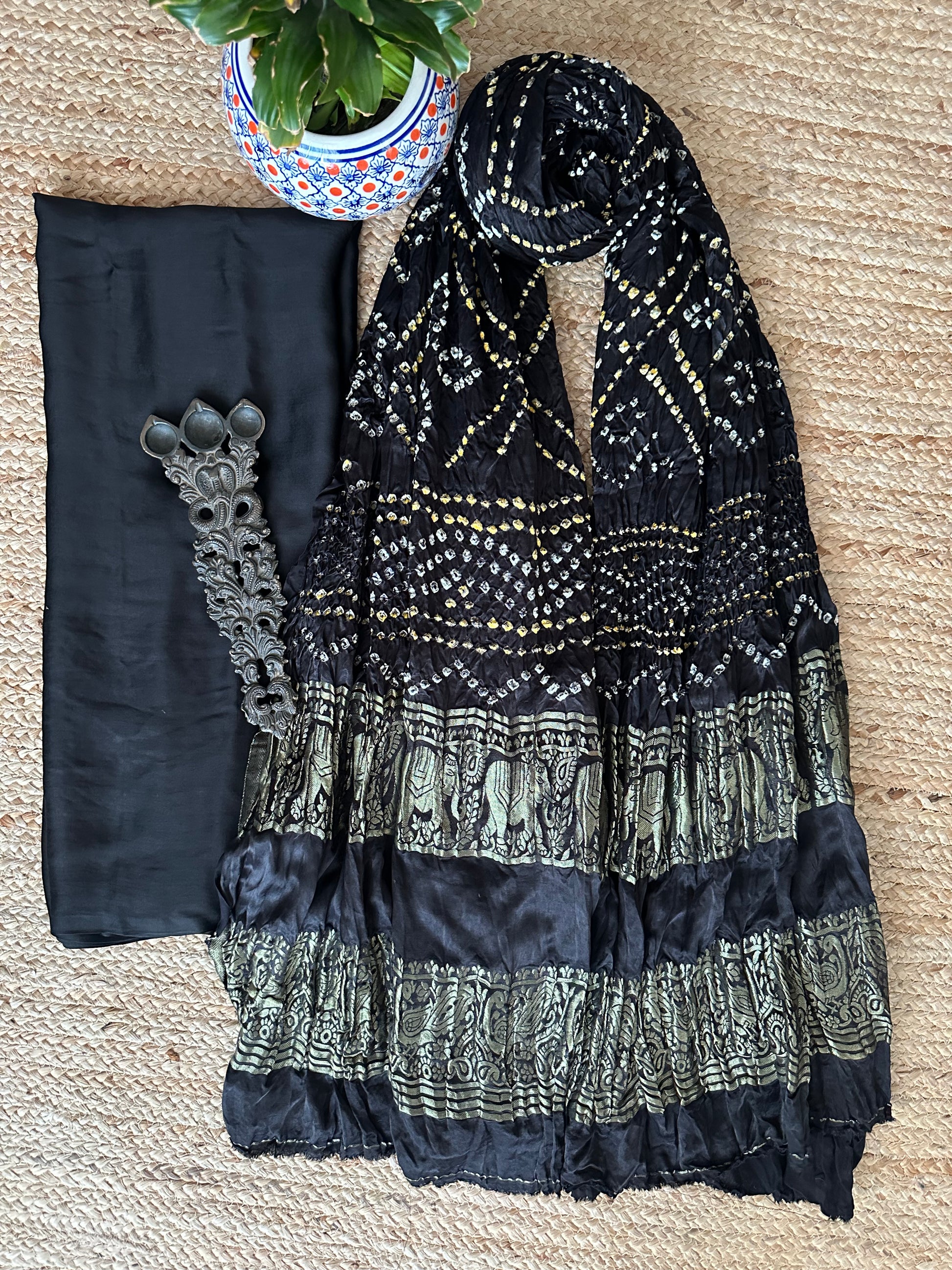 | BLACK MODAL SILK KURTA WITH GHARCHOLA MODAL SILK DUPATTA