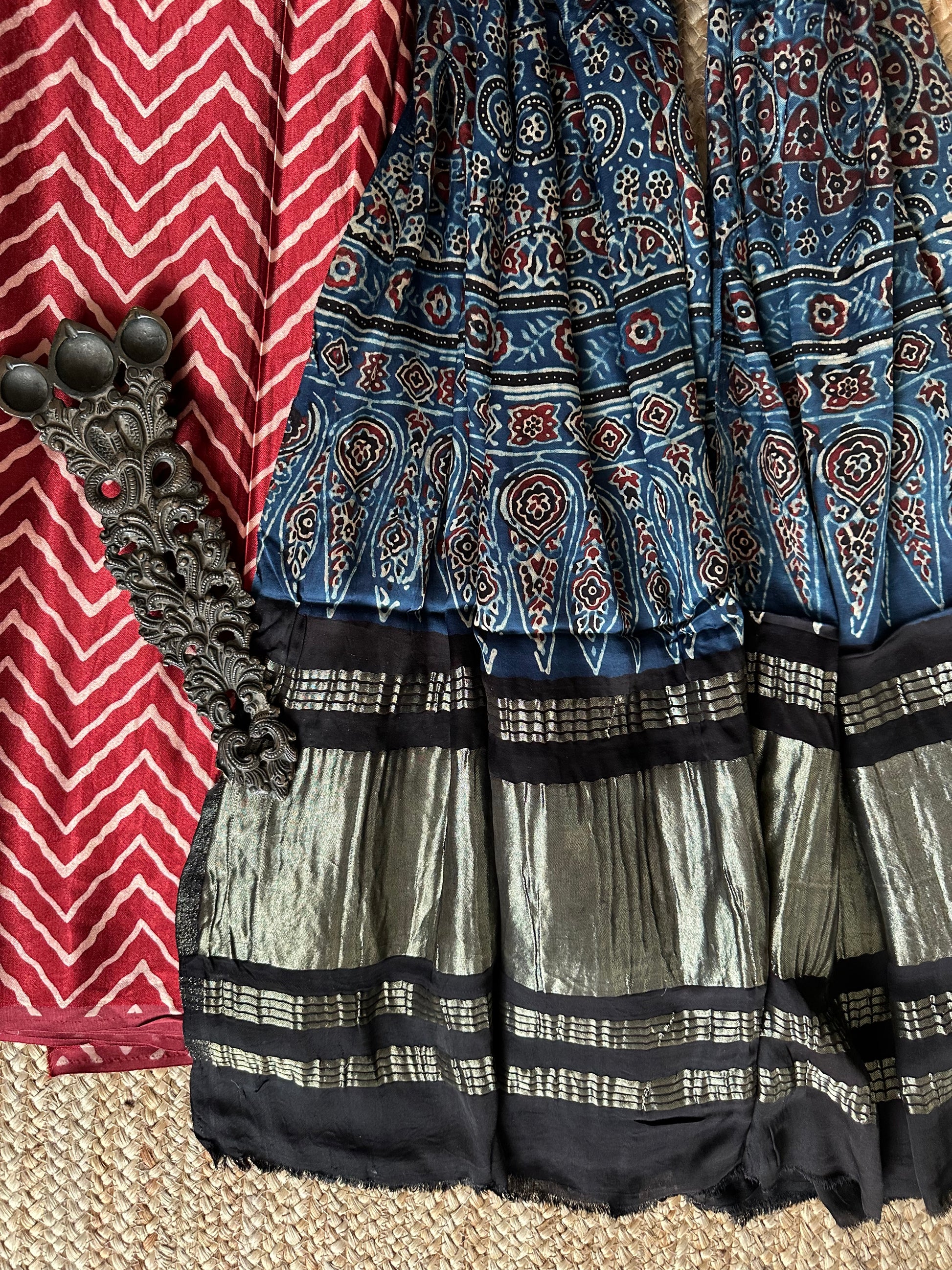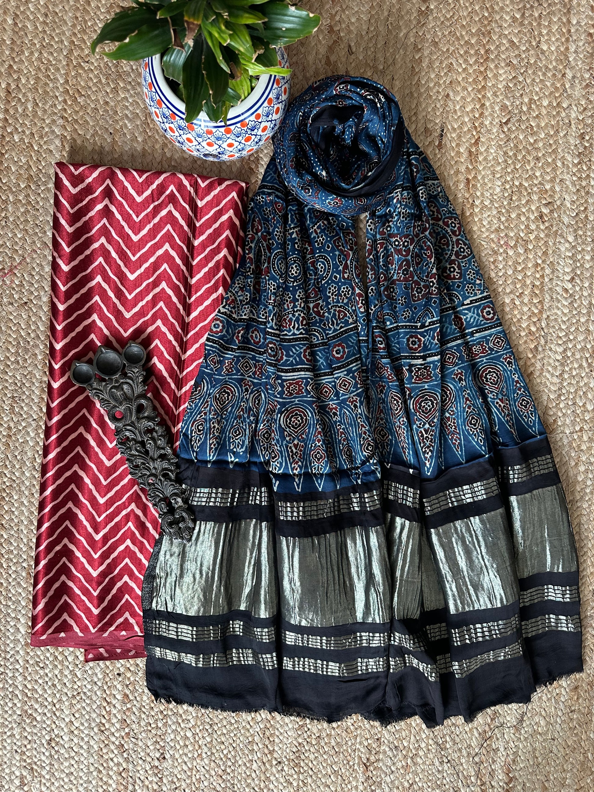 MAROON MASHRU SILK KURTA WITH AJRAKH HANDBLOCK PRINT MODAL SILK DUPATTA