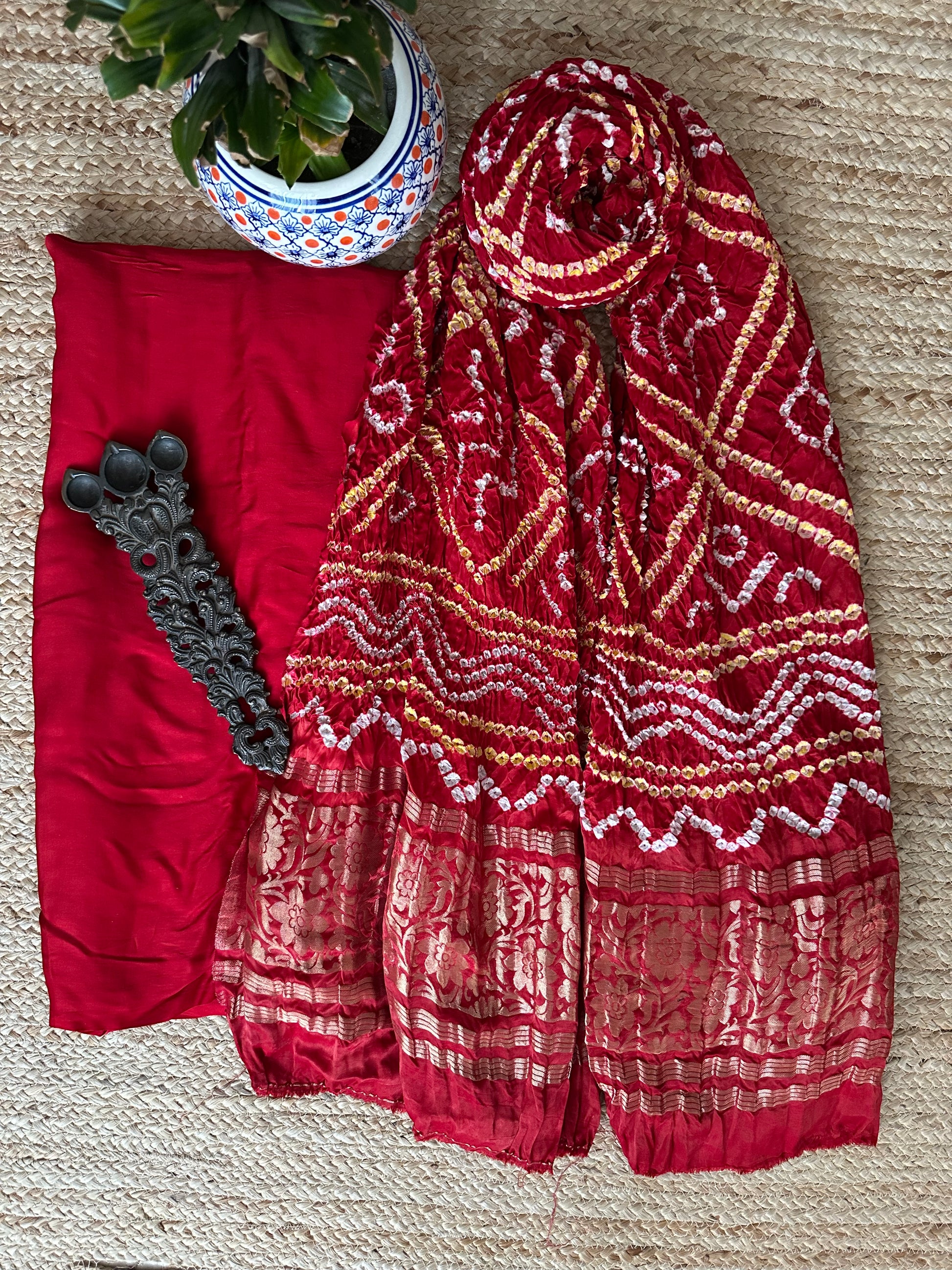 | RED MODAL SILK KURTA WITH GHARCHOLA MODAL SILK DUPATTA