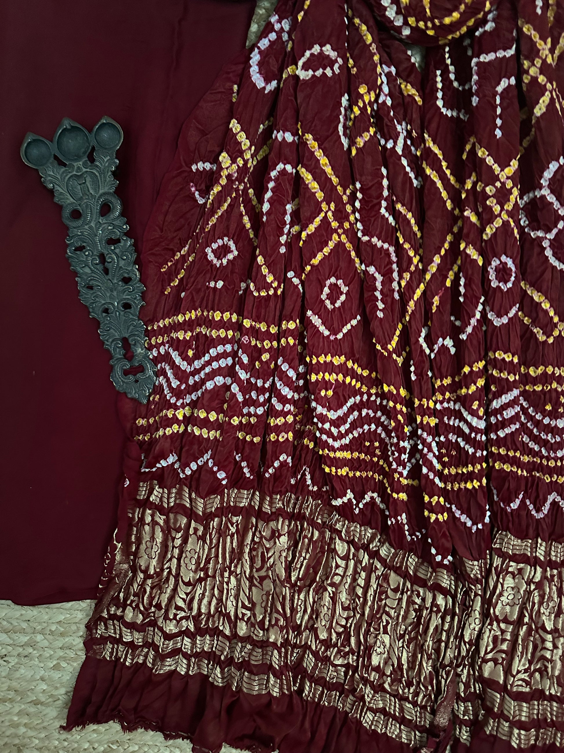 | MAROON MODAL SILK KURTA WITH GHARCHOLA MODAL SILK DUPATTA