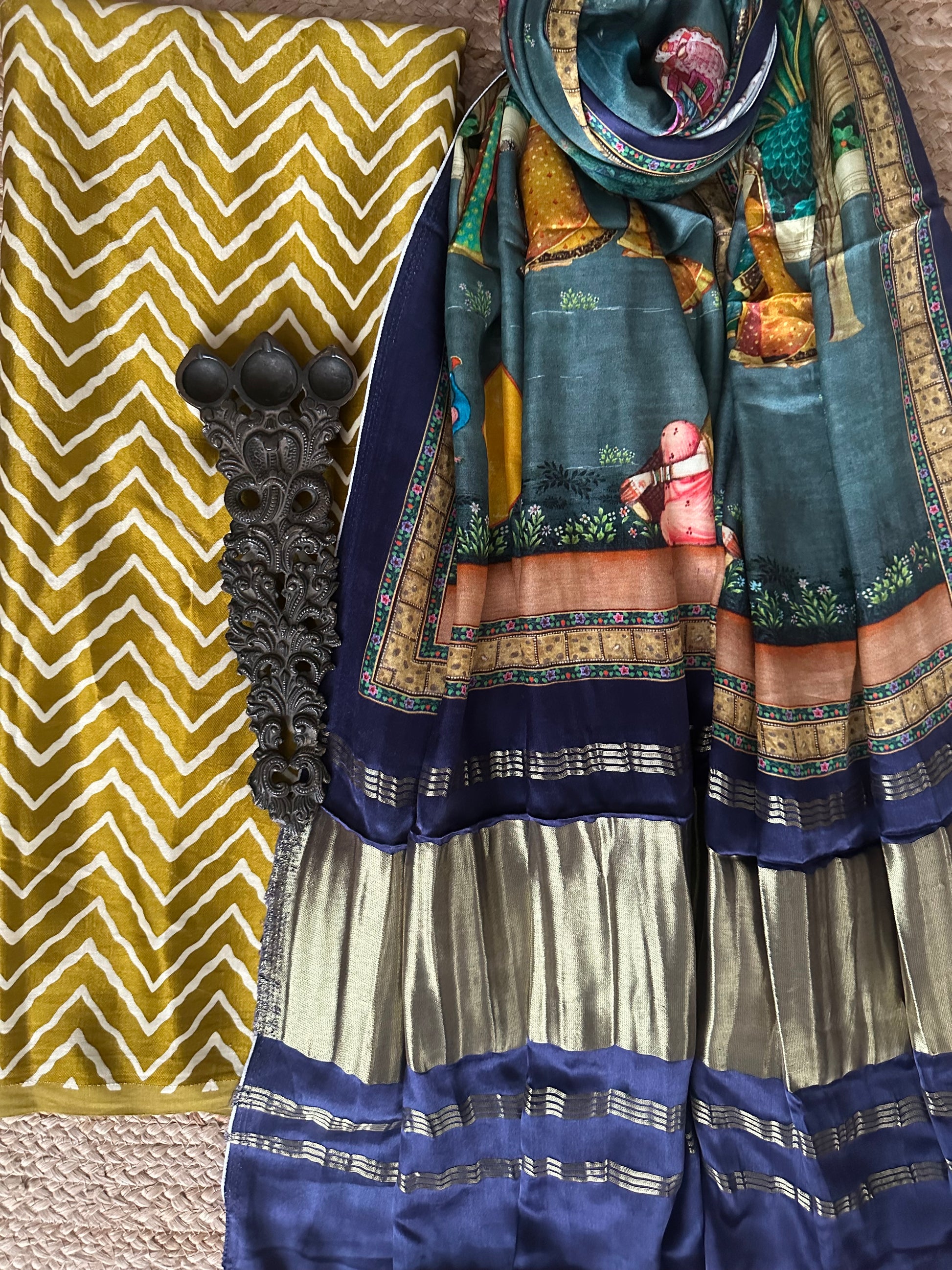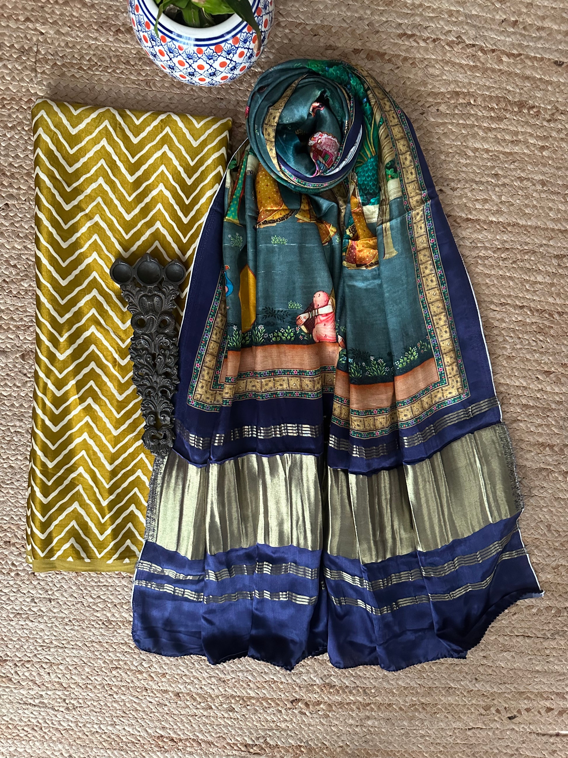 MUSTARD ZIGZAG MASHRU SILK KURTA WITH PATOLA HANDCRAFTED MODAL SILK DUPATTA PS-28