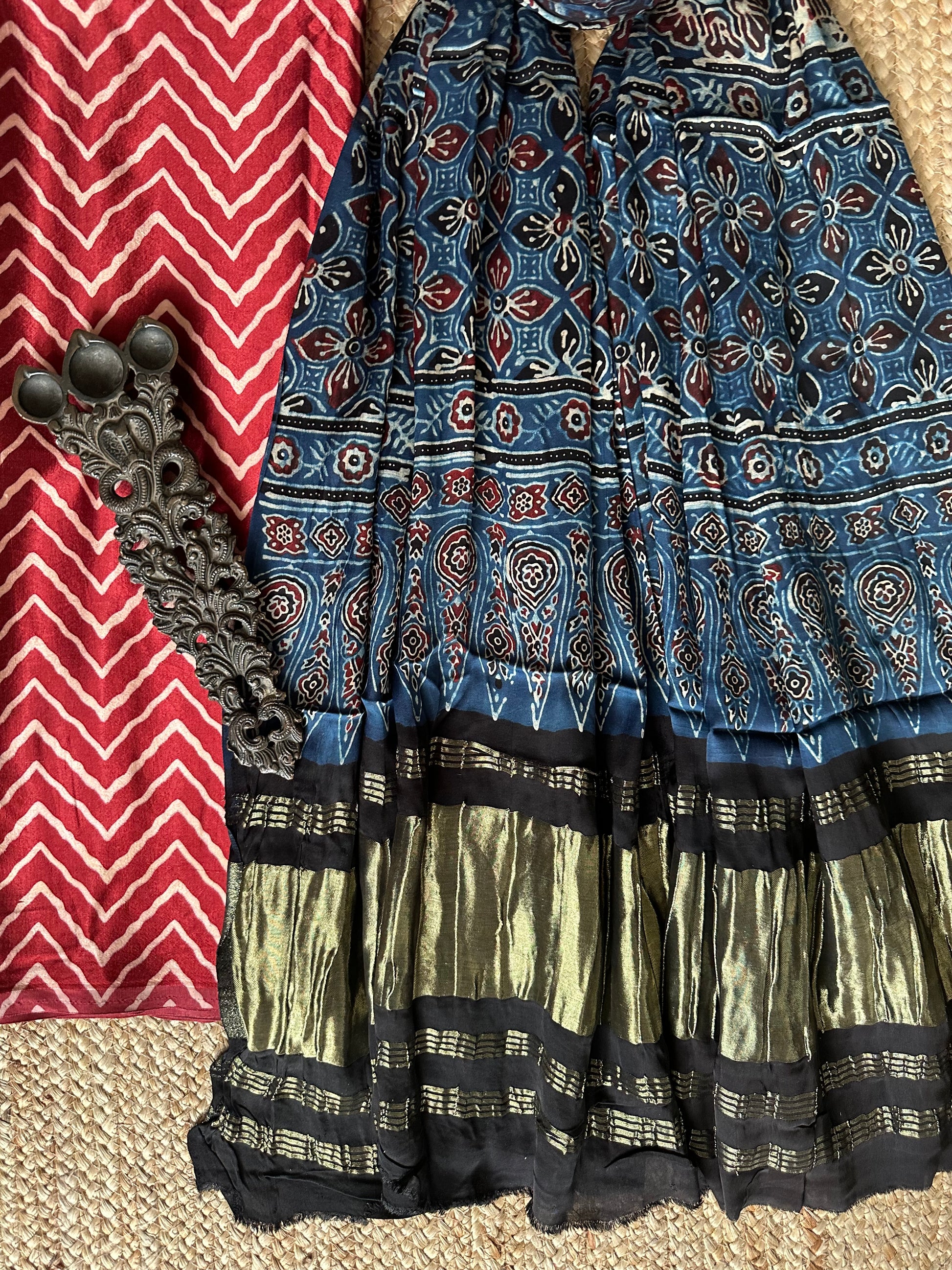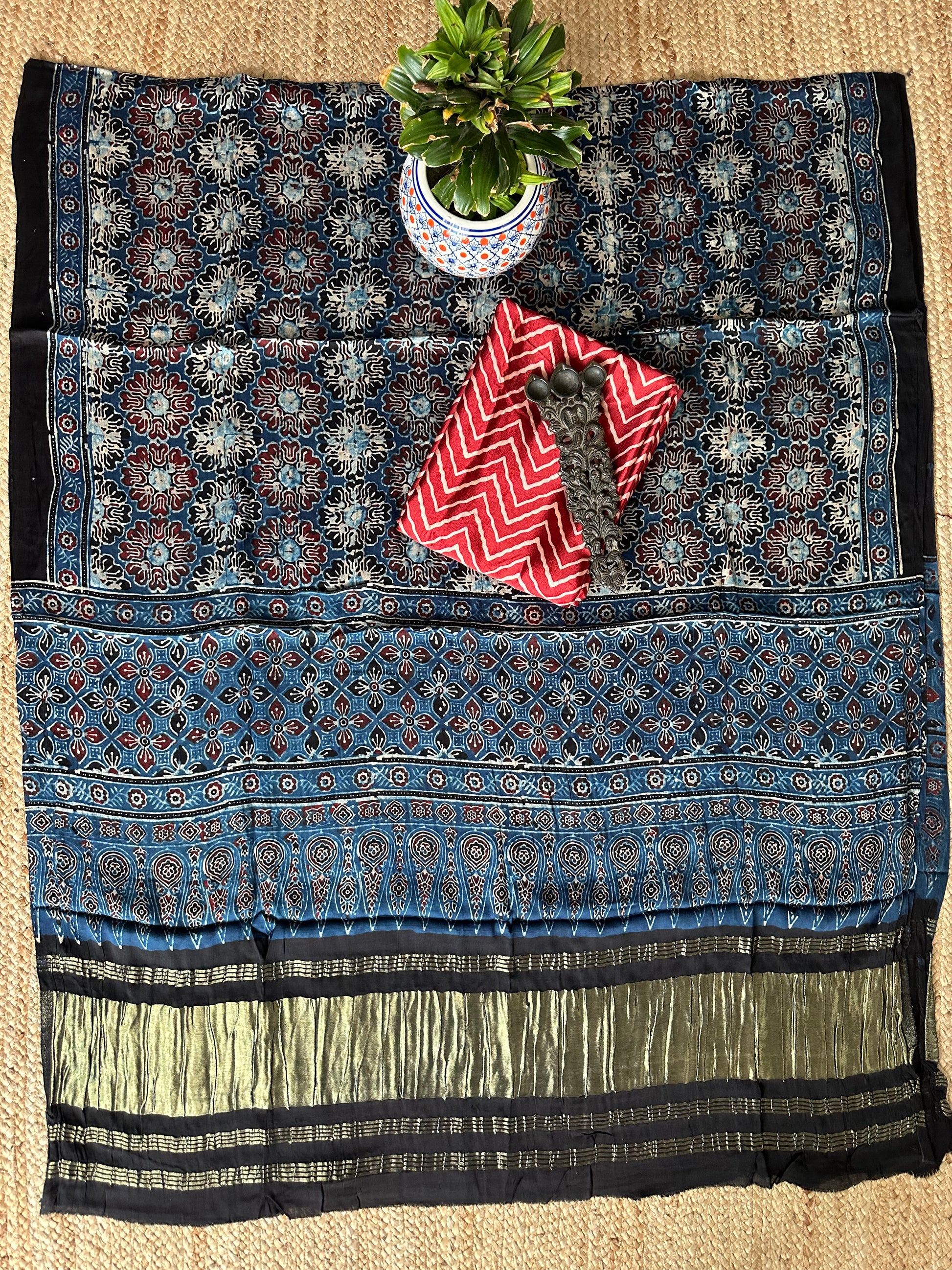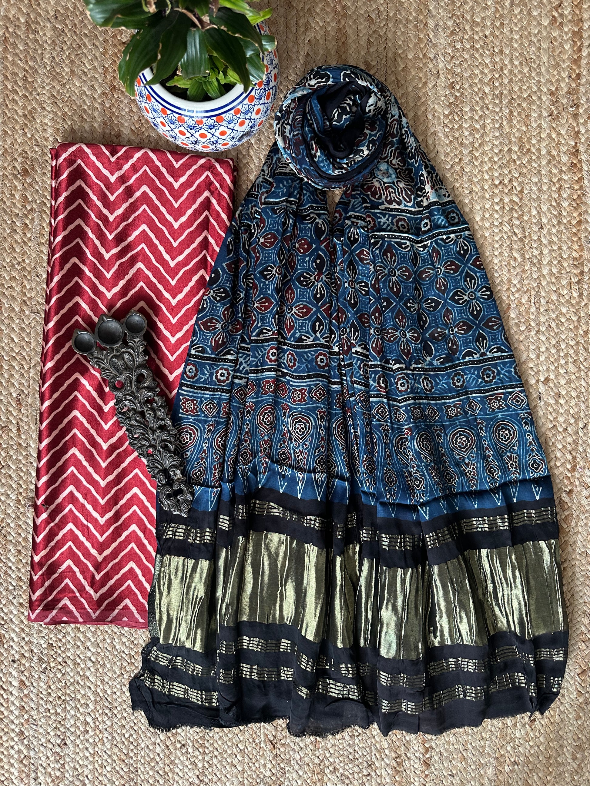| MAROON MASHRU SILK KURTA WITH AJRAKH HANDBLOCK PRINT MODAL SILK DUPATTA