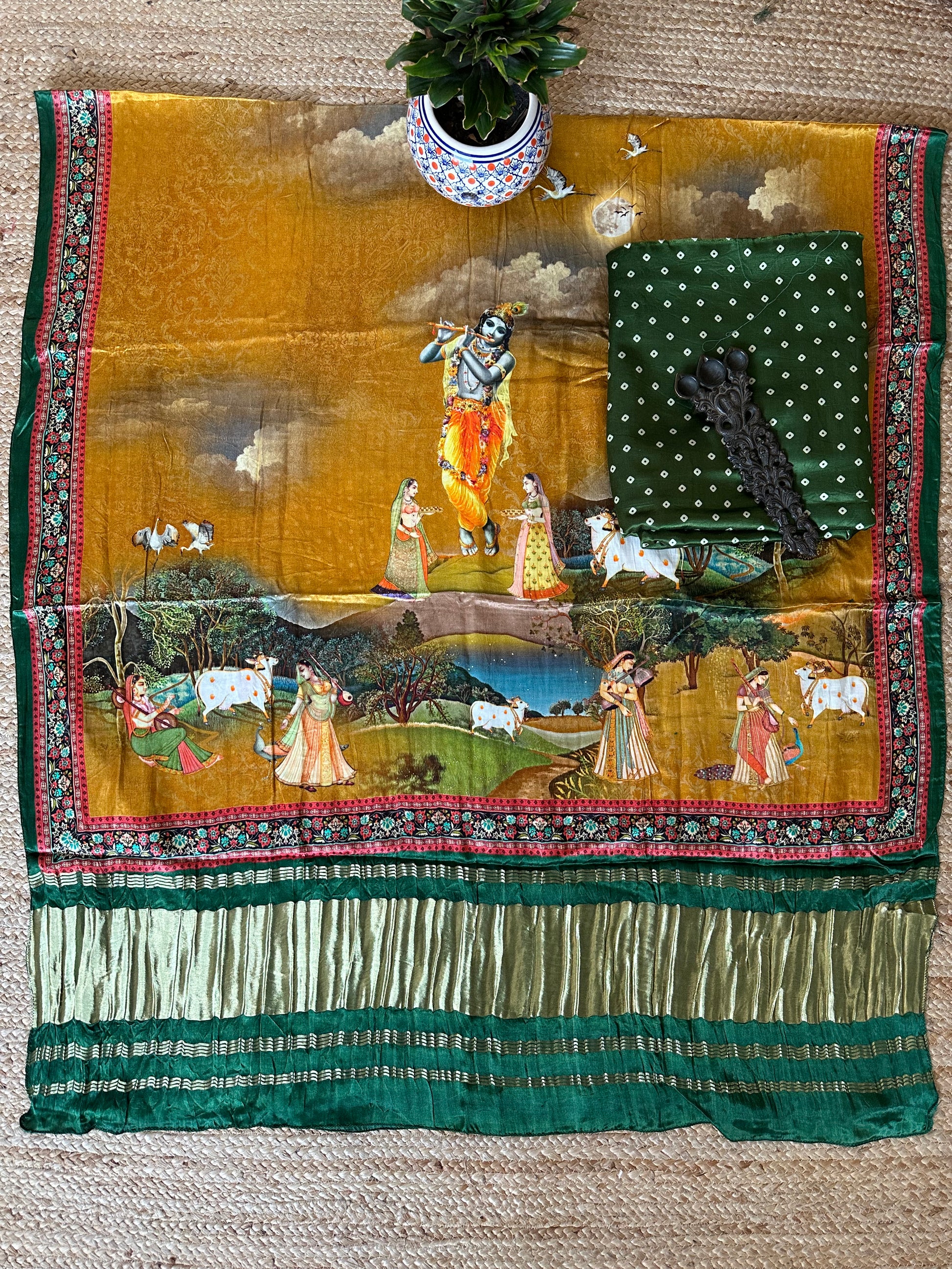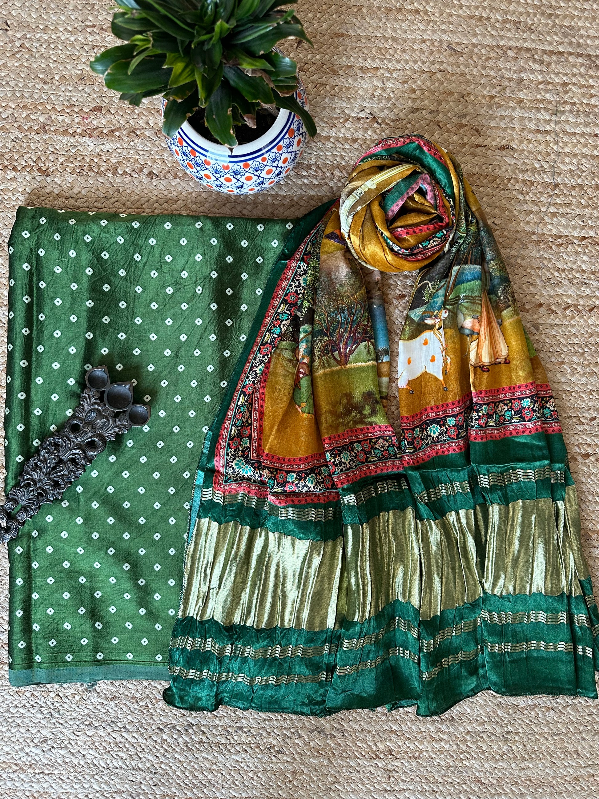 GREEN MASHRU SILK KURTA WITH PATOLAPRINT MODAL SILK DUPATTA