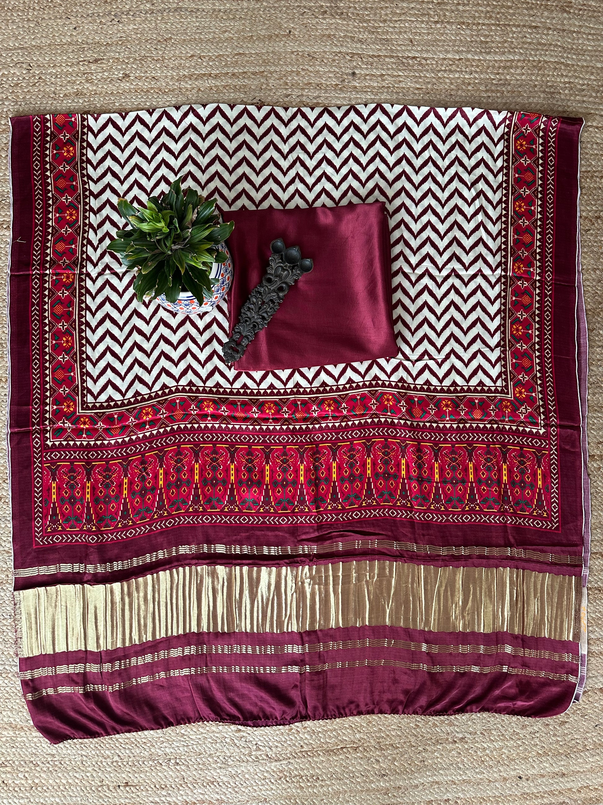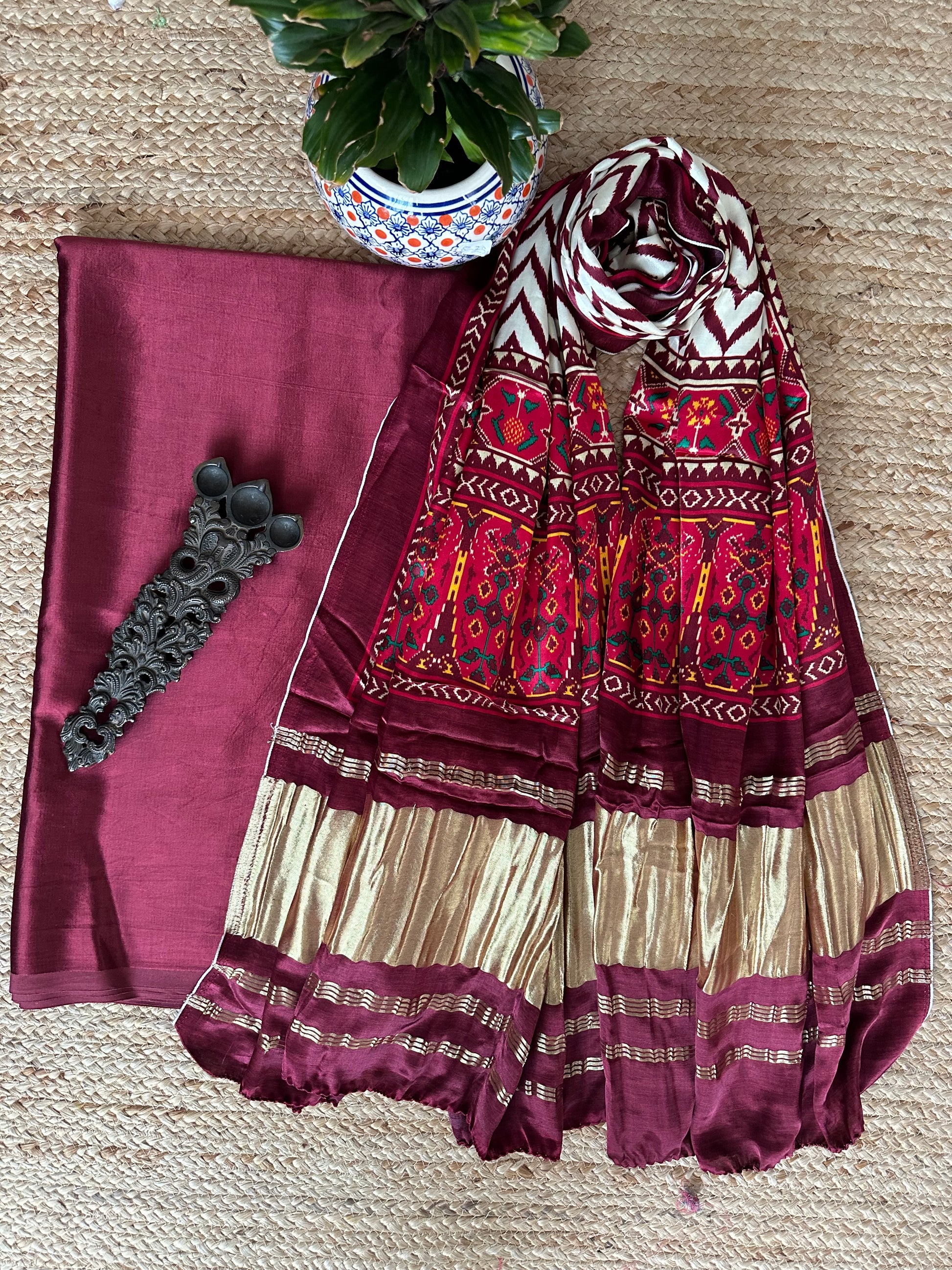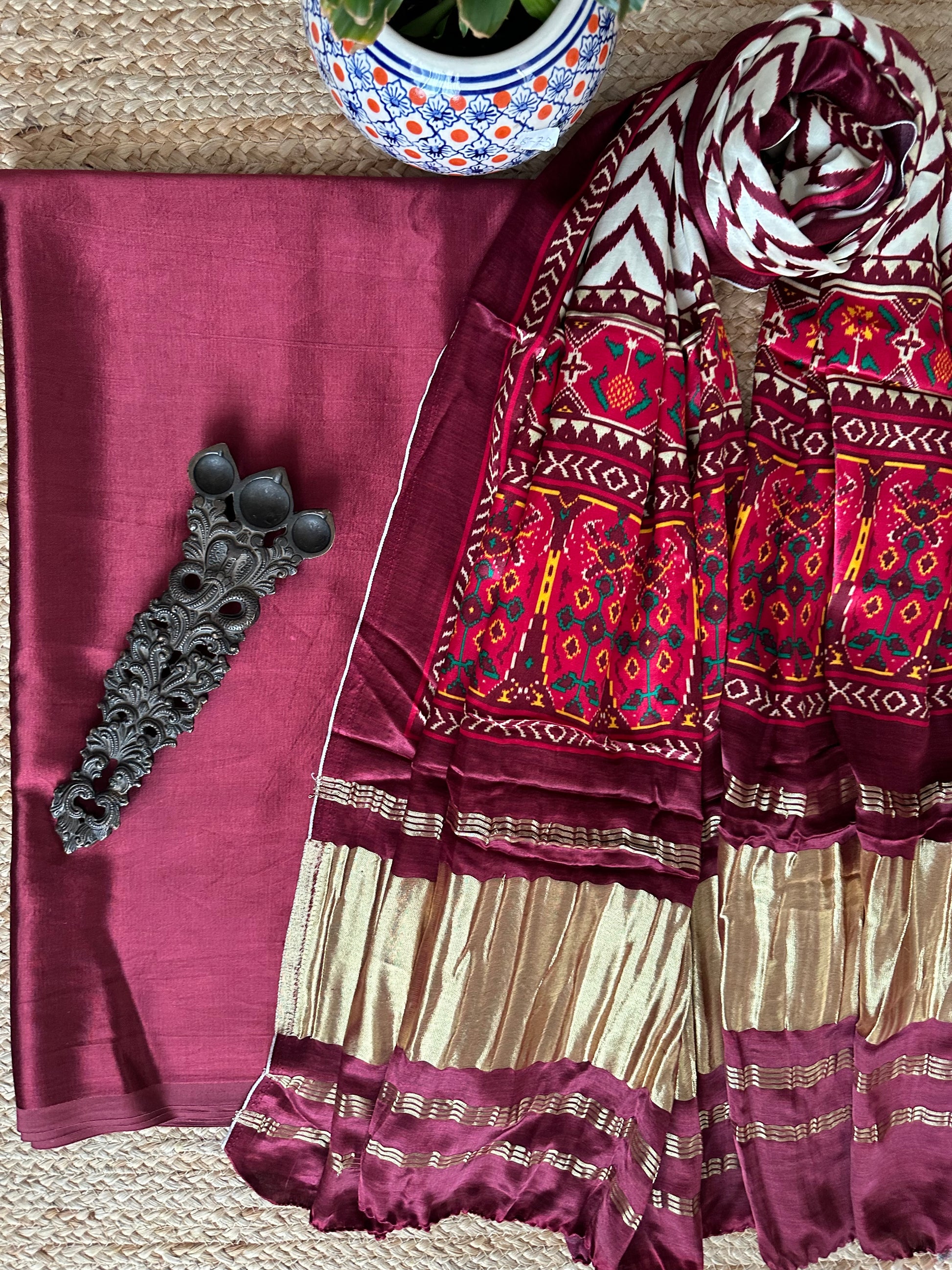 MAROON MASHRU SILK KURTA WITH PATOLAPRINT MODAL SILK DUPATTA