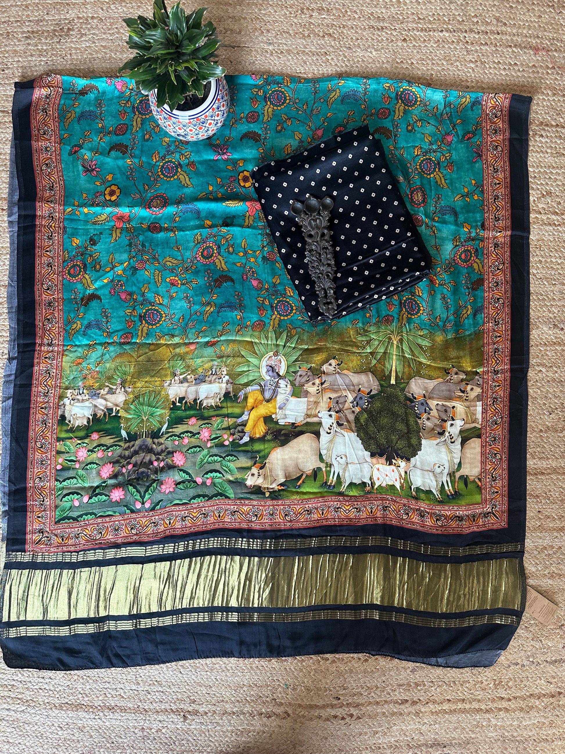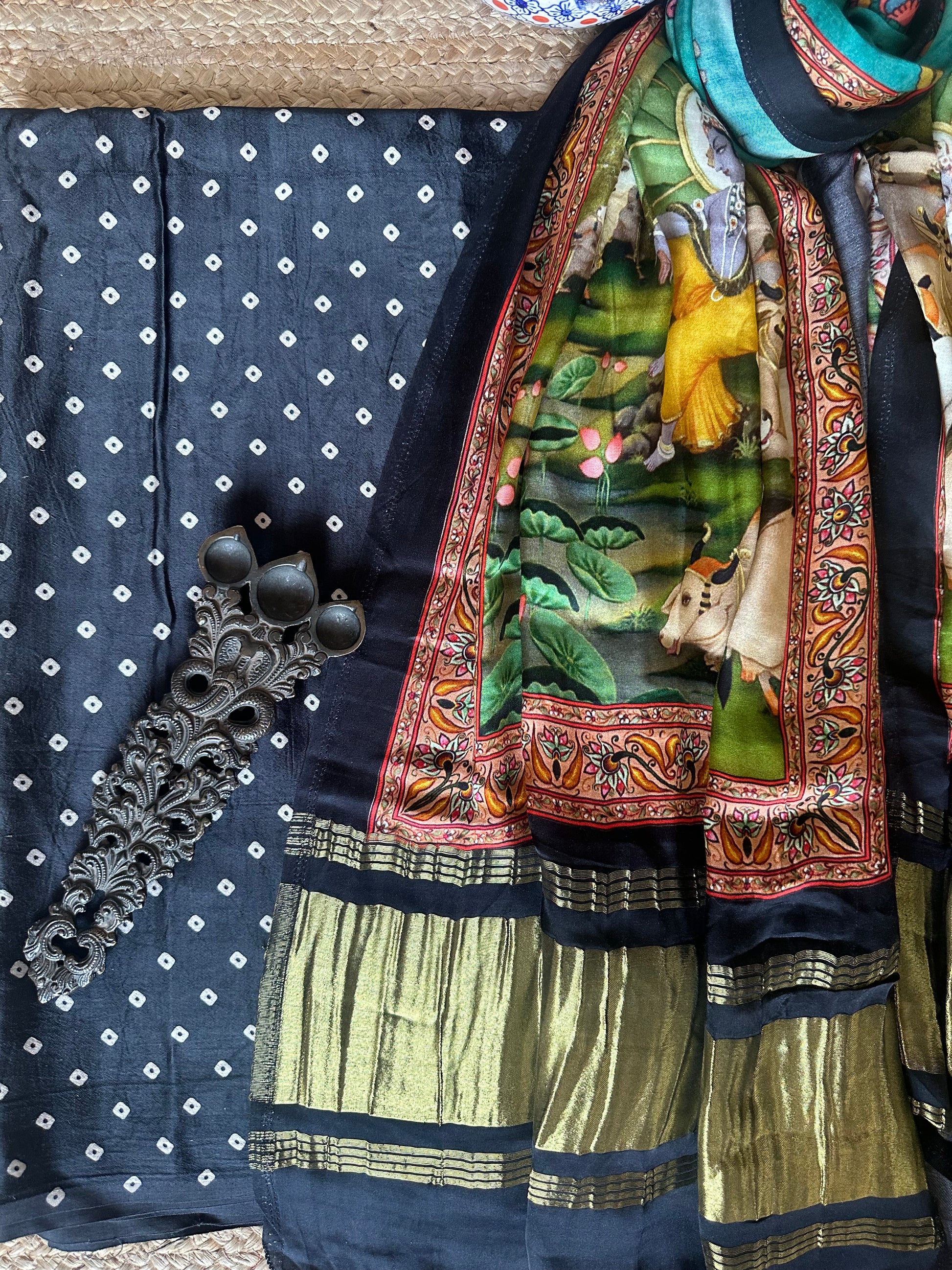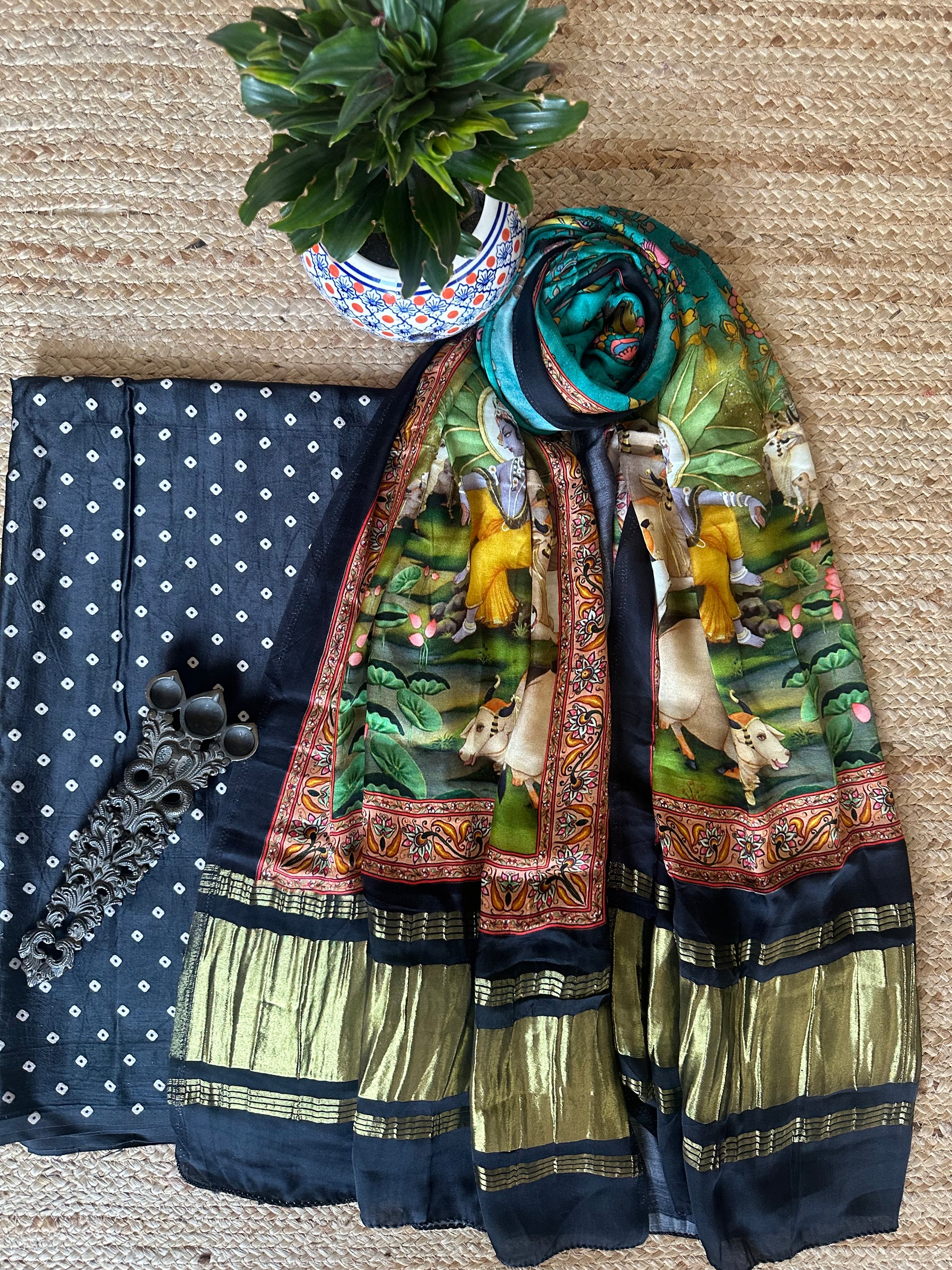 BLACK MASHRU SILK KURTA WITH PATOLAPRINT MODAL SILK DUPATTA