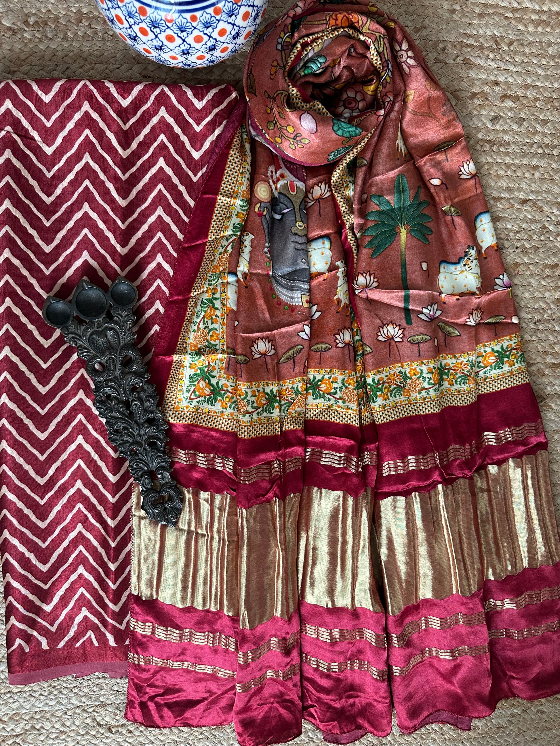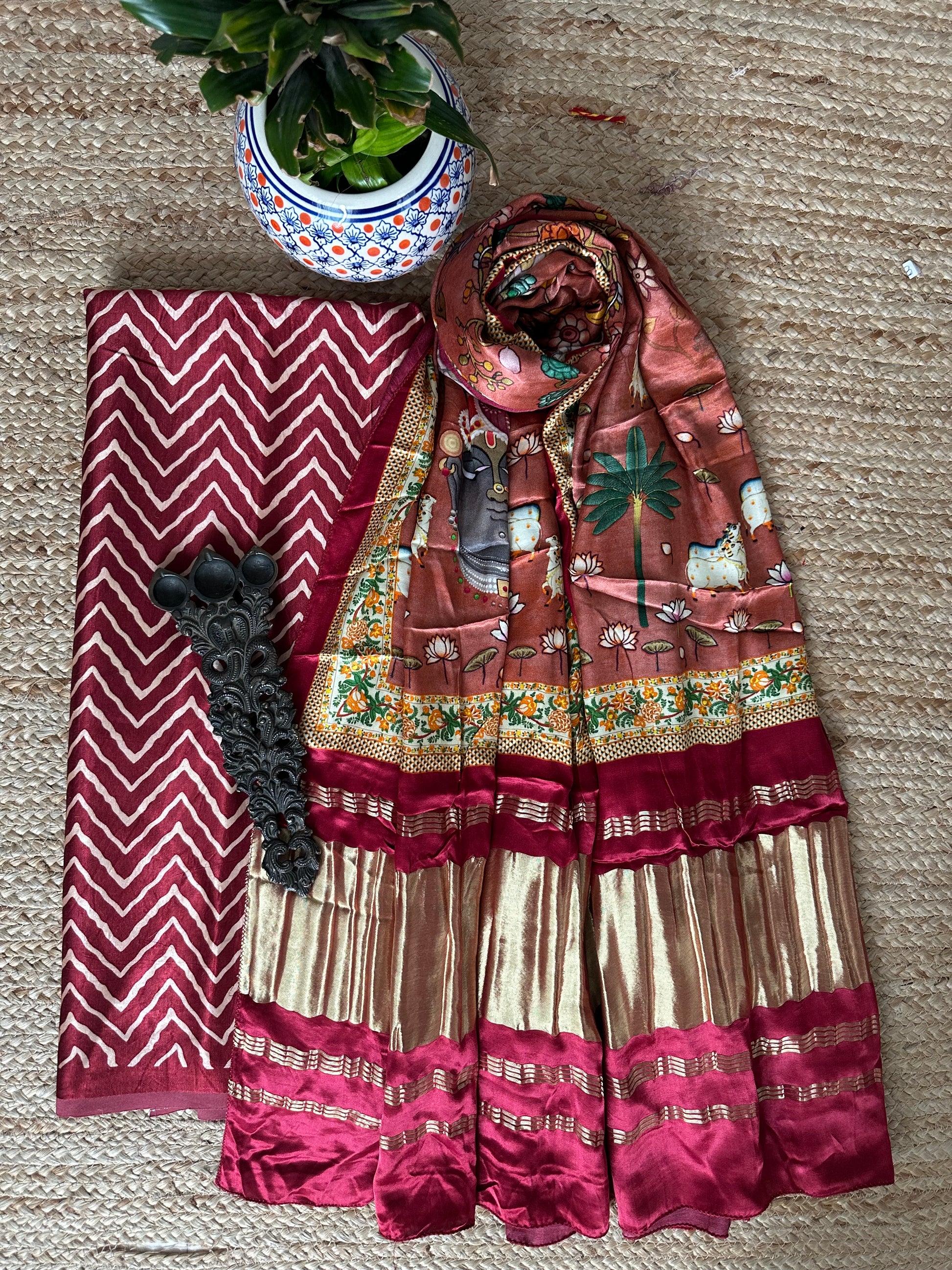 MAROON MASHRU SILK KURTA WITH PATOLAPRINT MODAL SILK DUPATTA
