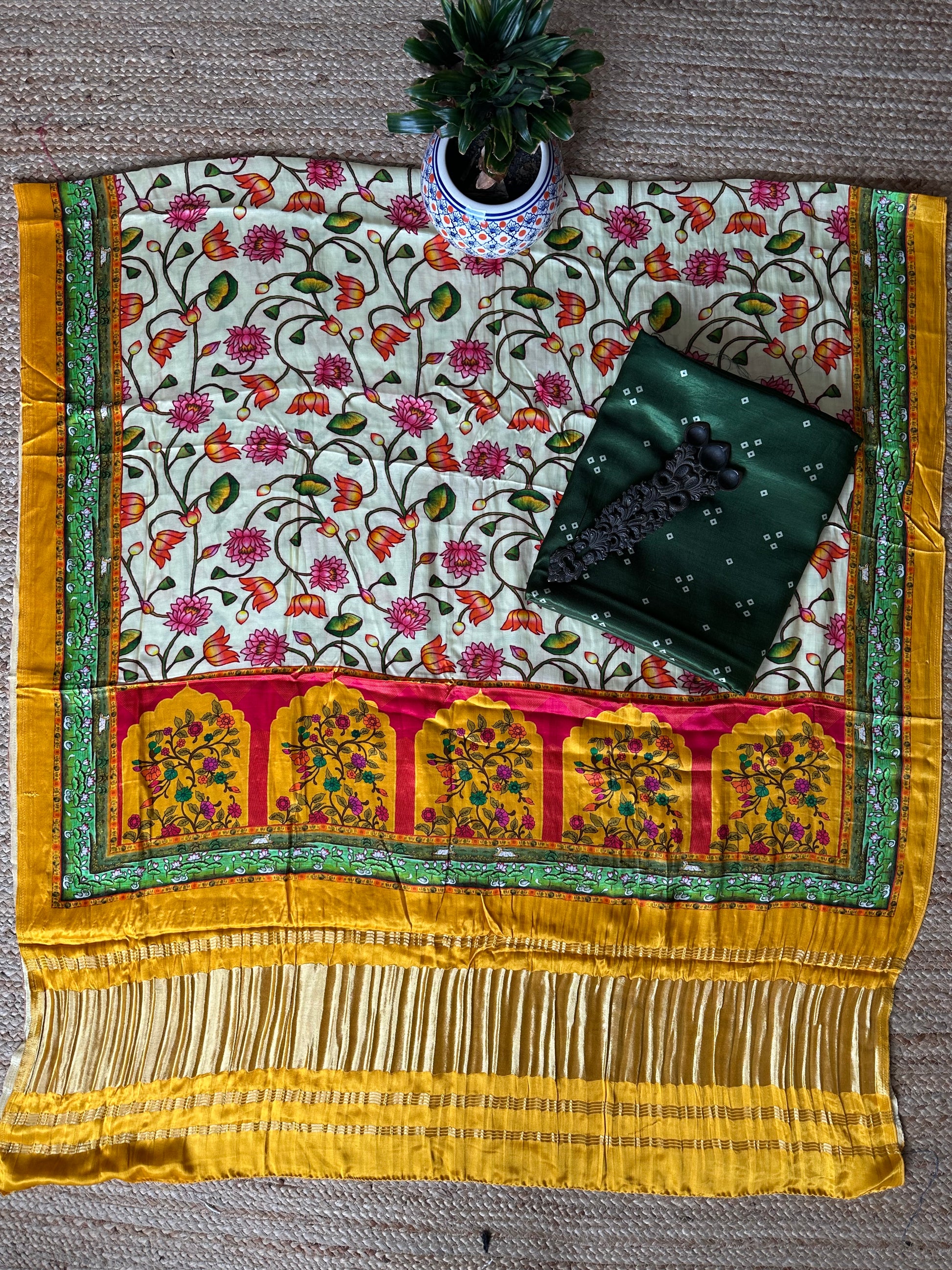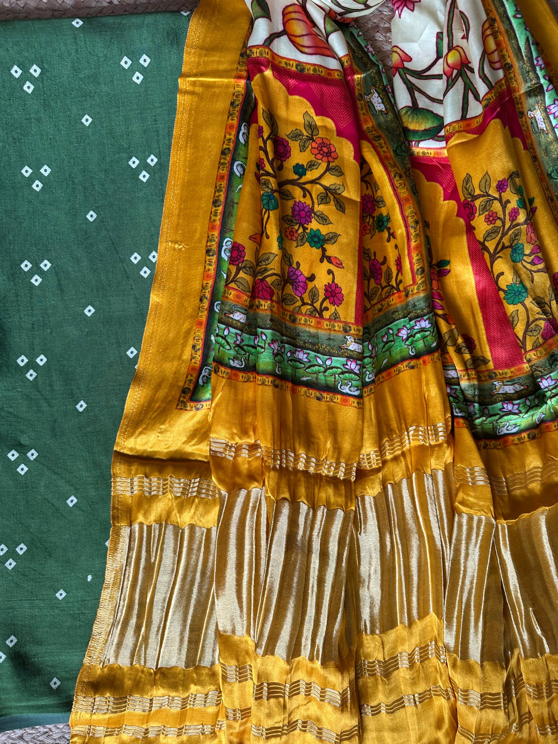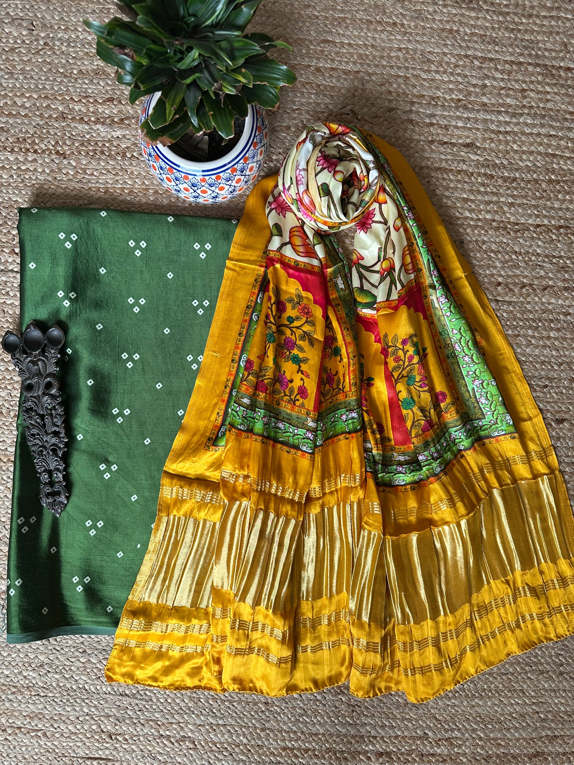 | GREEN MASHRU SILK KURTA WITH PATOLAPRINT MODAL SILK DUPATTA