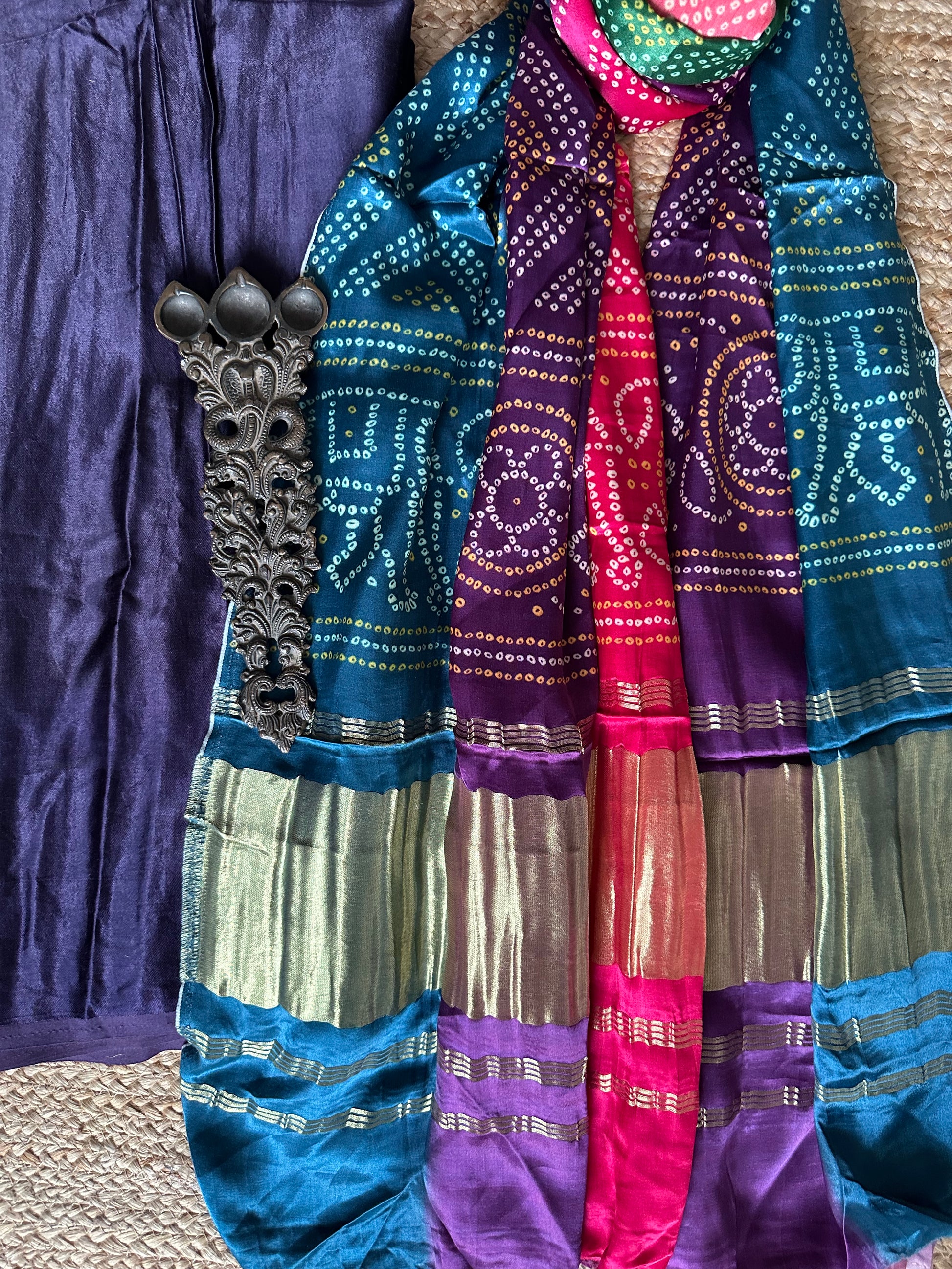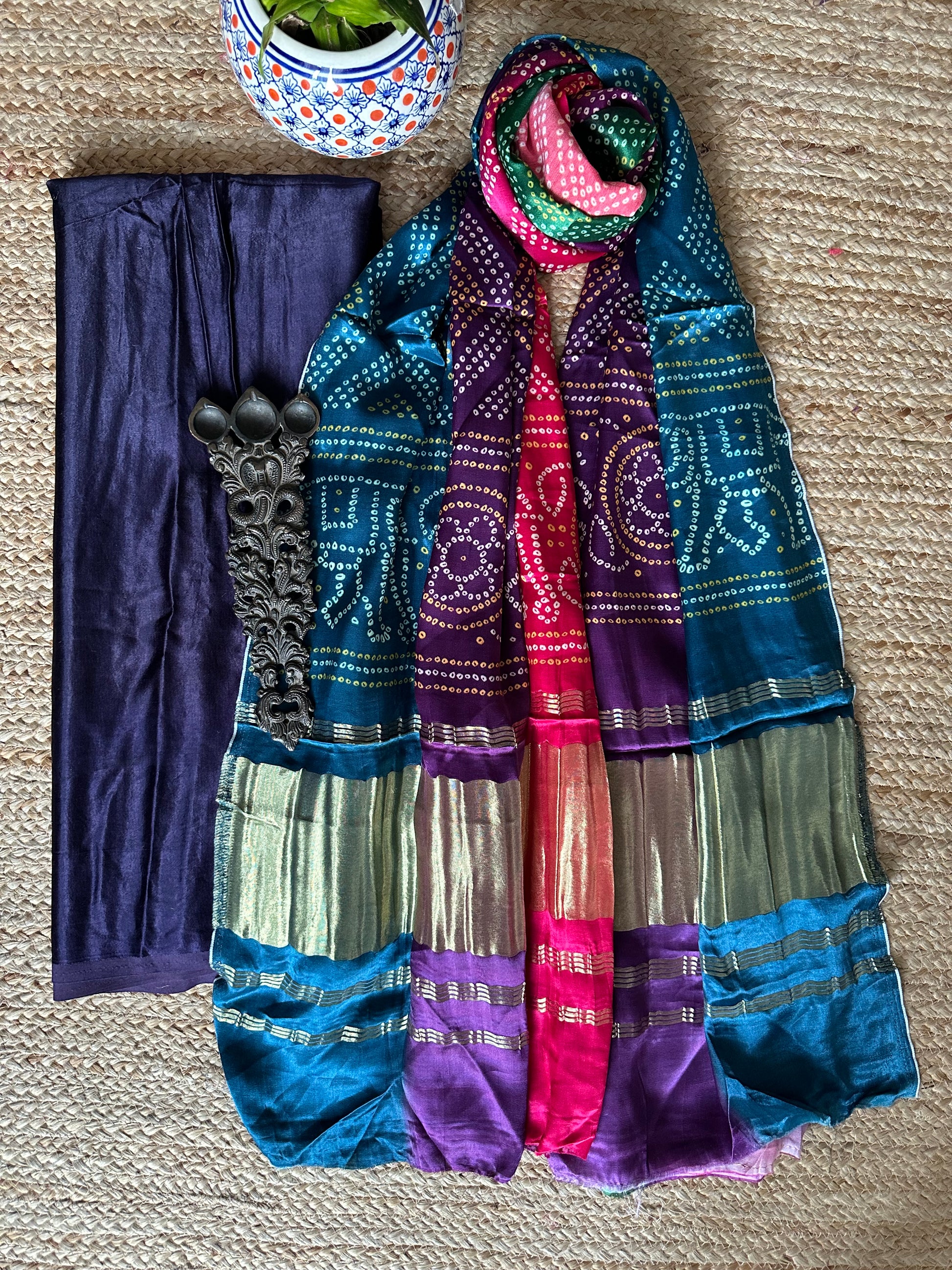 BLUE MASHRU SILK KURTA WITH PATOLAPRINT MODAL SILK DUPATTA