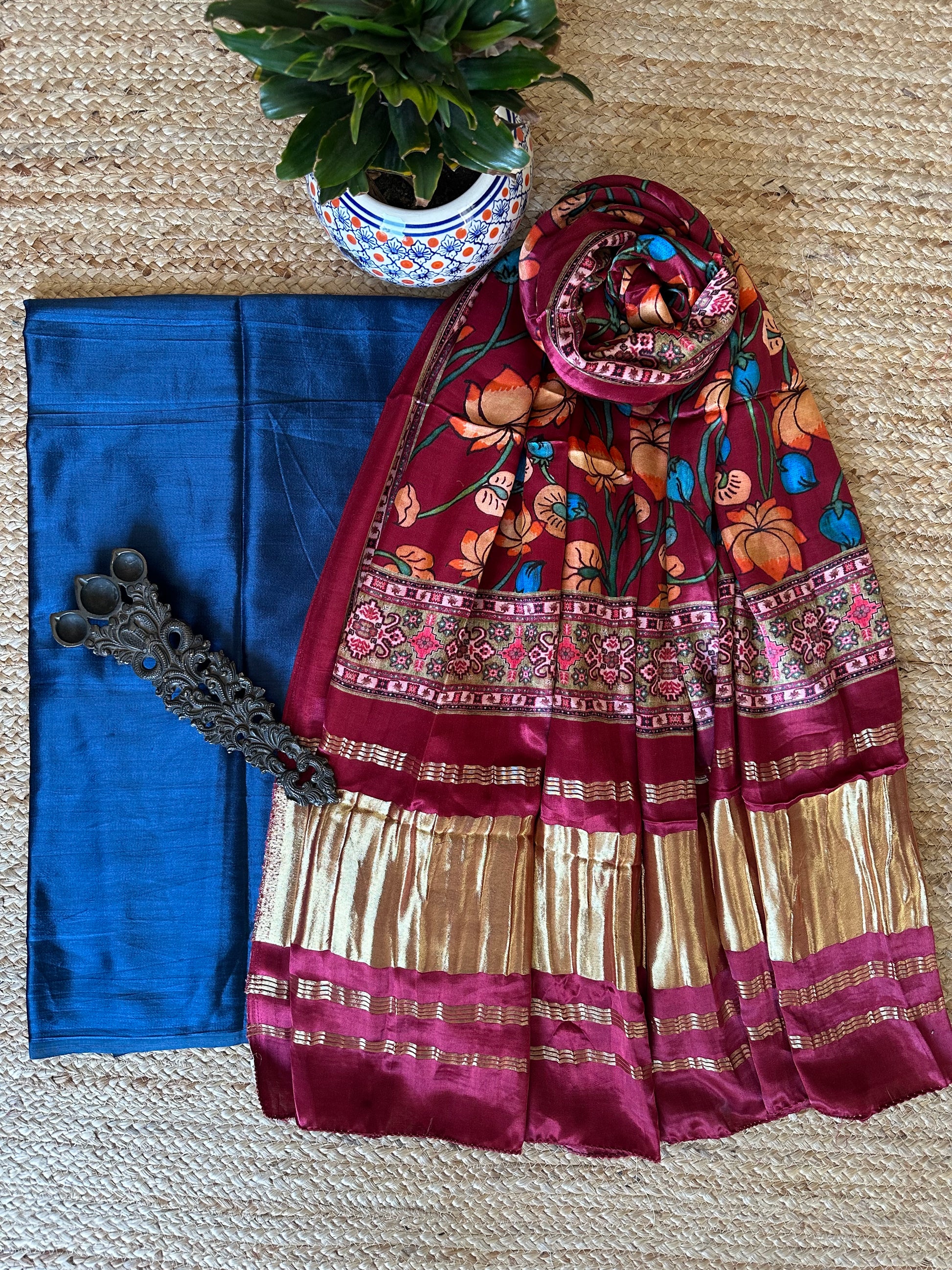BLUE MASHRU SILK KURTA WITH PATOLAPRINT MODAL SILK DUPATTA
