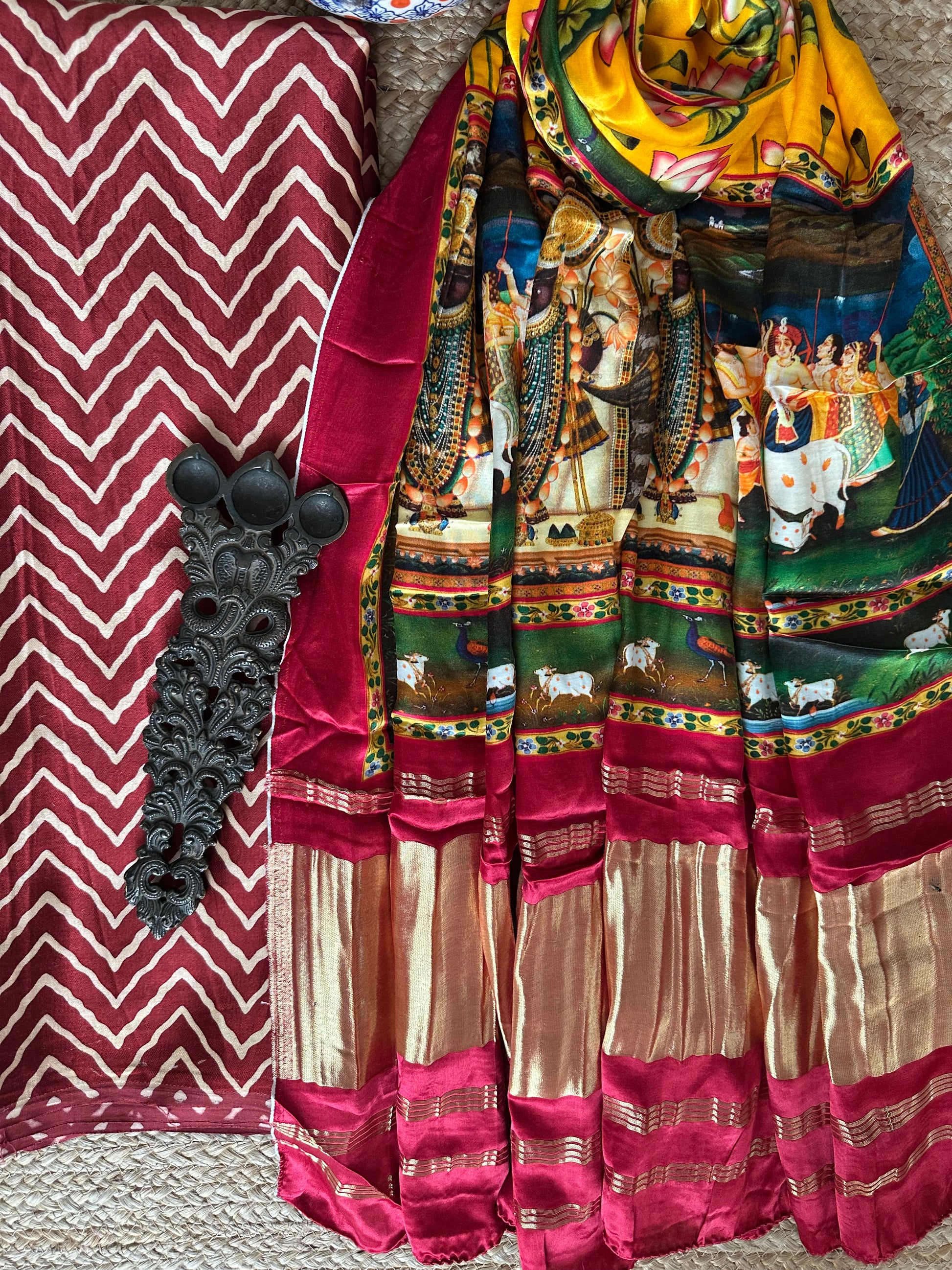 MAROON MASHRU SILK KURTA WITH PATOLAPRINT MODAL SILK DUPATTA