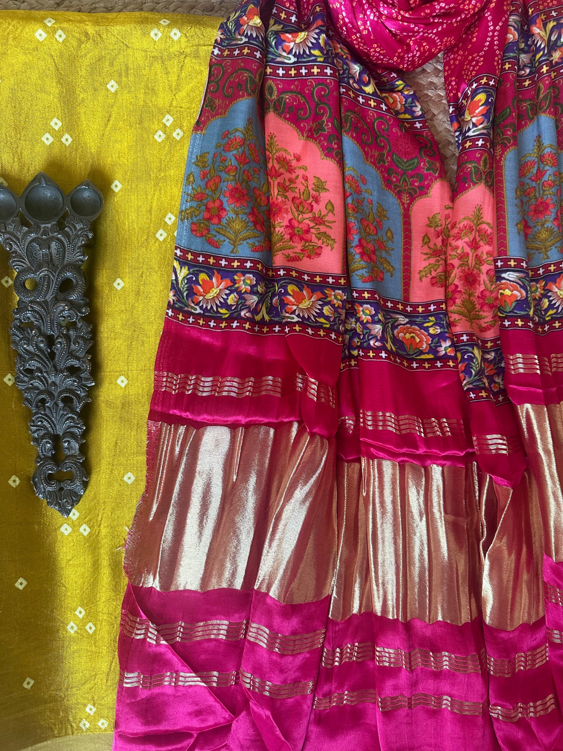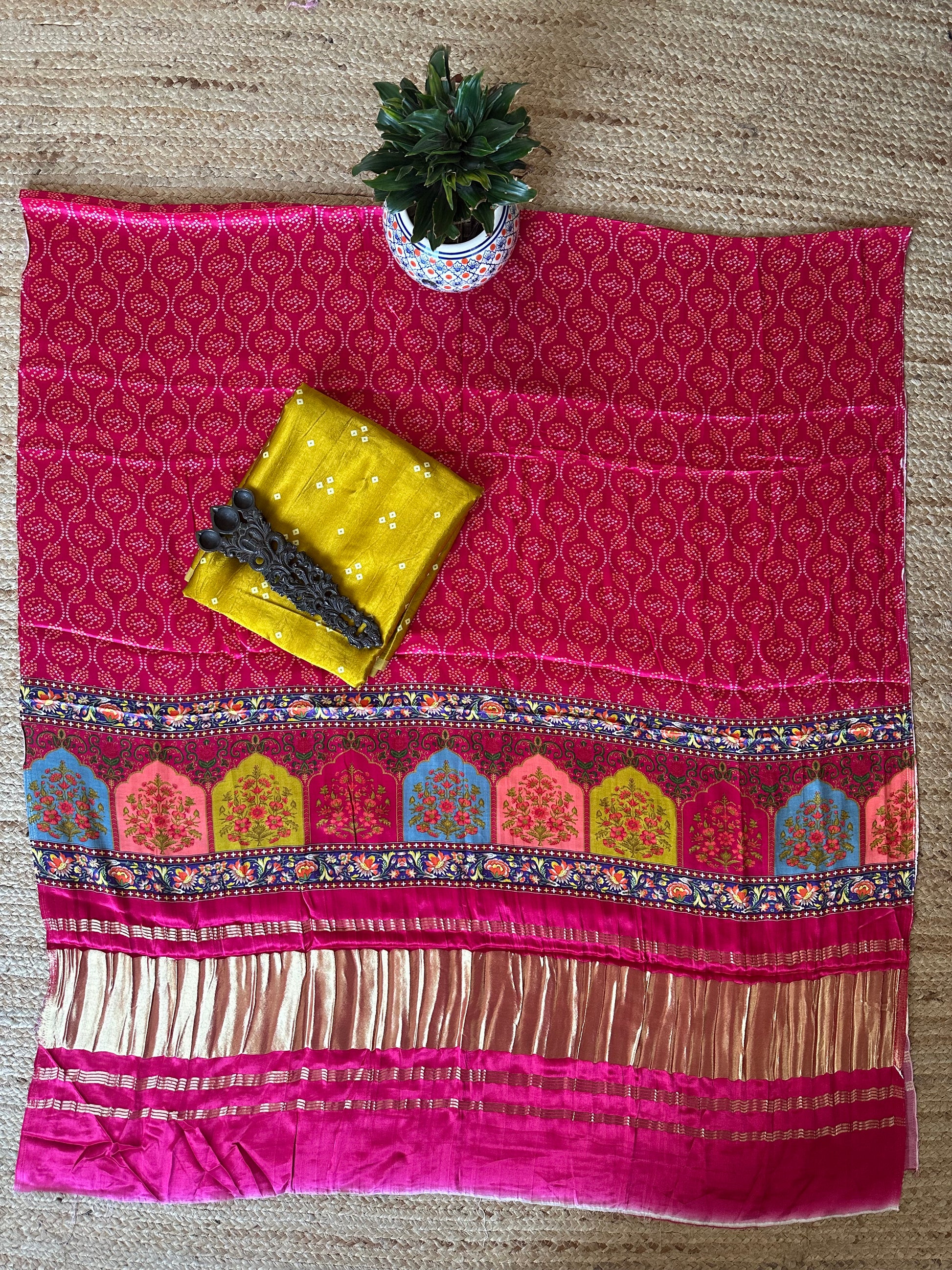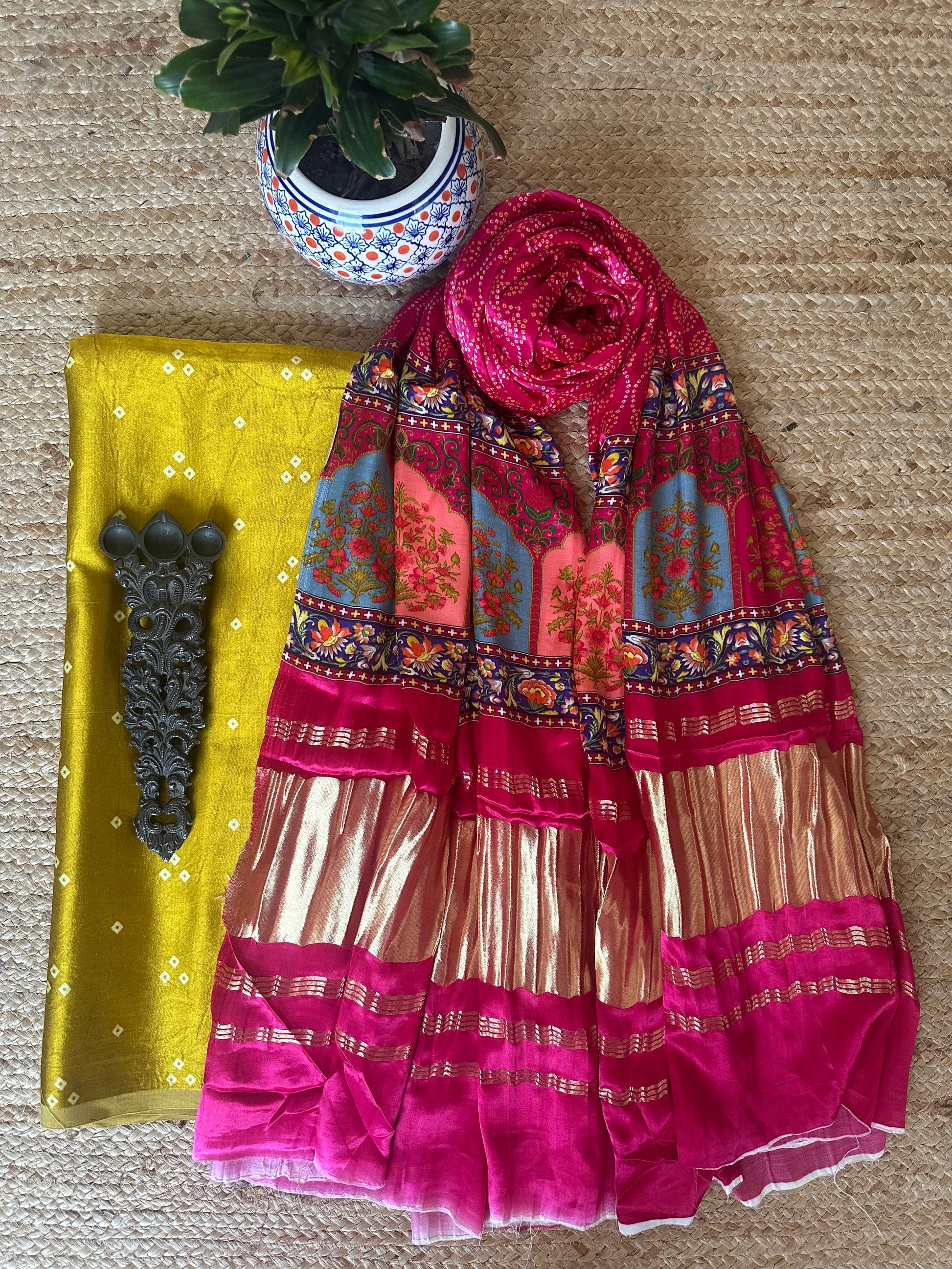 | MUSTARD MASHRU SILK KURTA WITH PATOLAPRINT MODAL SILK DUPATTA