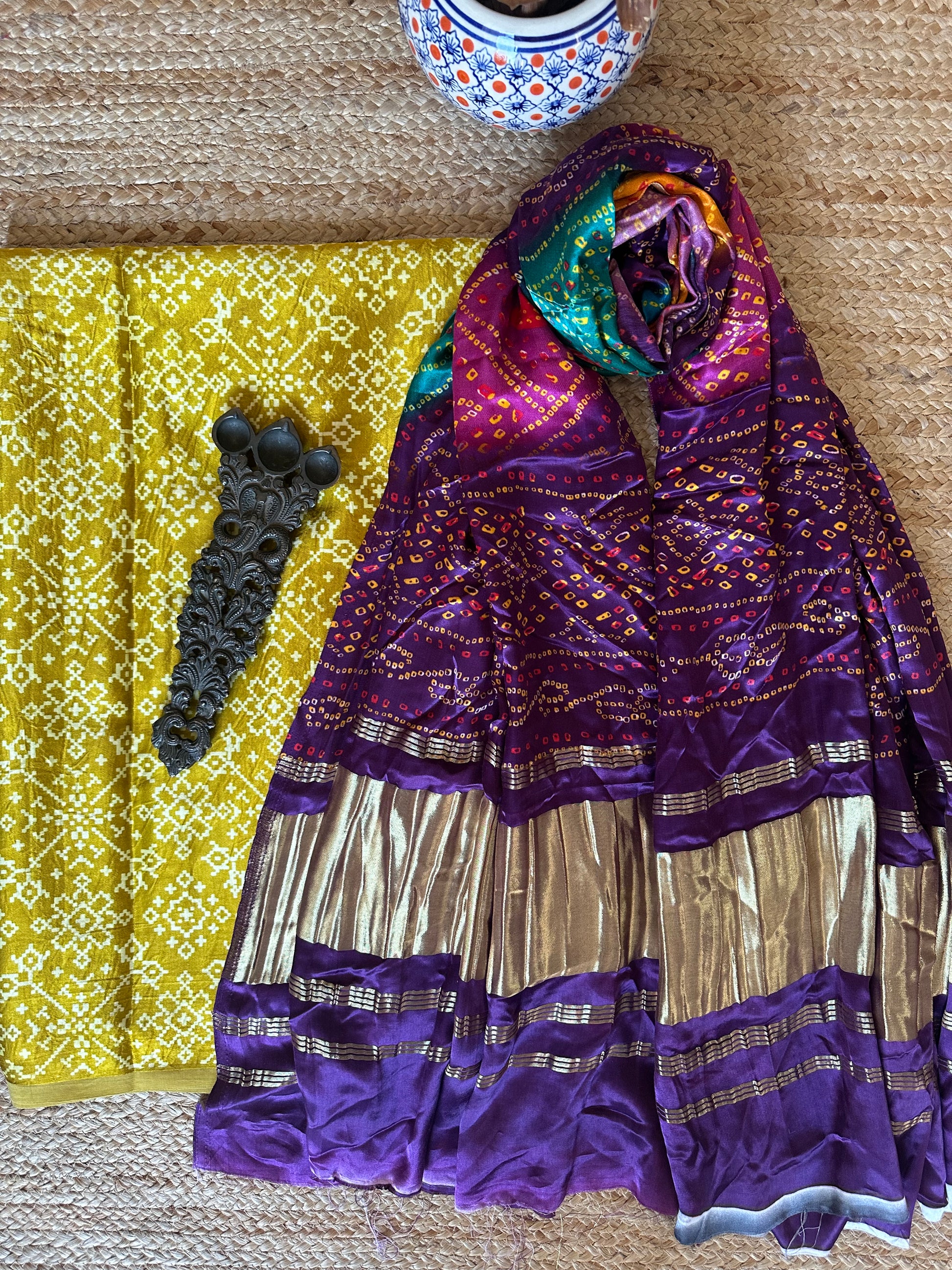 | MUSTARD MASHRU SILK KURTA WITH PATOLAPRINT MODAL SILK DUPATTA