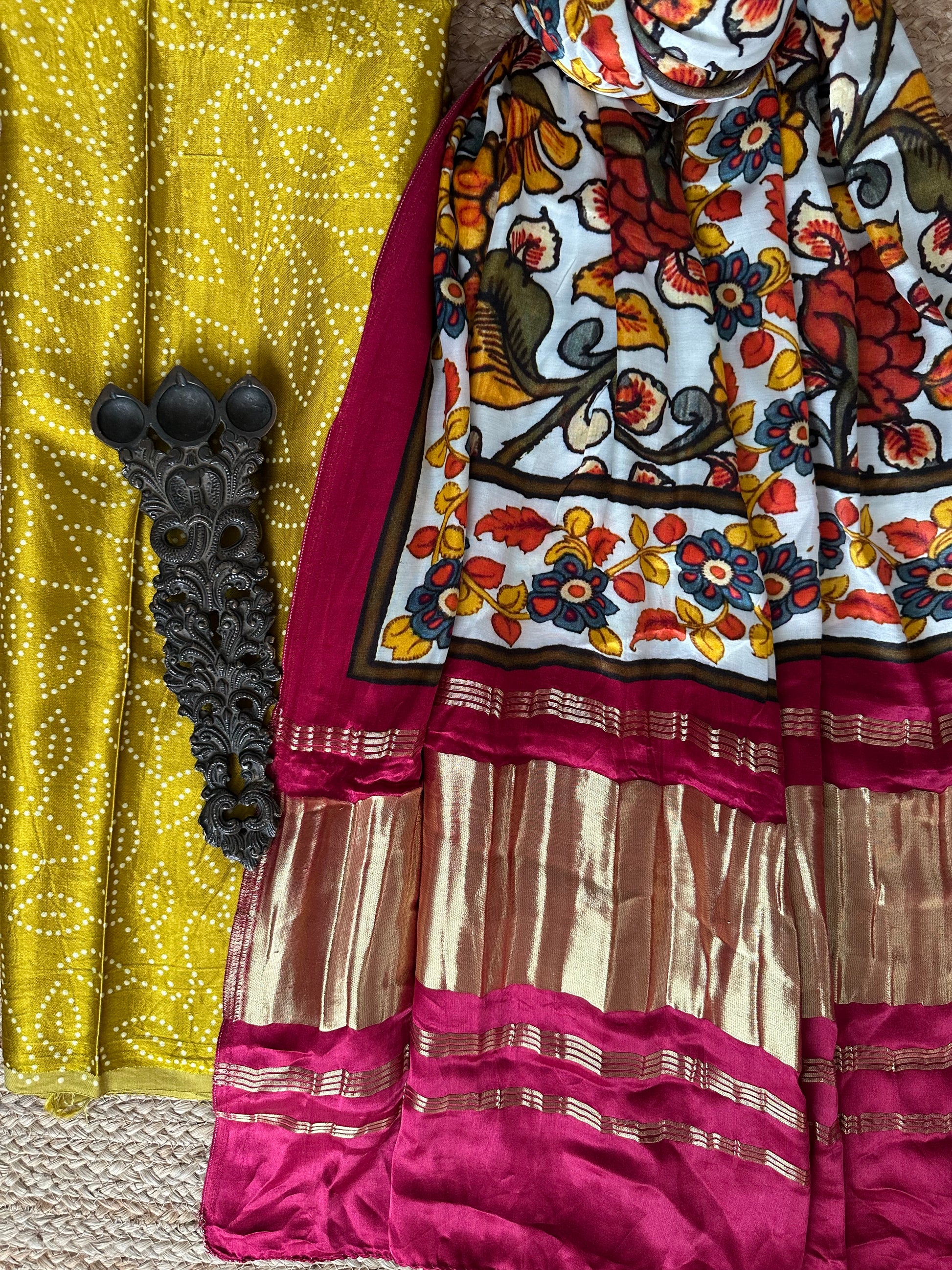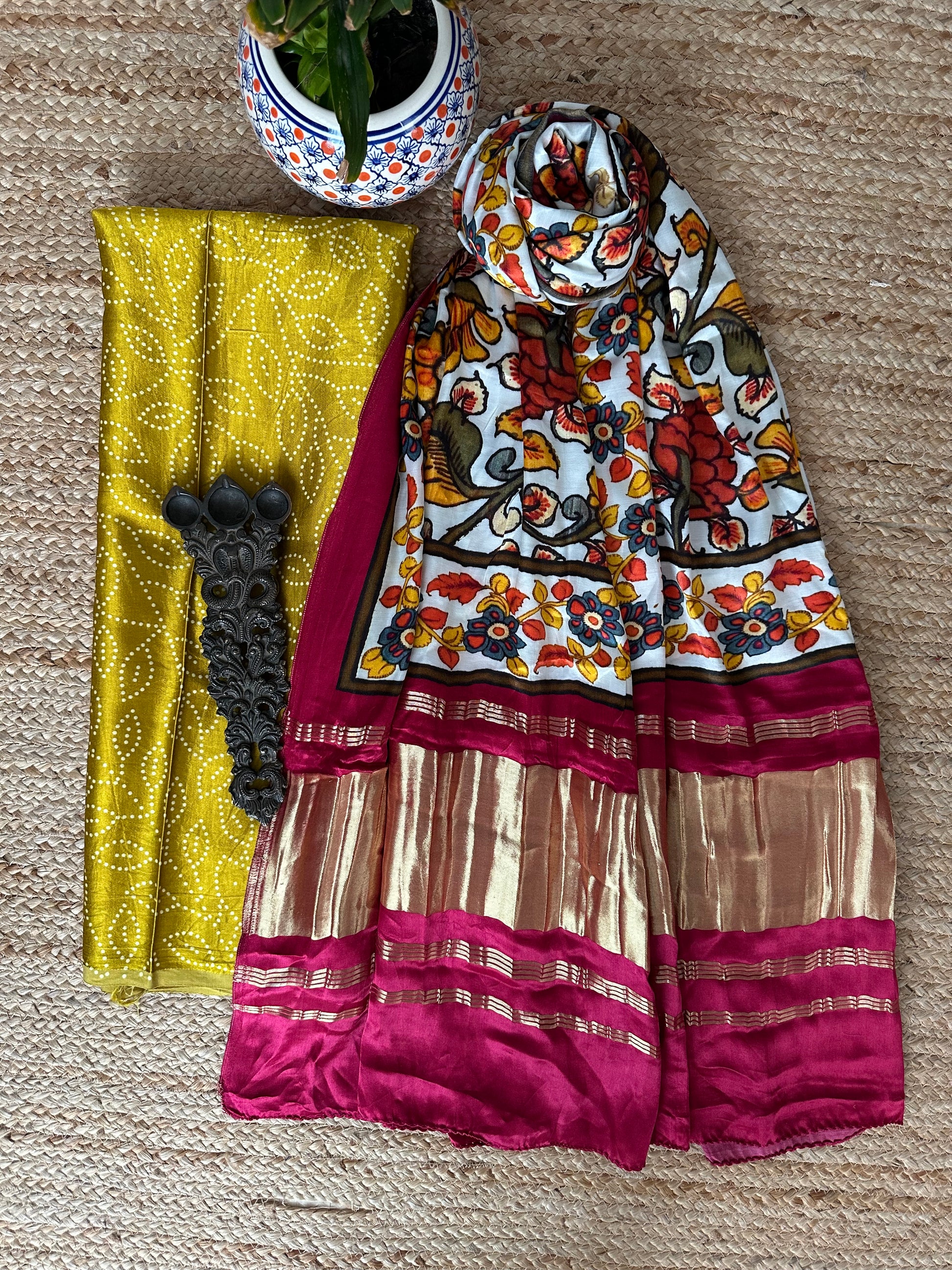 MUSTARD MASHRU SILK KURTA WITH PATOLAPRINT MODAL SILK DUPATTA