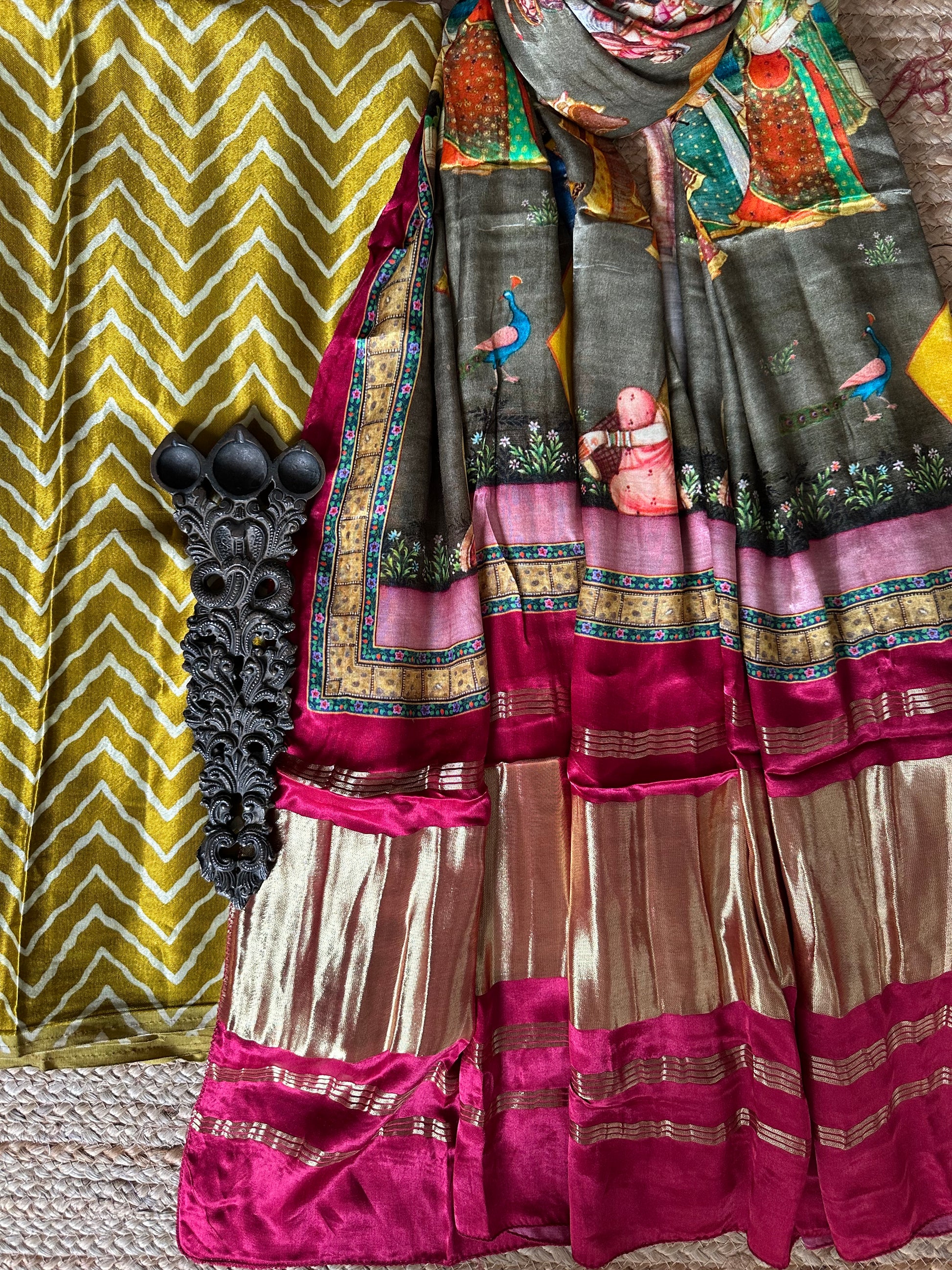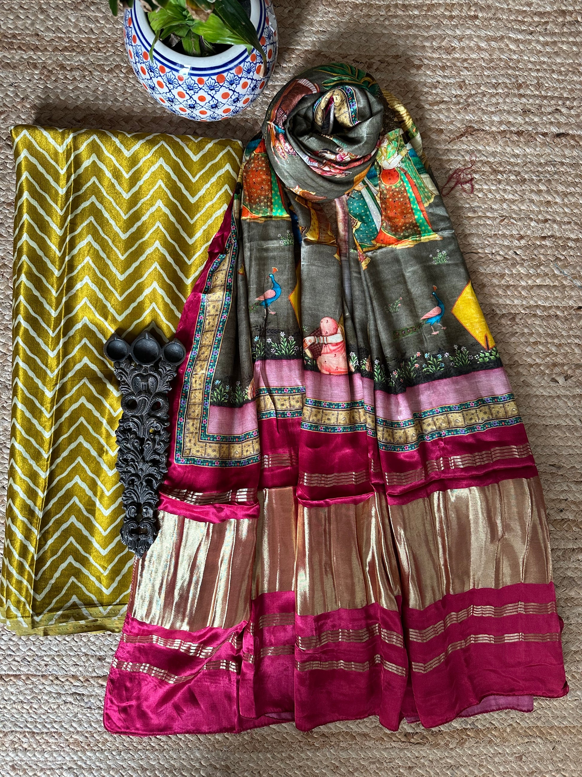 | MUSTARD MASHRU SILK KURTA WITH PATOLAPRINT MODAL SILK DUPATTA