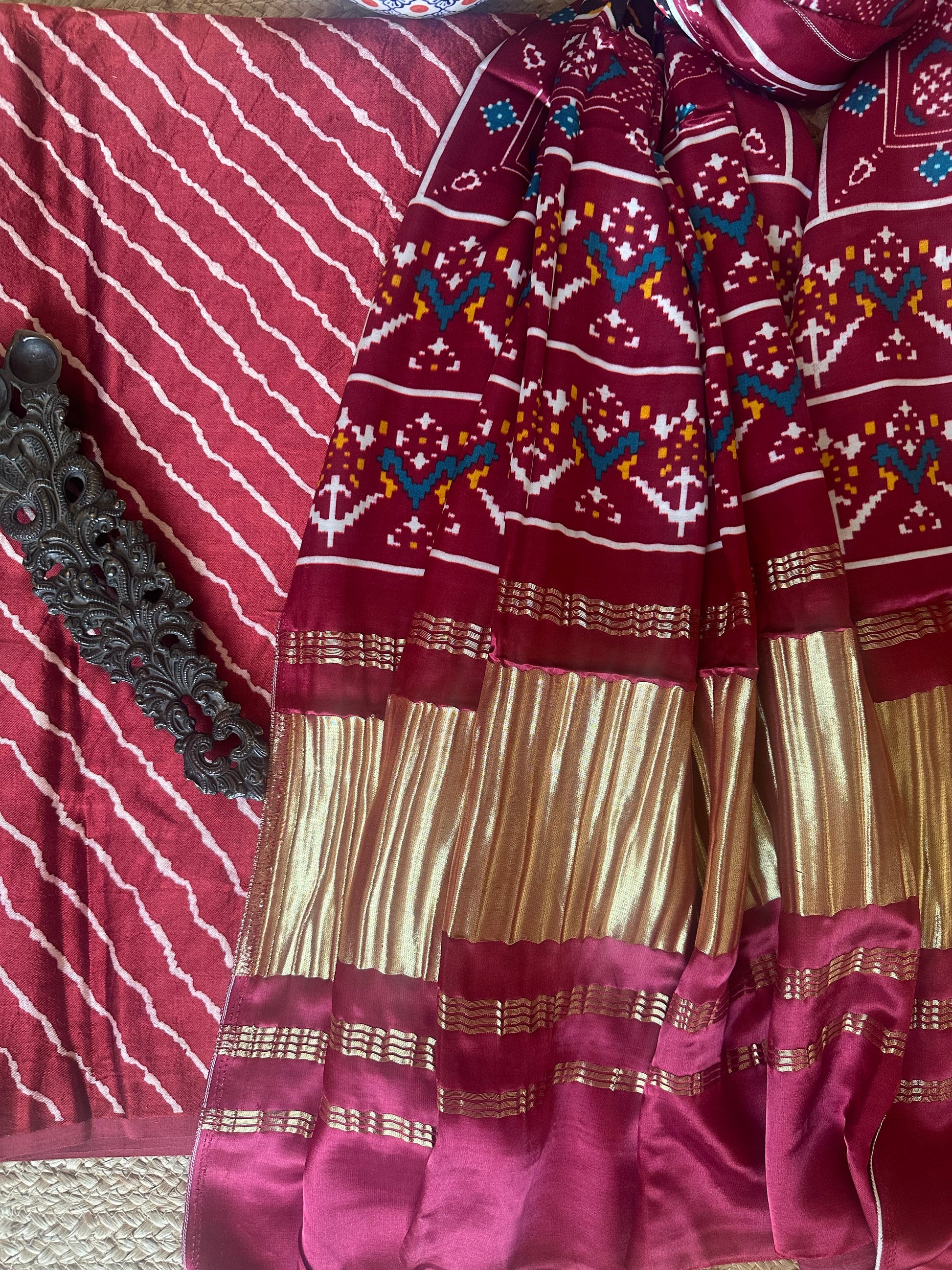 MAROON MASHRU SILK KURTA WITH PATOLAPRINT MODAL SILK DUPATTA