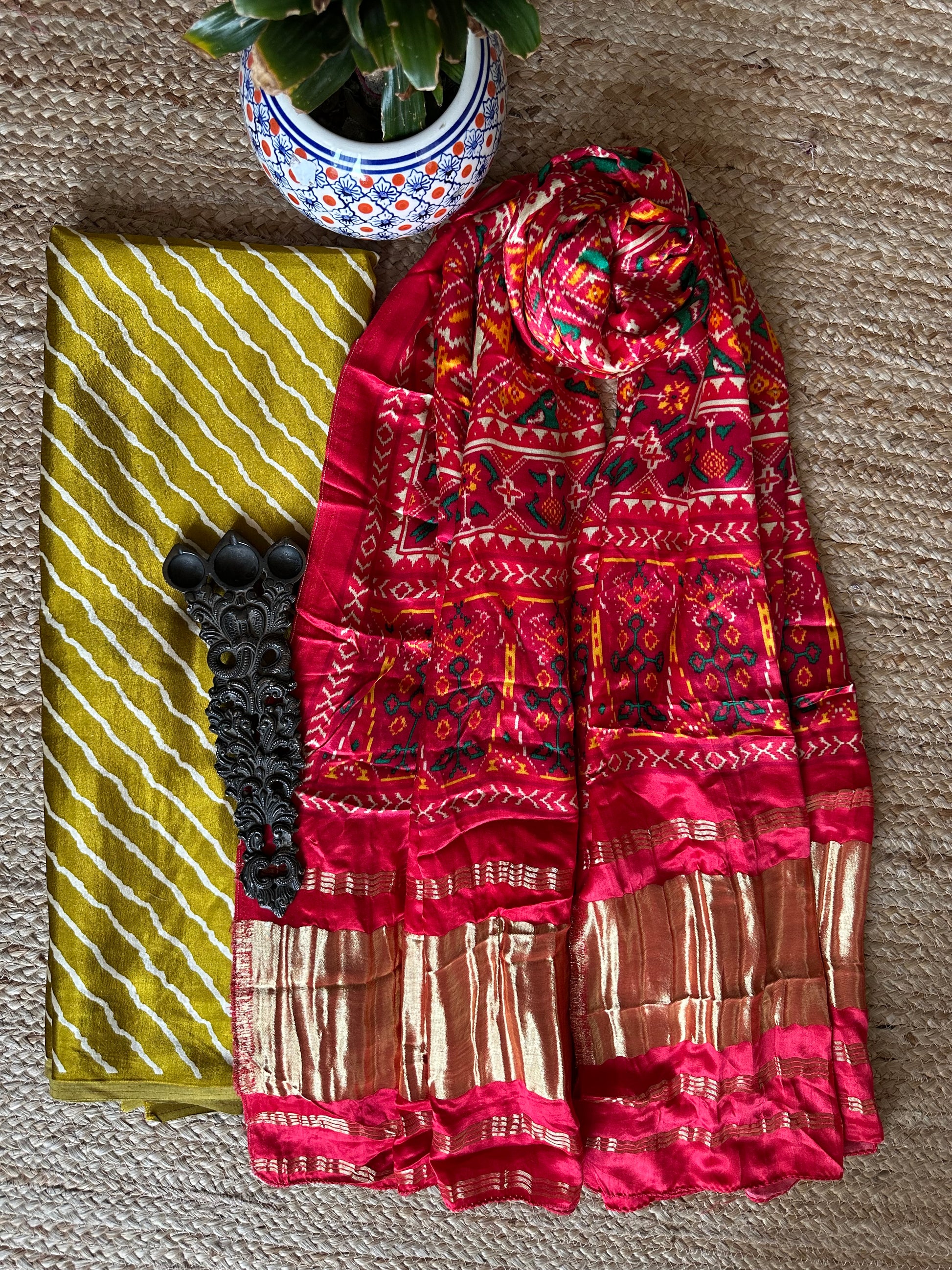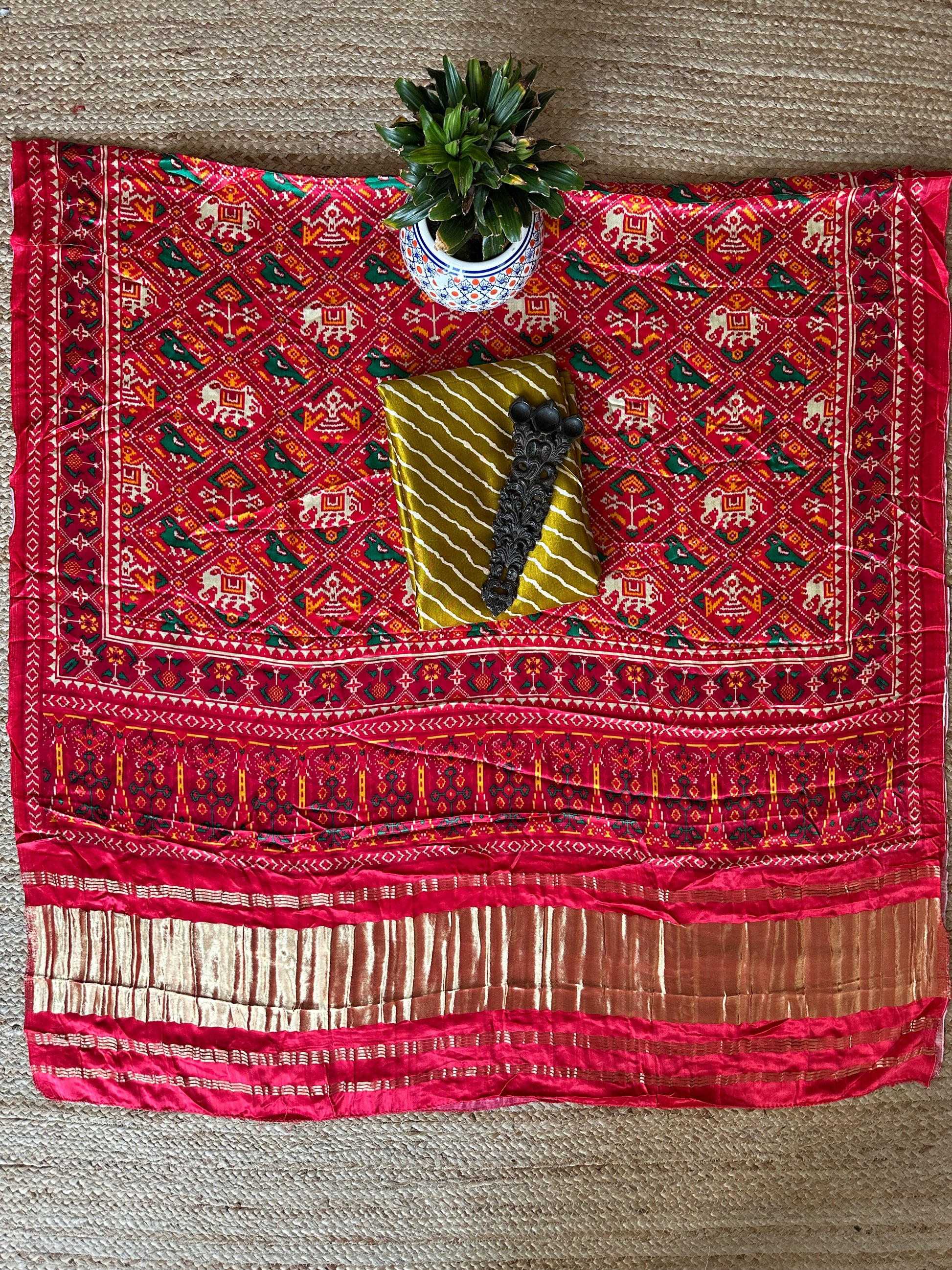 | MUSTARD MASHRU SILK KURTA WITH PATOLAPRINT MODAL SILK DUPATTA