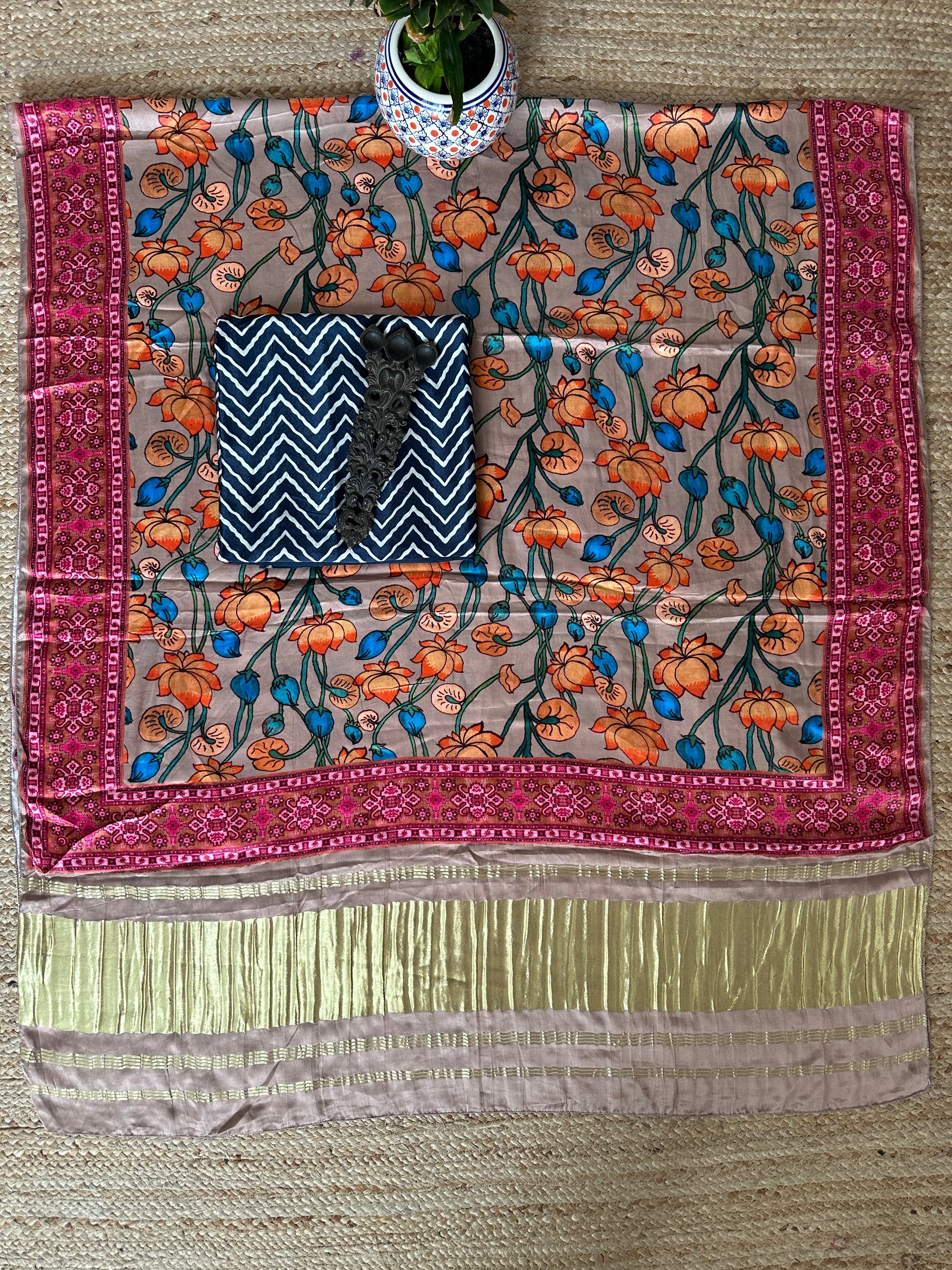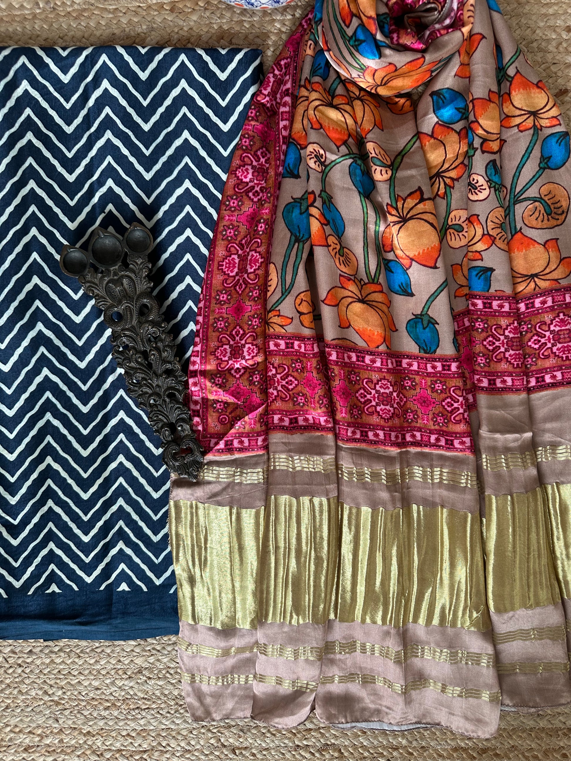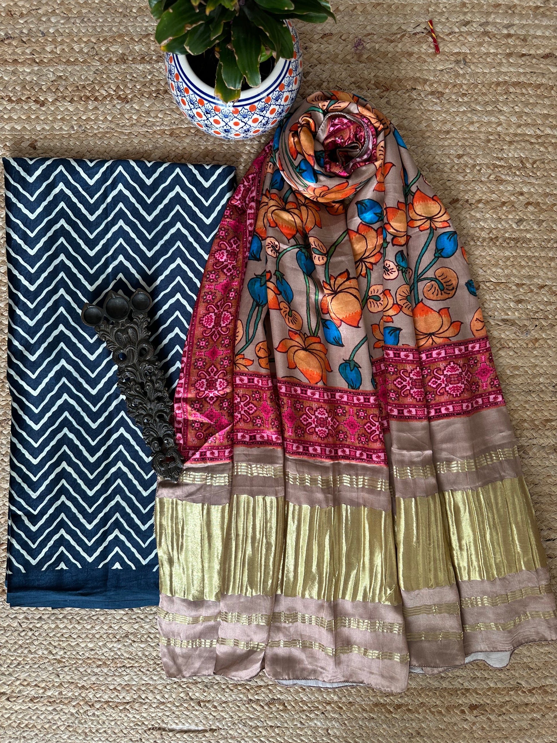 BLUE ZIGZAG MASHRU SILK KURTA WITH PATOLA HANDCRAFTED MODAL SILK DUPATTA PS-11