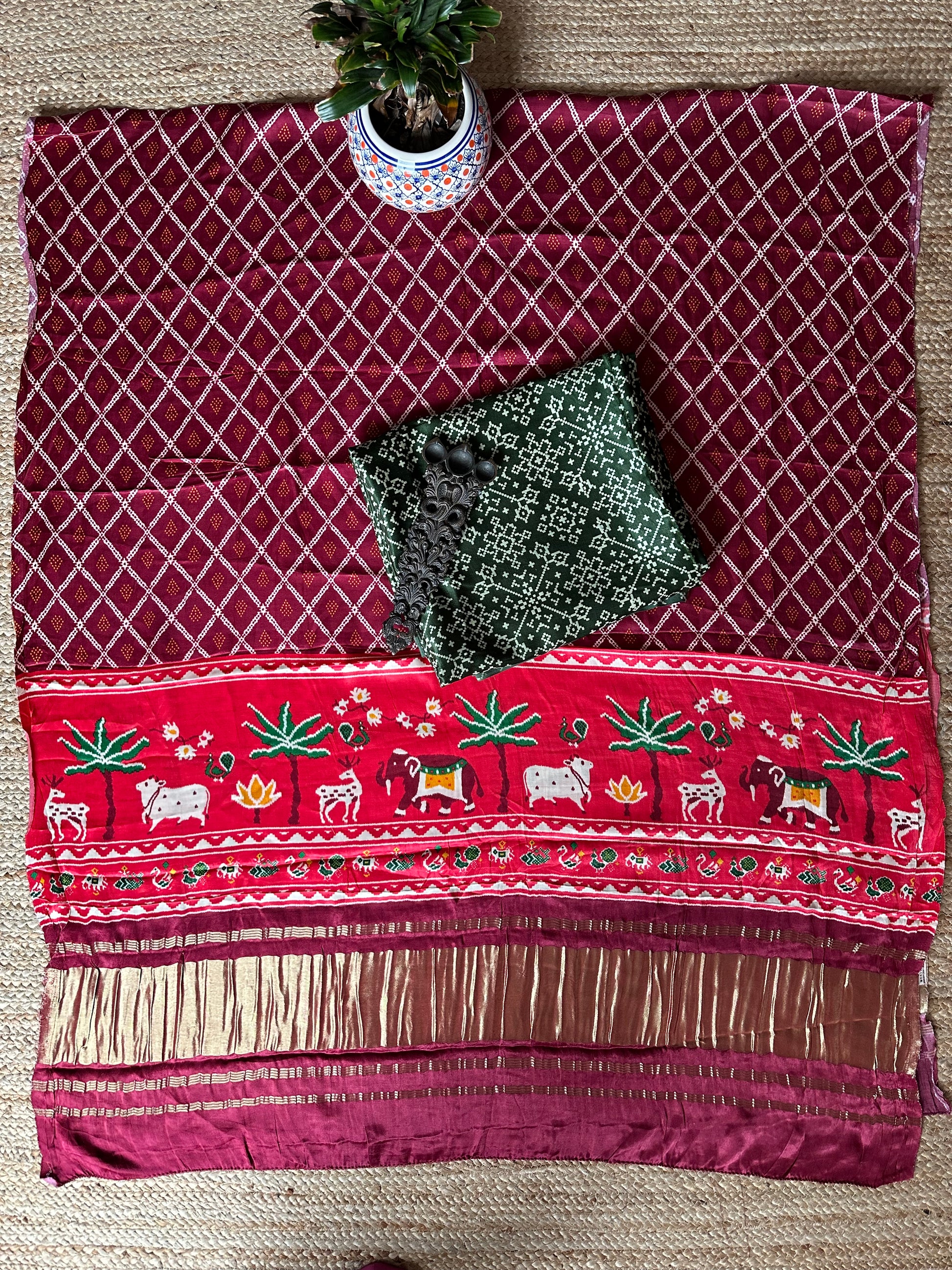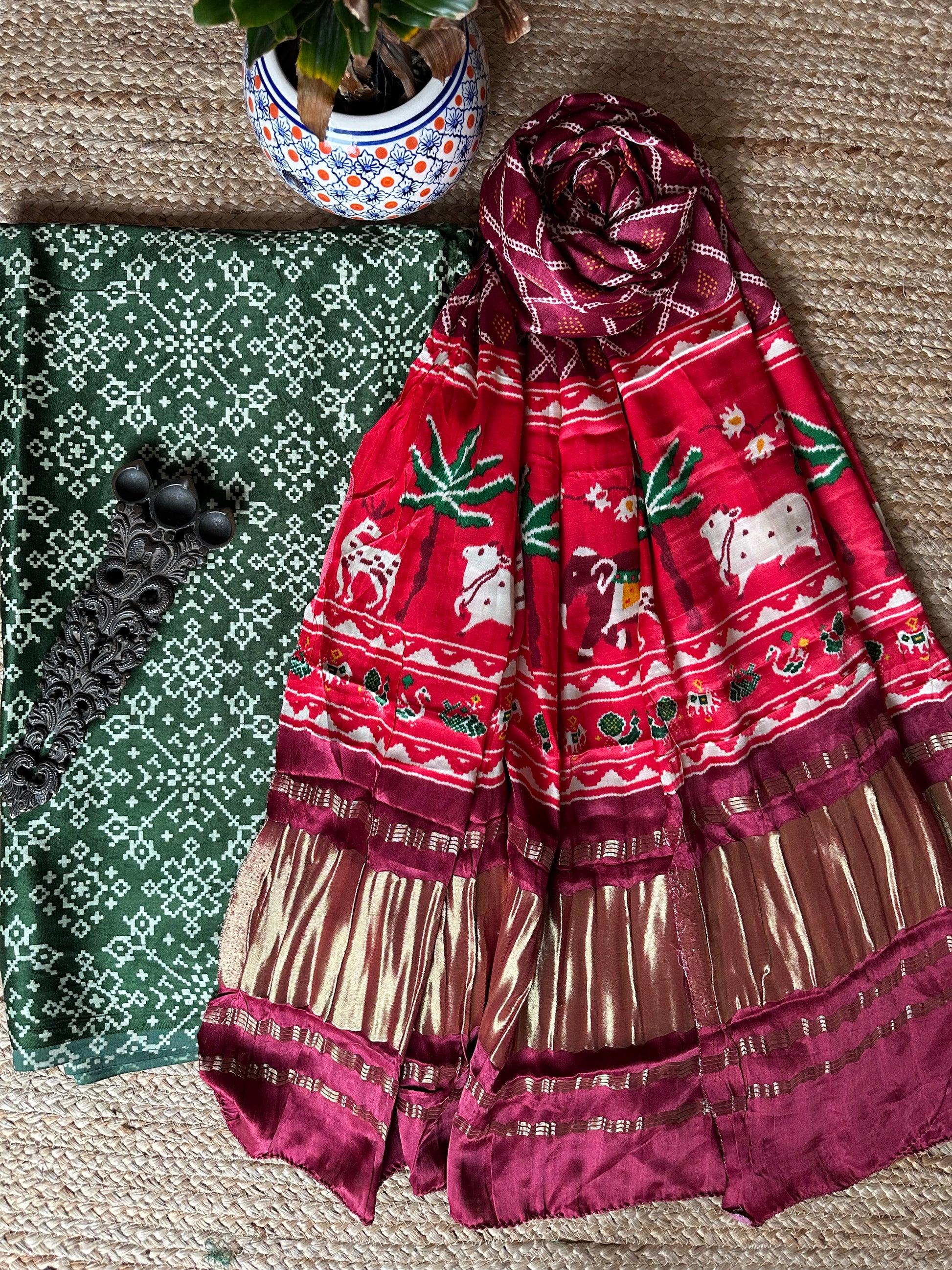GREEN MASHRU SILK KURTA WITH PATOLAPRINT MODAL SILK DUPATTA
