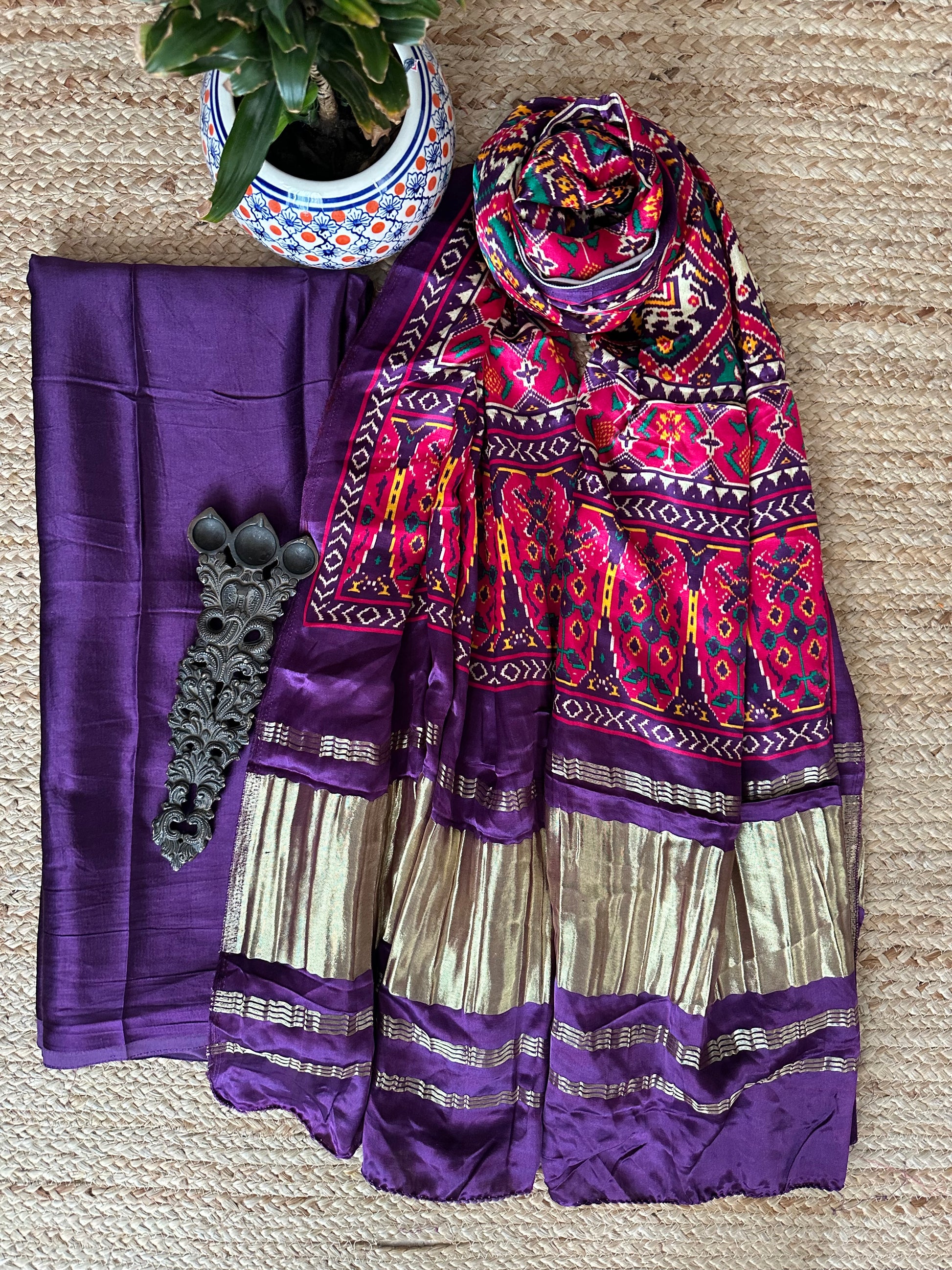 PURPLE MASHRU SILK KURTA WITH PATOLAPRINT MODAL SILK DUPATTA