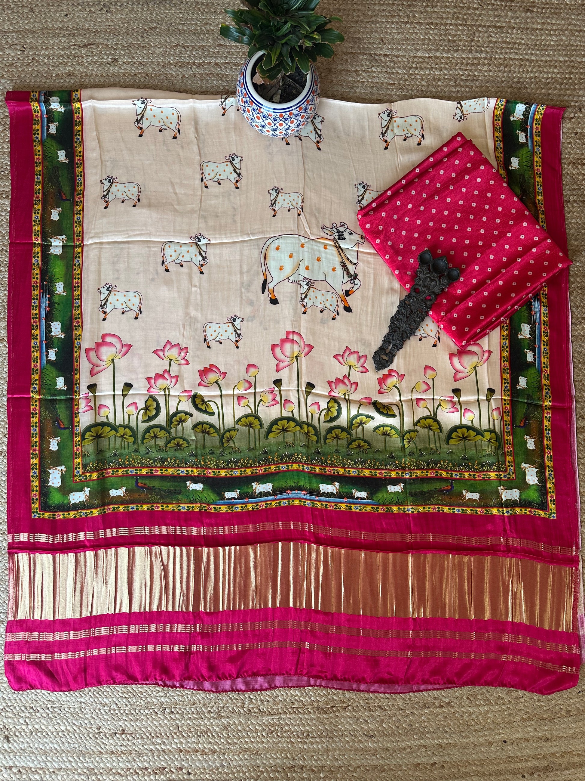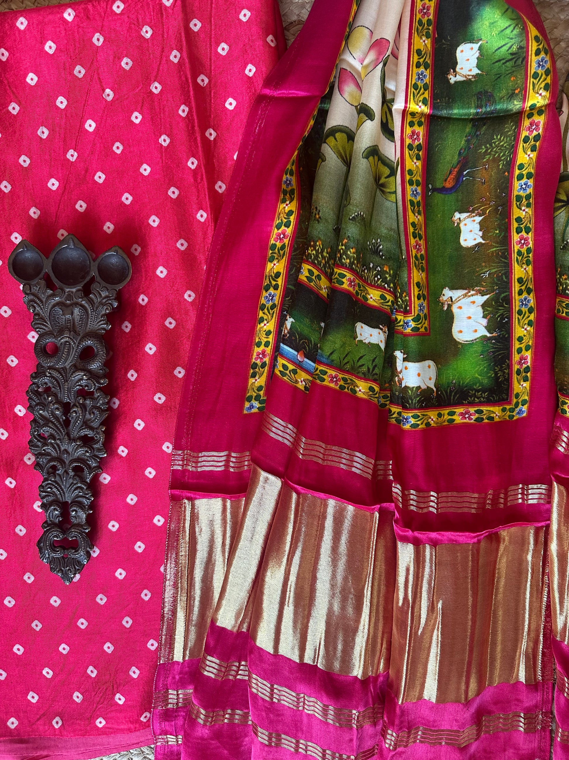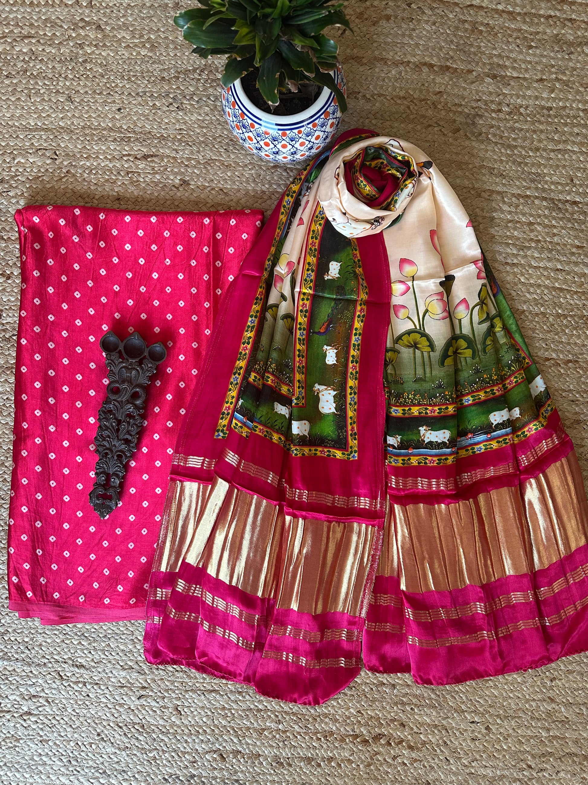 PINK MASHRU SILK KURTA WITH PATOLAPRINT MODAL SILK DUPATTA