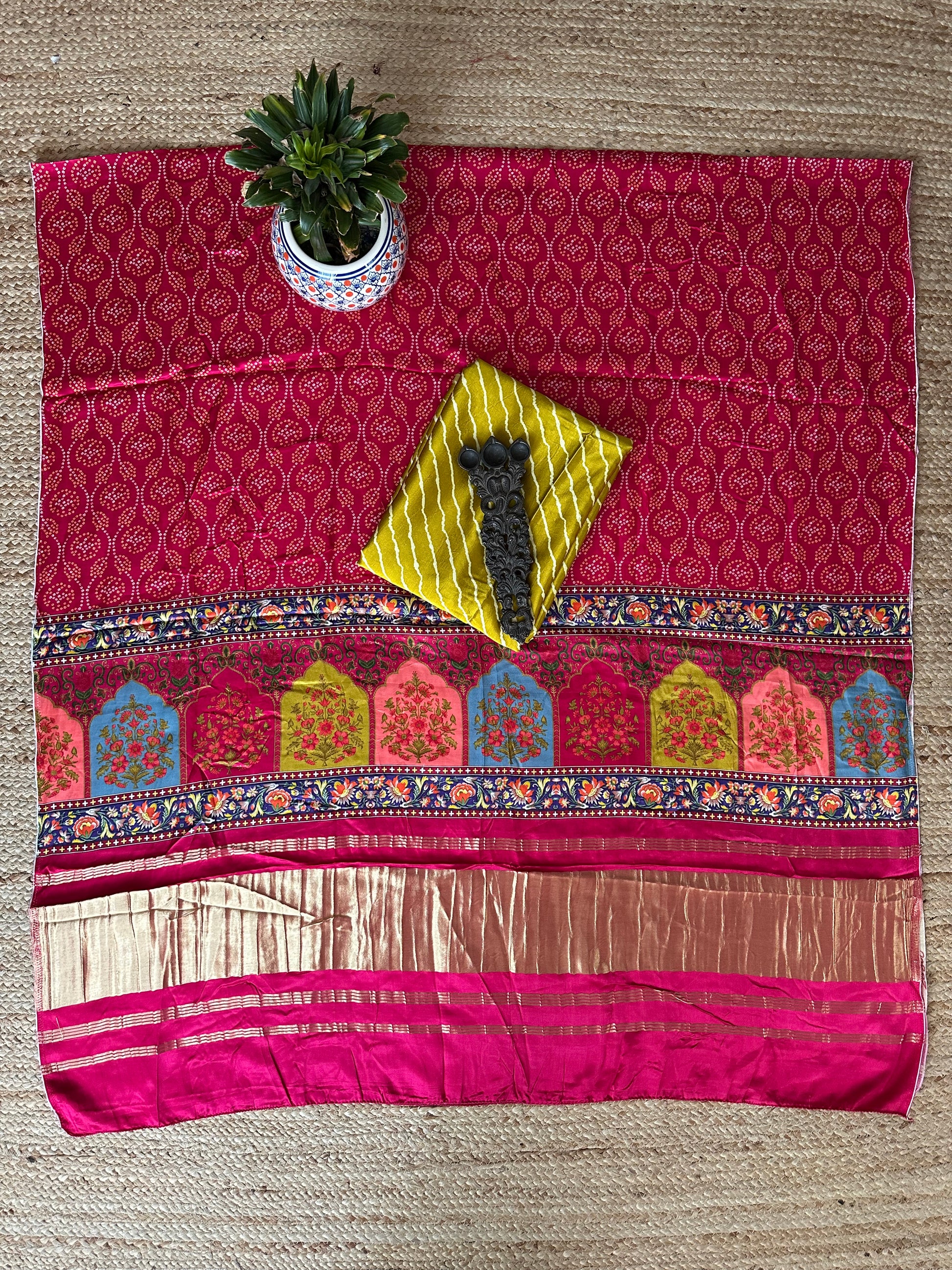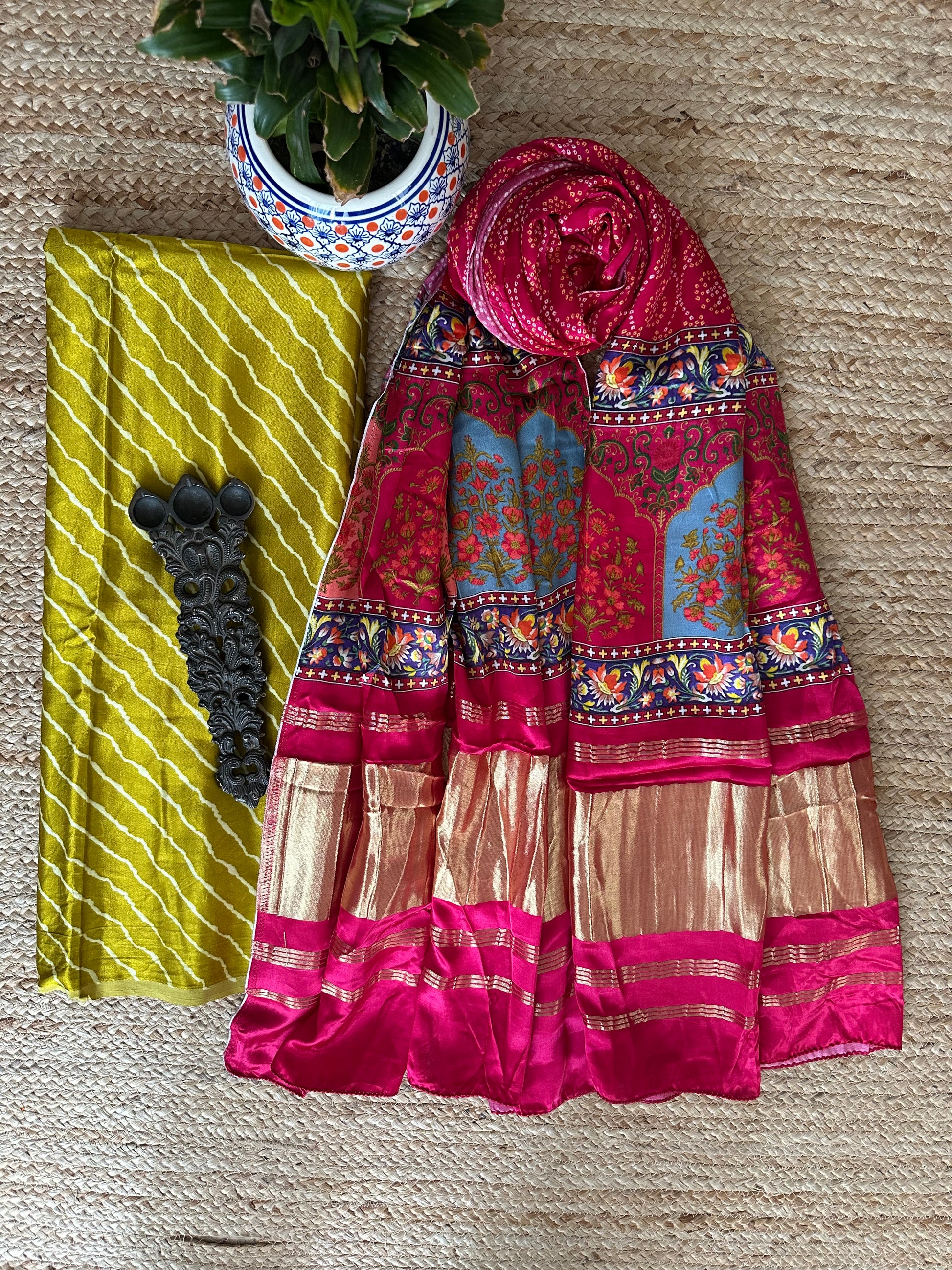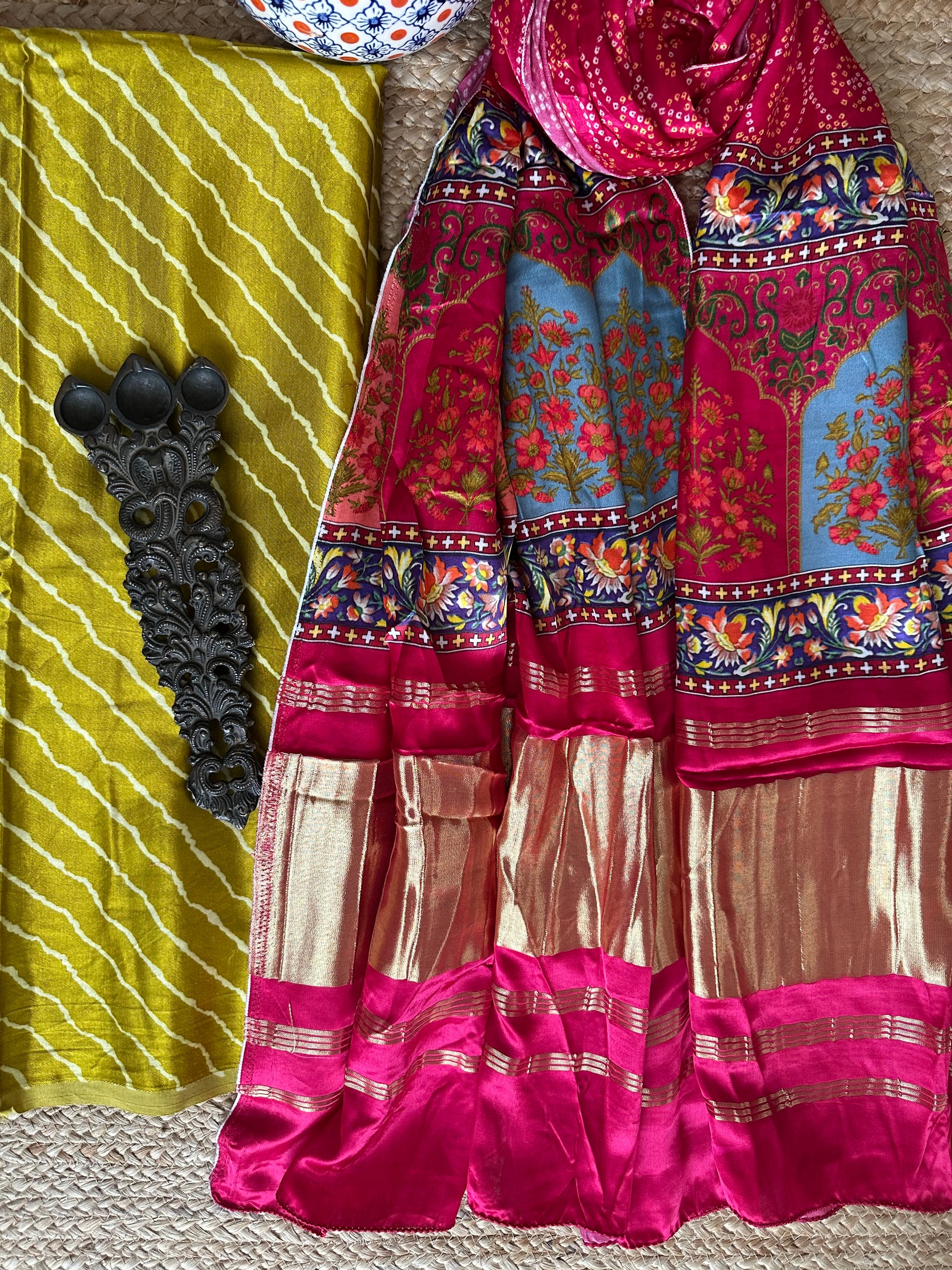 MUSTARD LEHERIYA MASHRU SILK KURTA WITH PATOLAPRINT MODAL SILK DUPATTA
