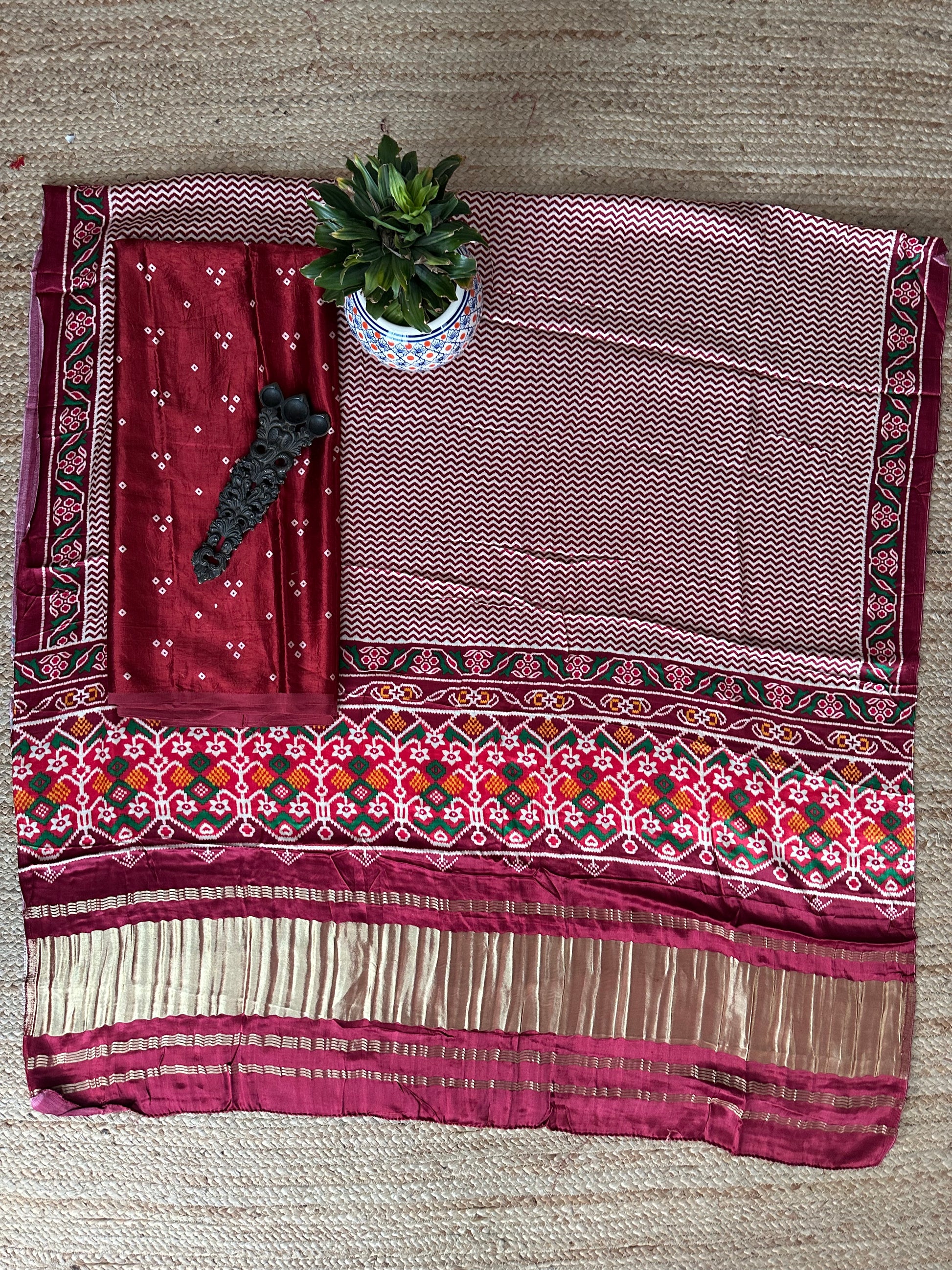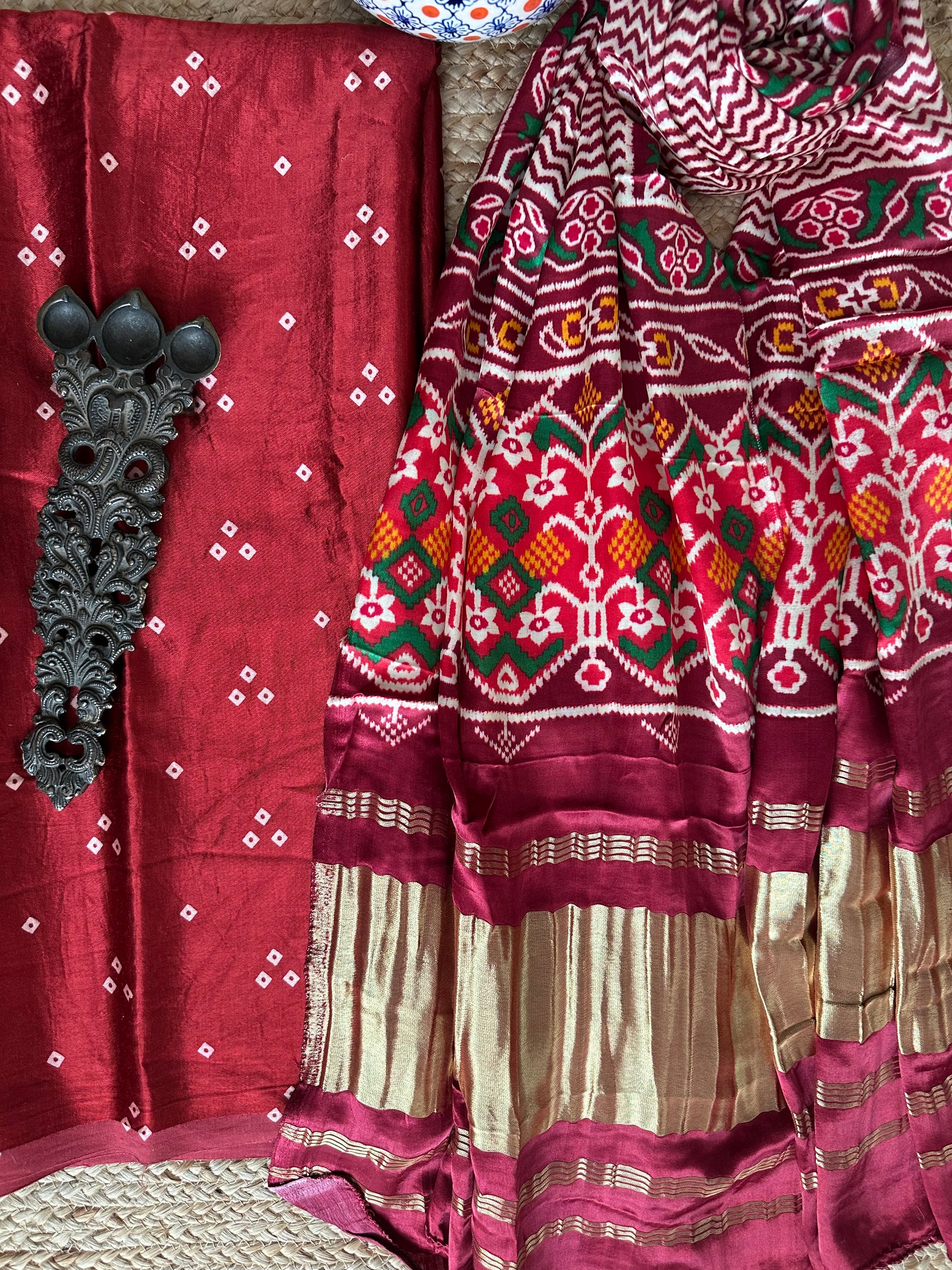 | MAROON 3 BANDHANI MASHRU SILK KURTA WITH PATOLAPRINT MODAL SILK DUPATTA