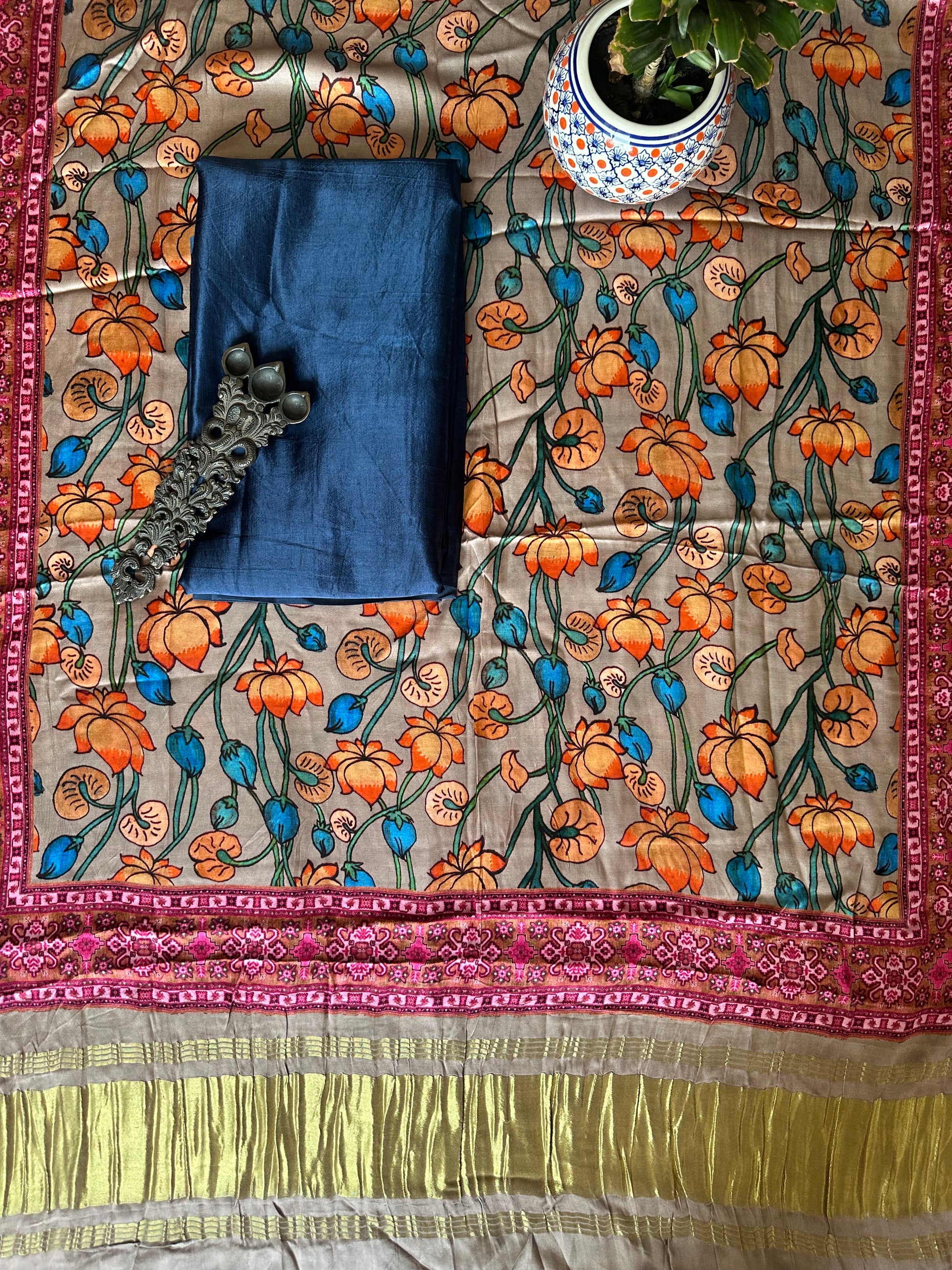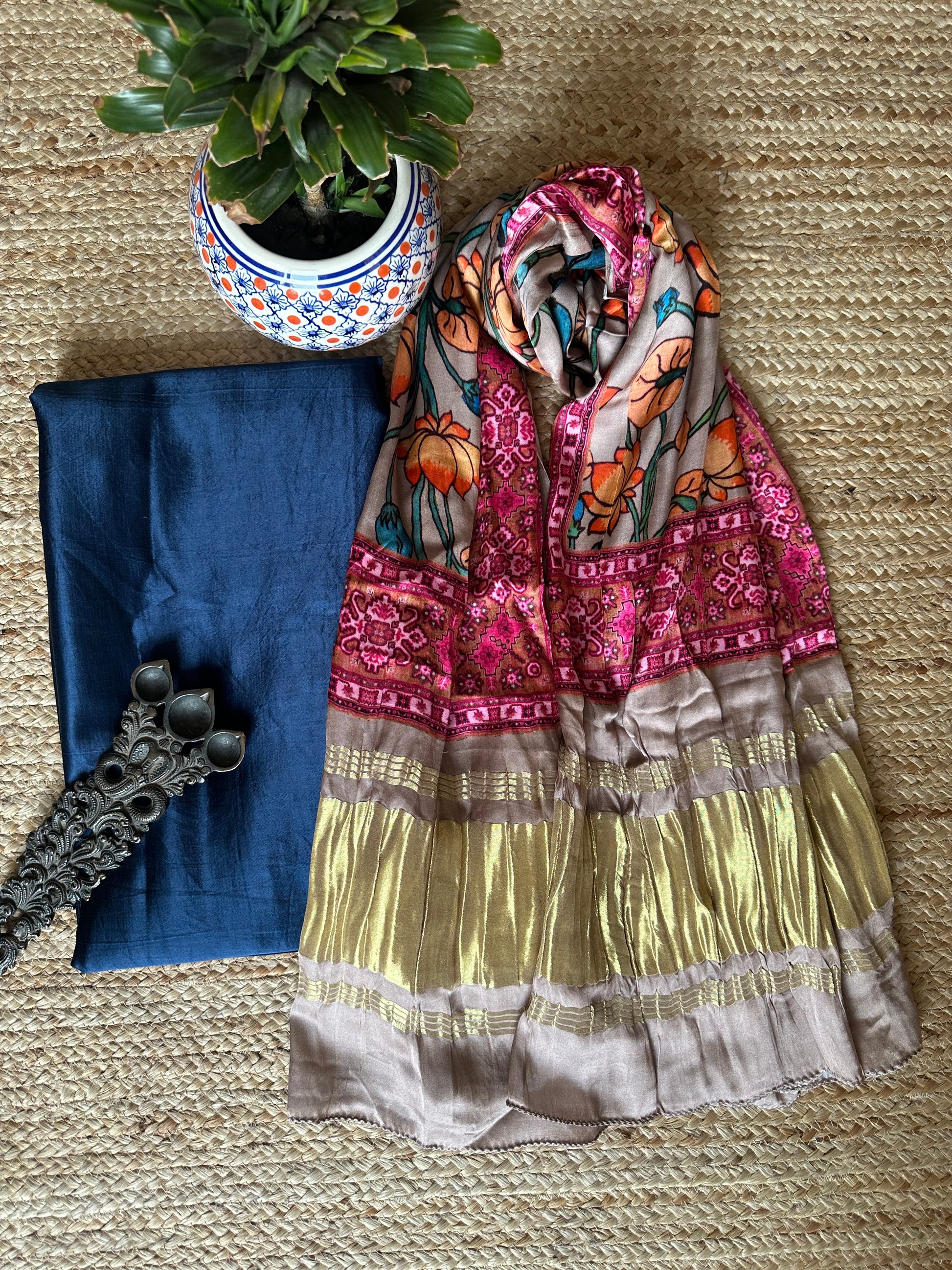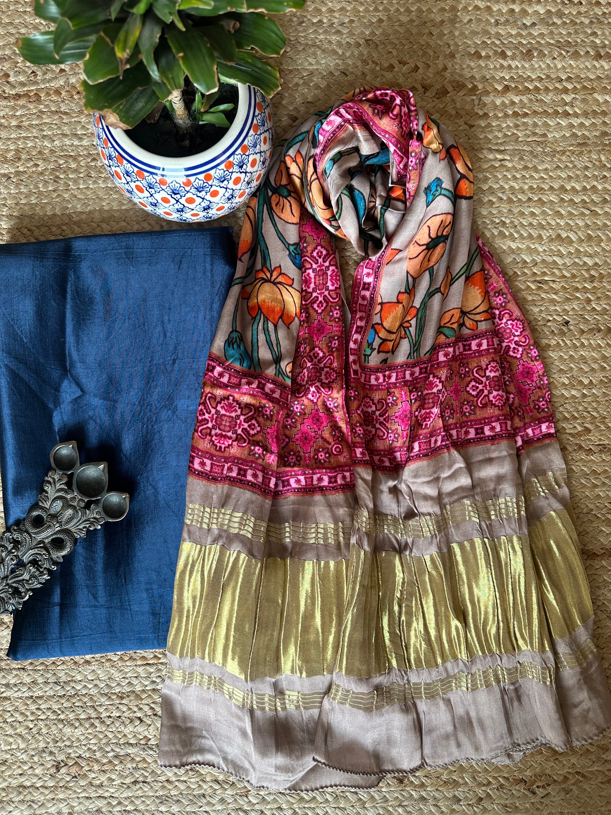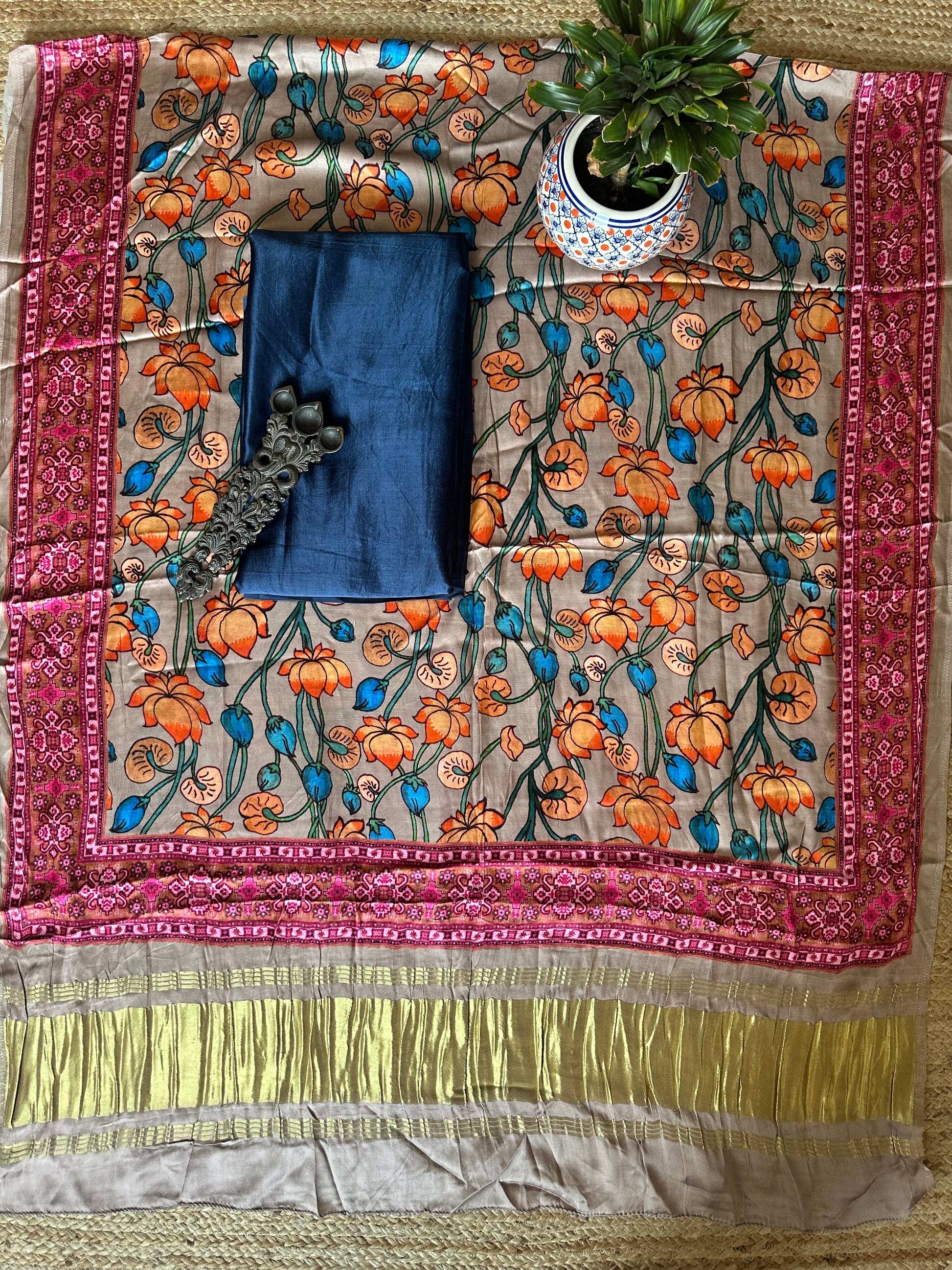 | BLUE SOLID PICHWAI MASHRU SILK KURTA WITH PATOLA PRINT MODAL SILK DUPATTA