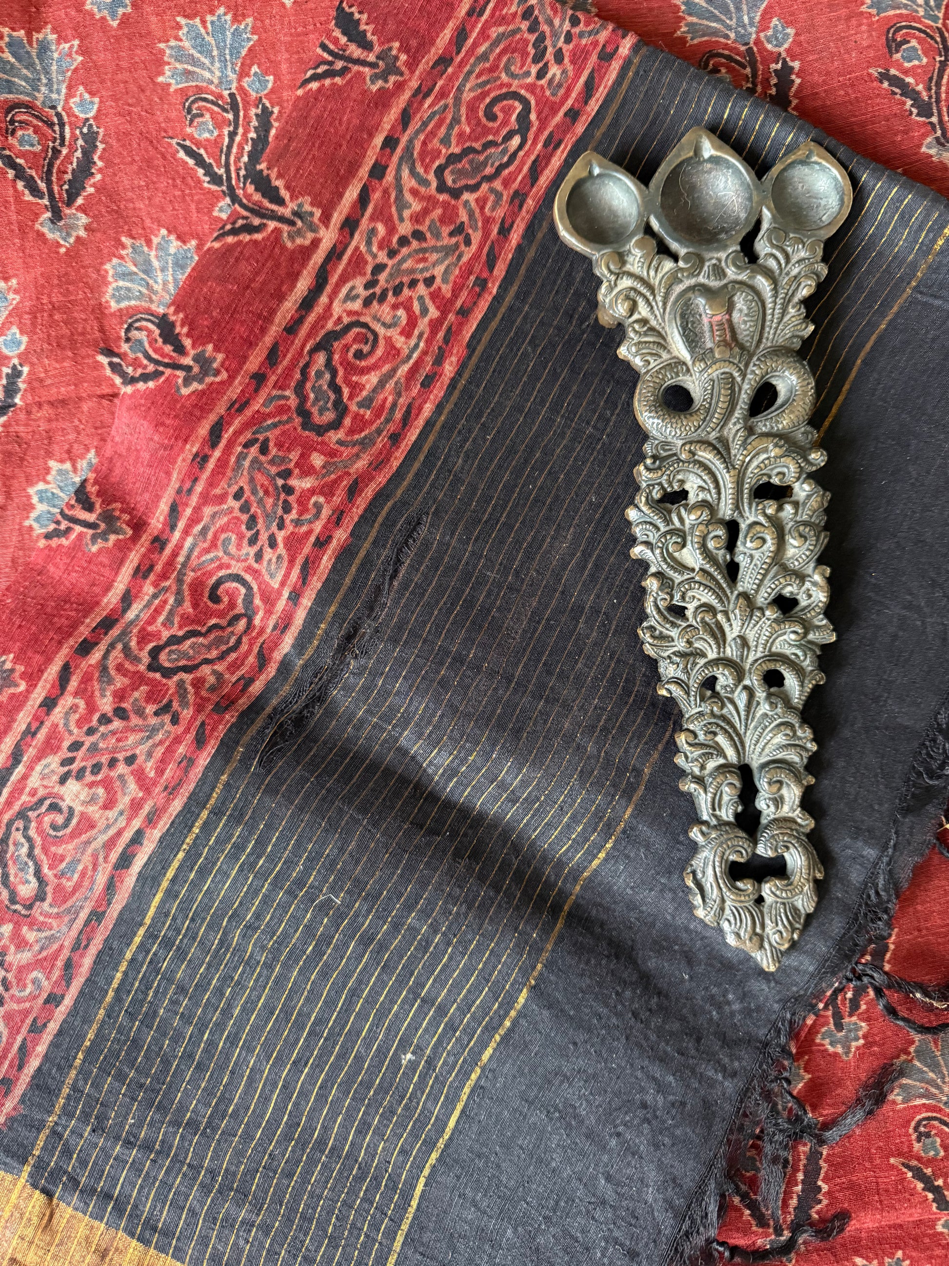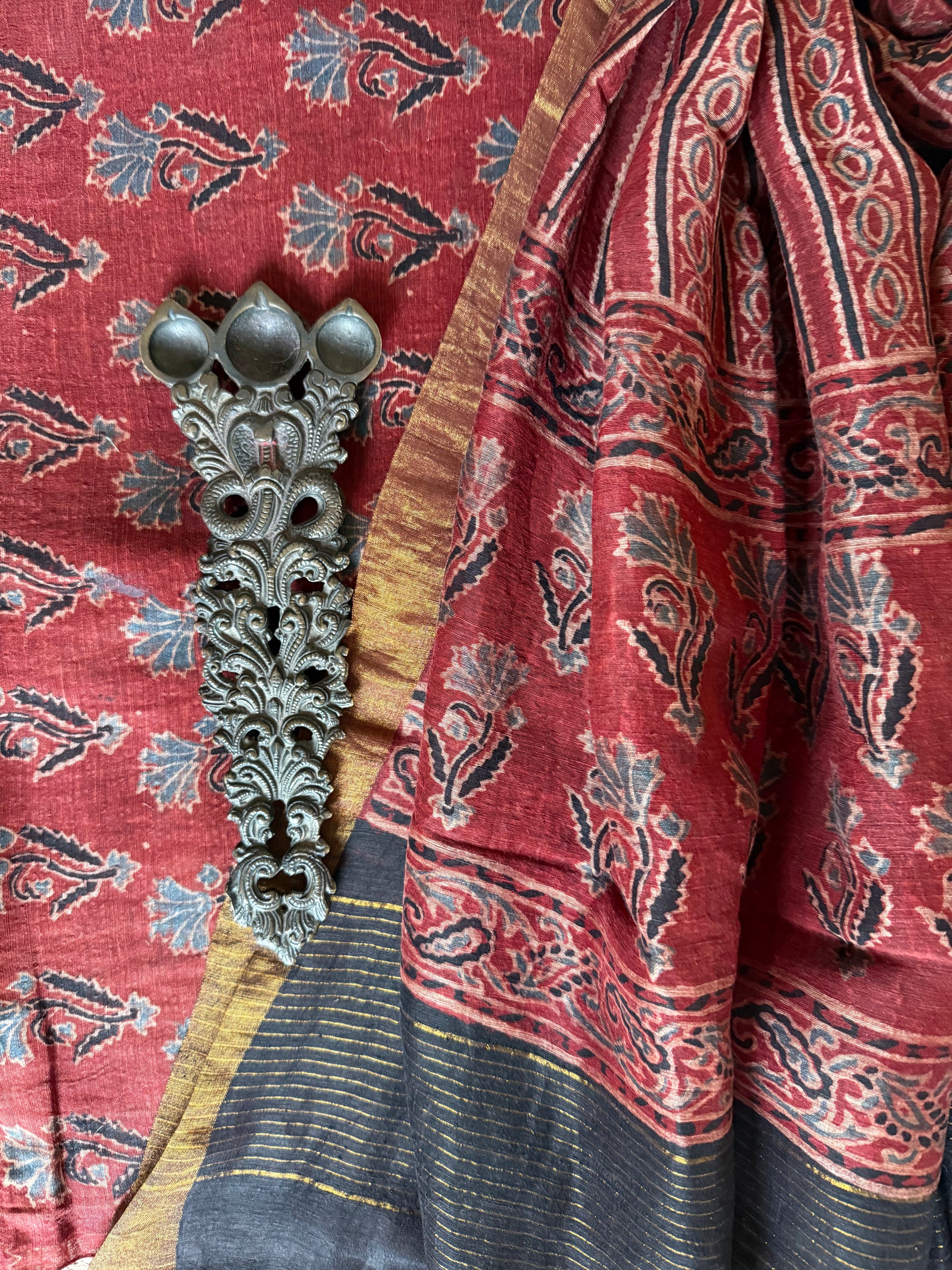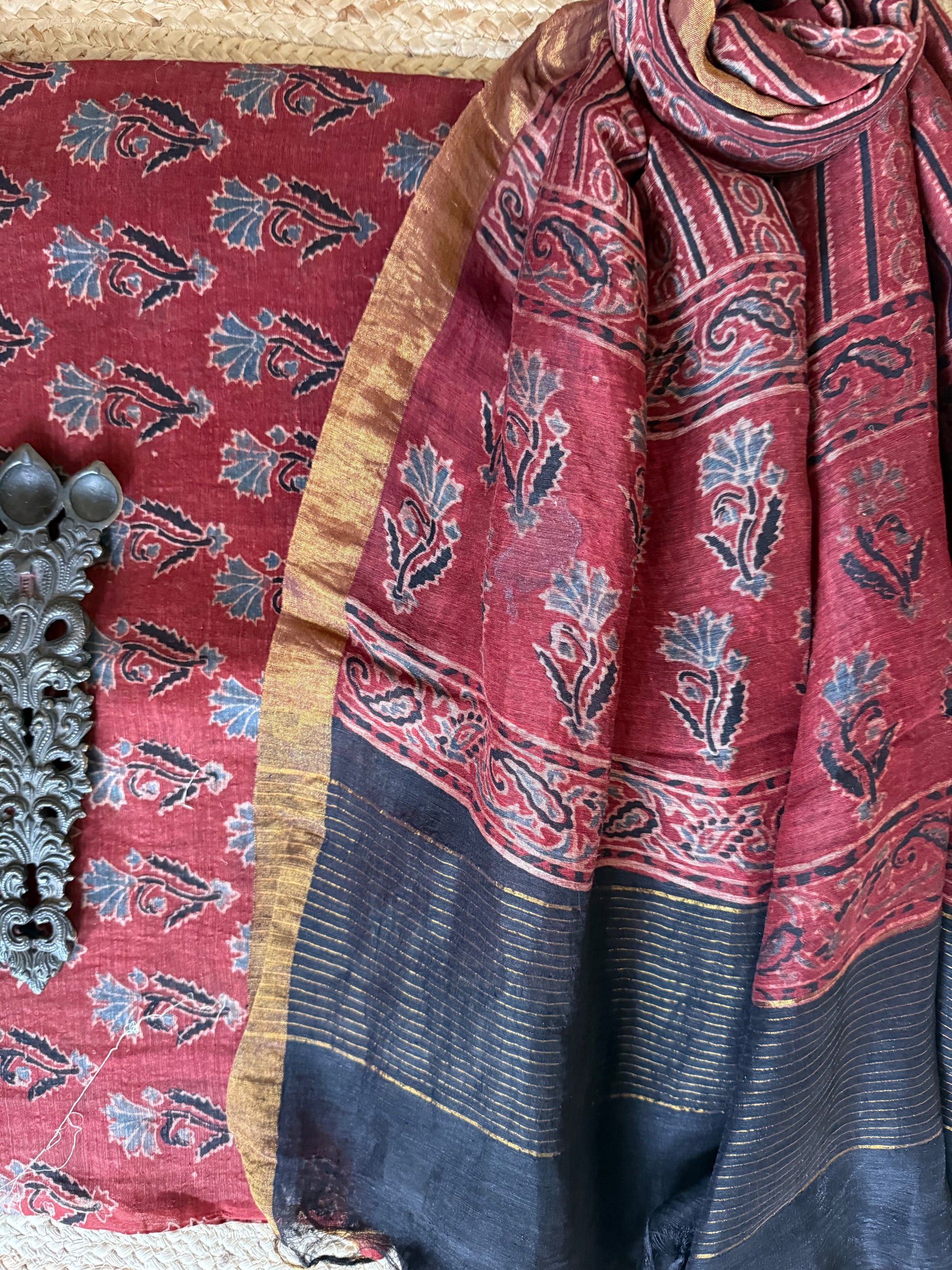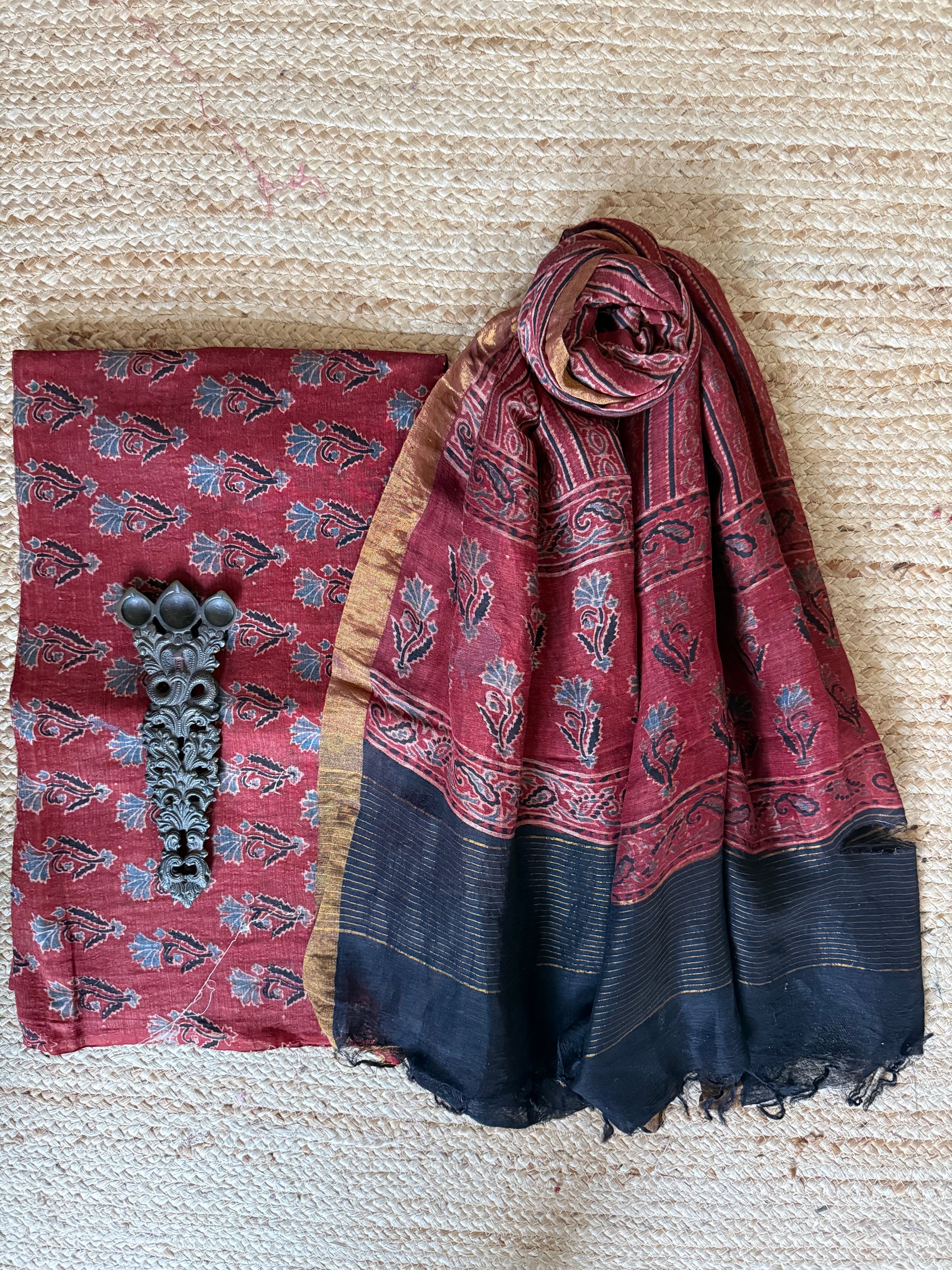 MAROON AJRAKH LINEN SILK HANDBLOCK SUIT SET