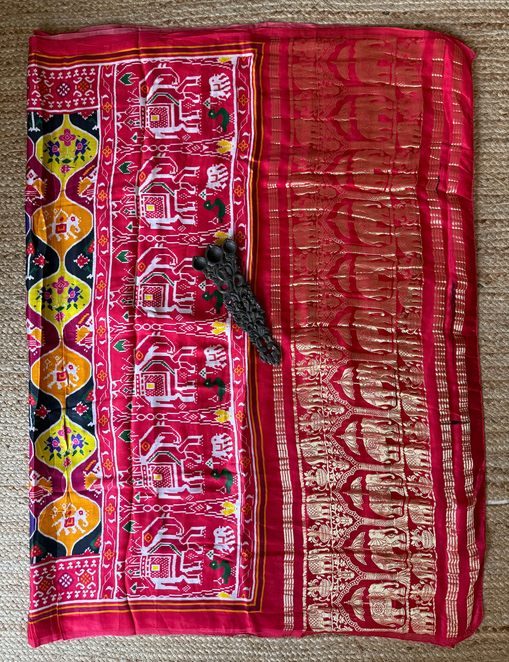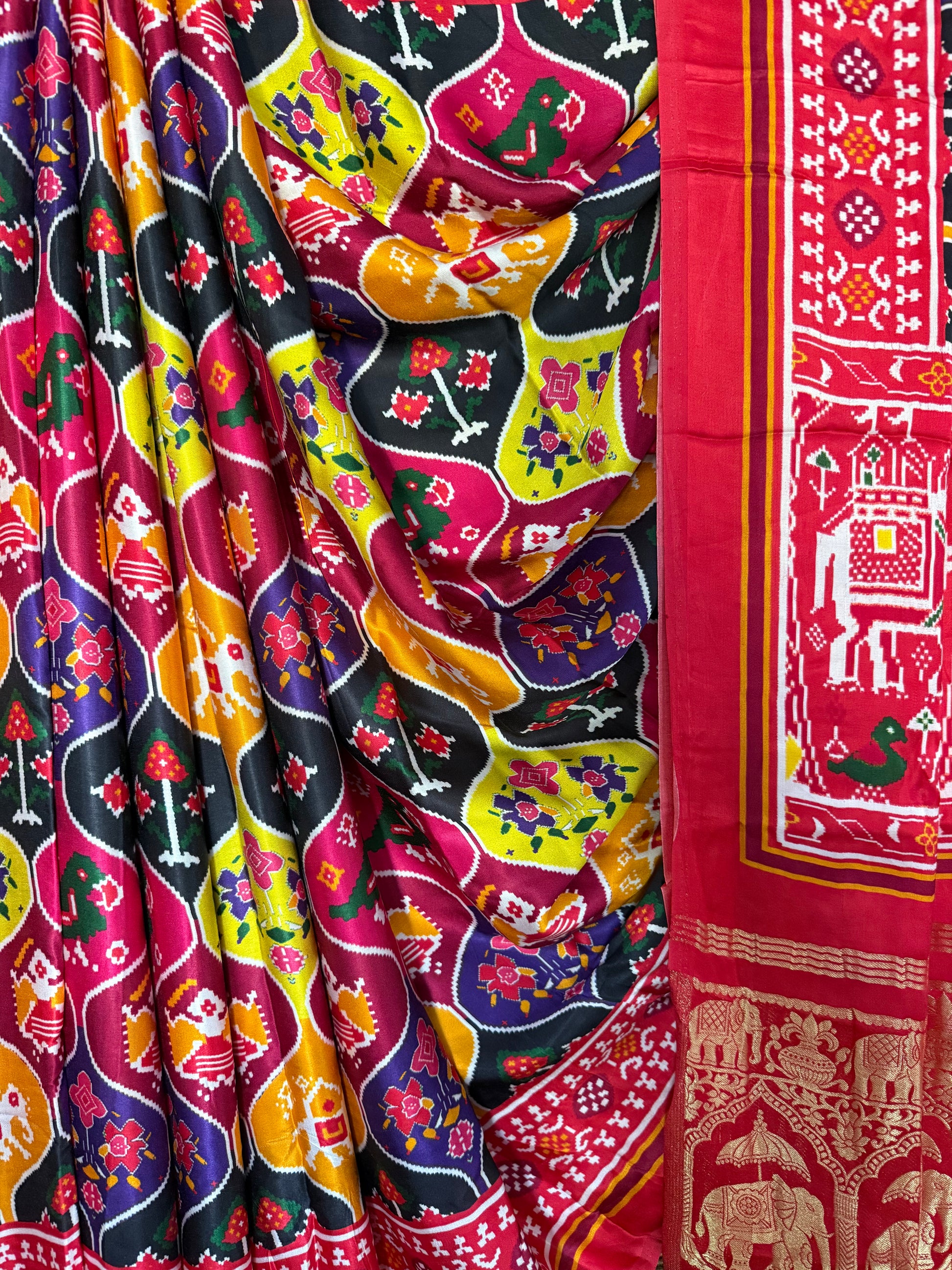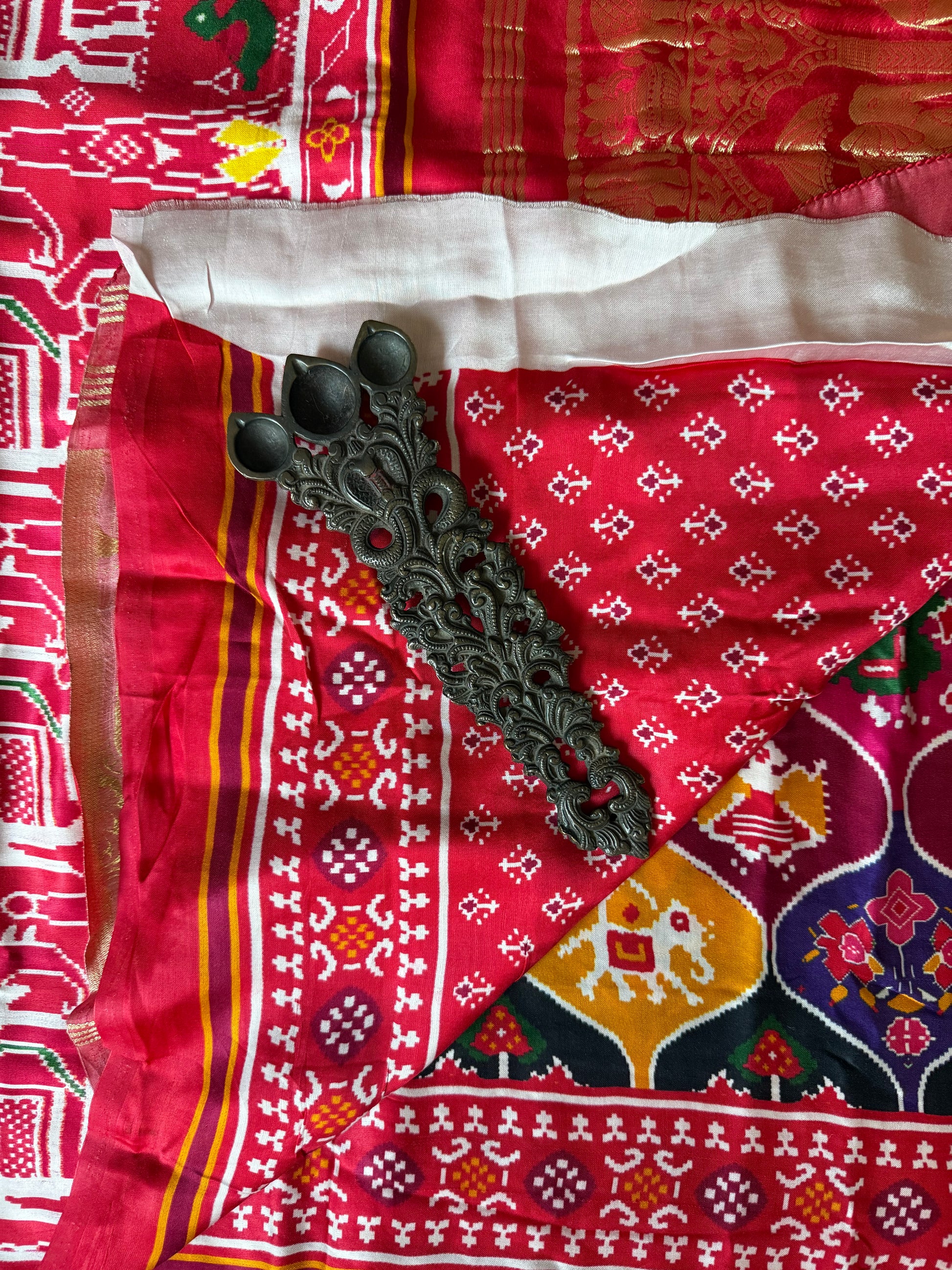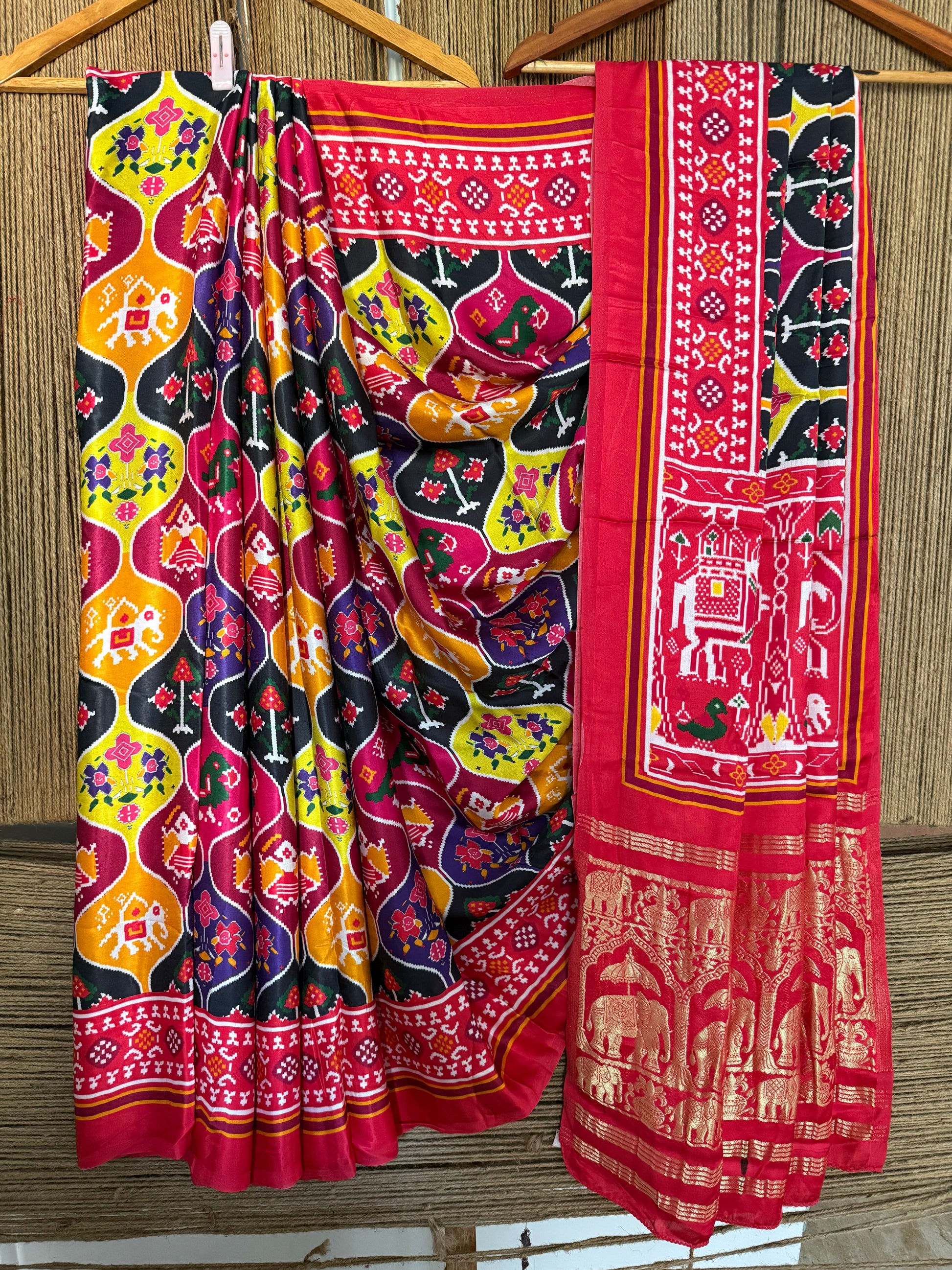RED MULTICOLOUR MODAL SILK PATOLA SARI WITH ZARI BORDER