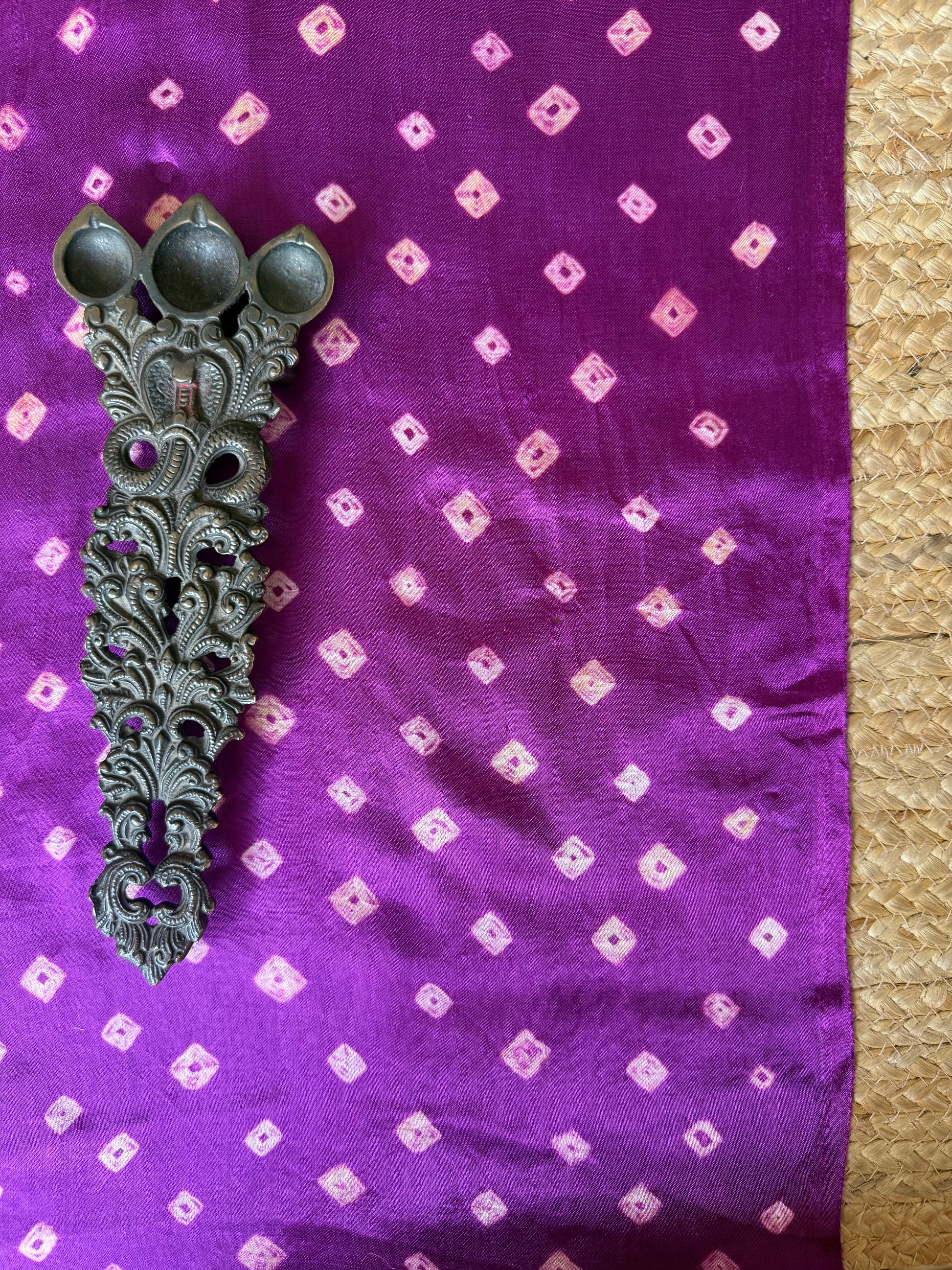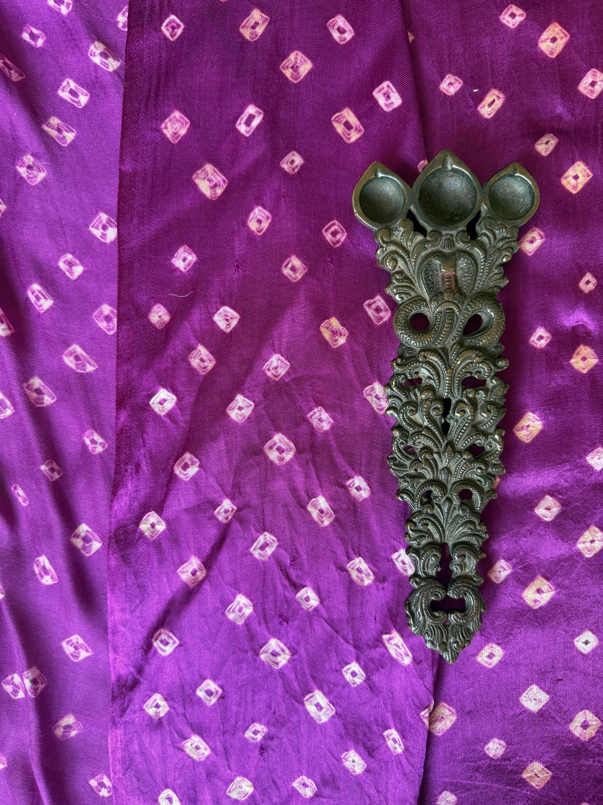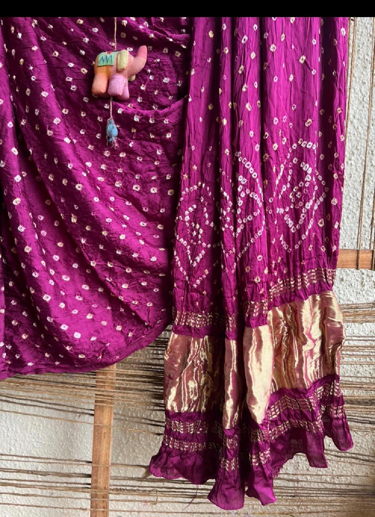 magenta purple modal silk bandhani handknotted zari woven sari with blouse piece