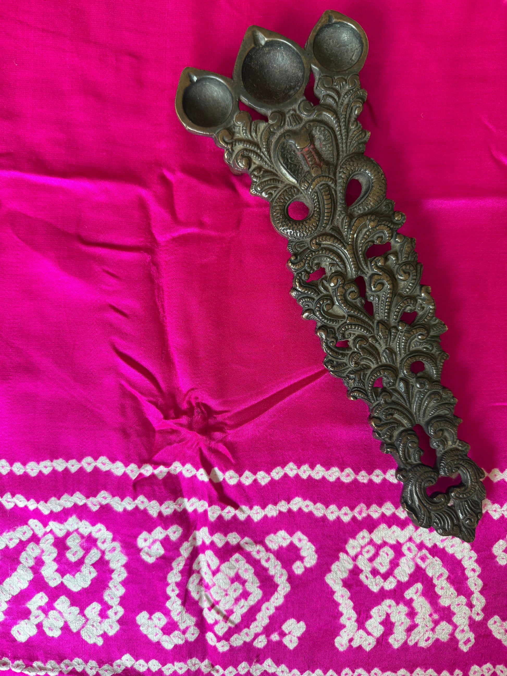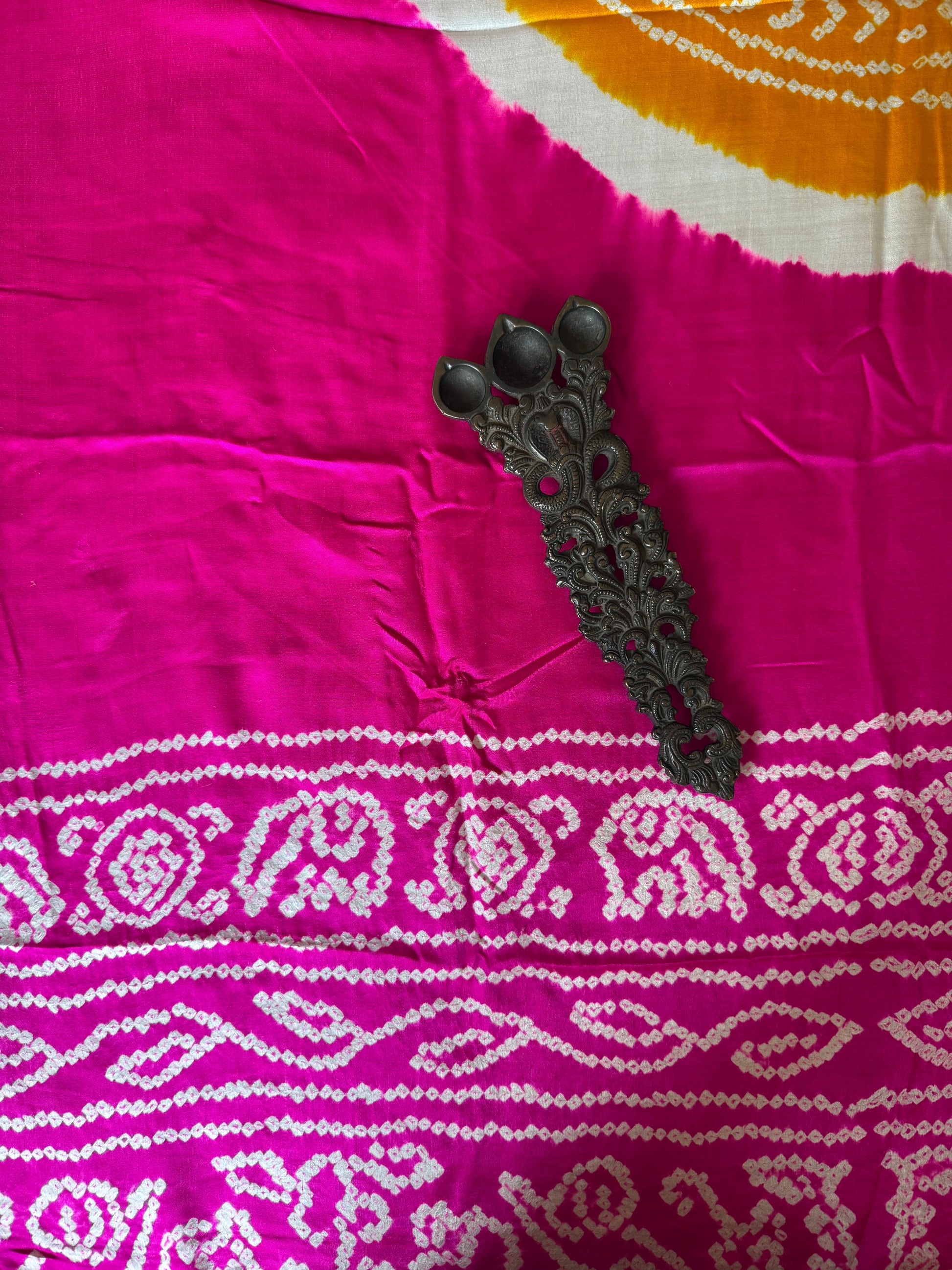 PINK & YELLOW GAJJI SILK RAI BANDHANI CHAKRA THEME GAJJI SARI