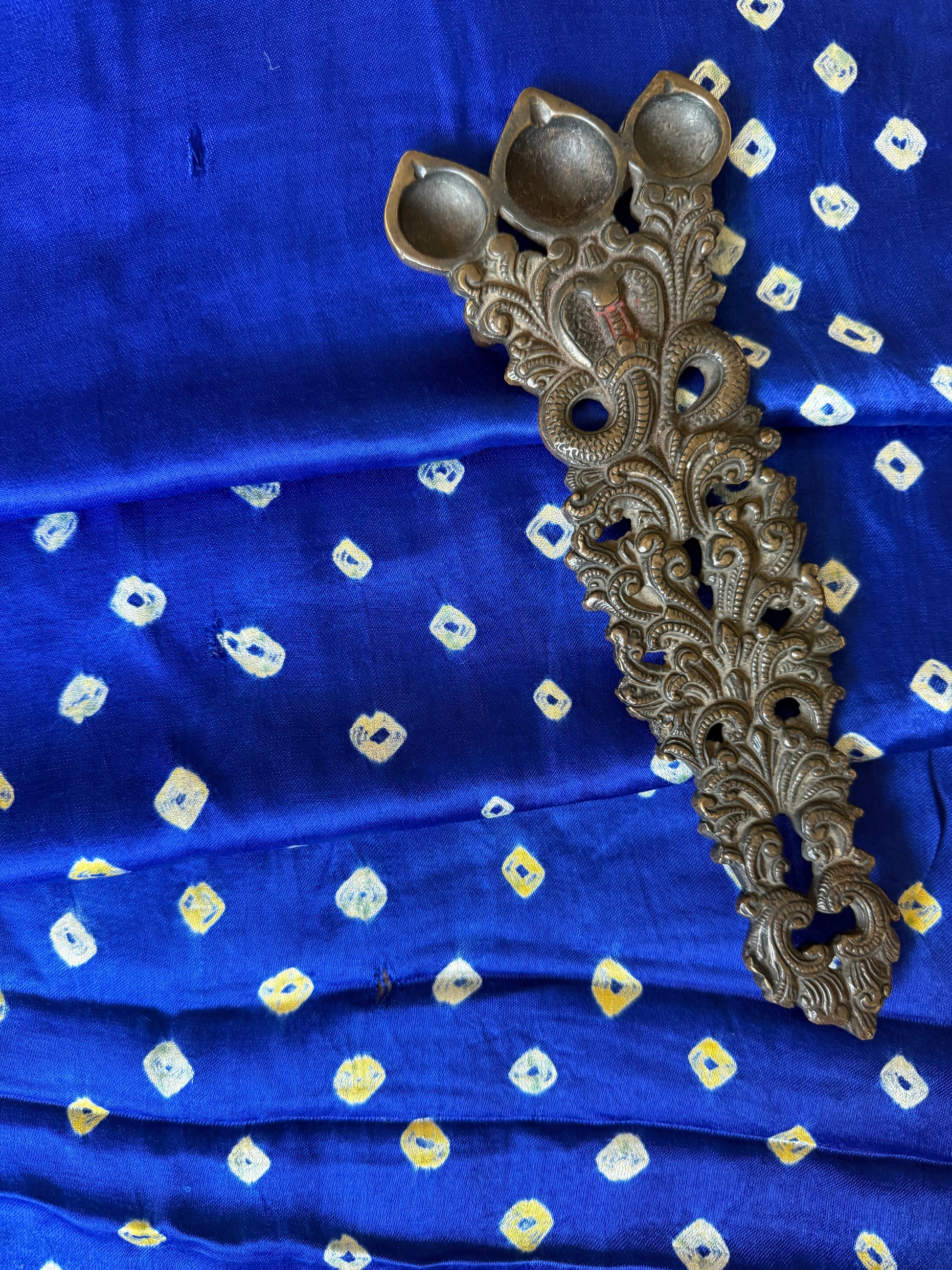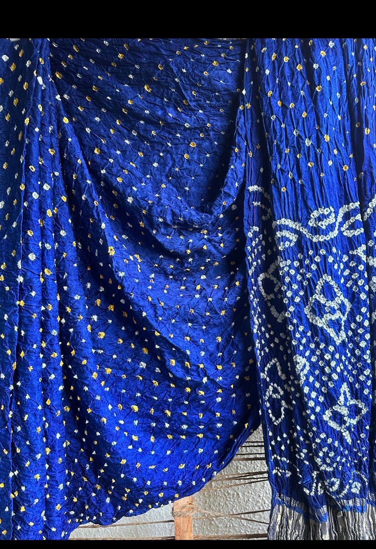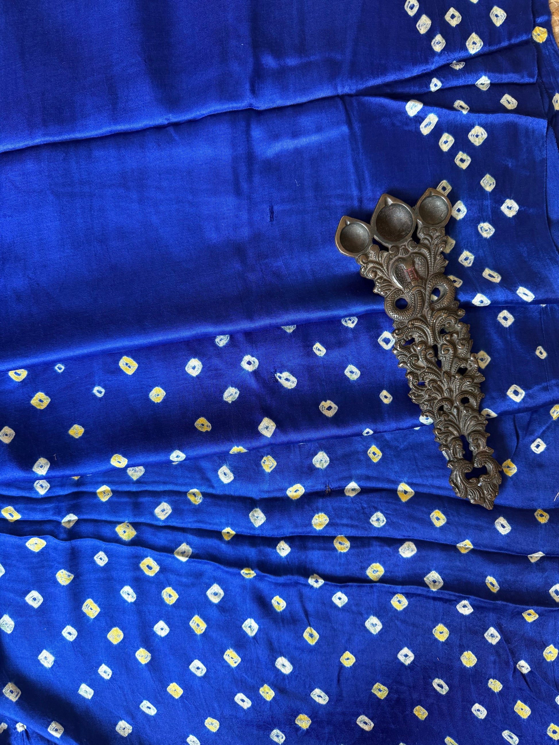 ROYAL BLUE MODAL SILK BANDHANI HANDKNOTTED ZARI WOVEN SARI WITH BLOUSE PIECE
