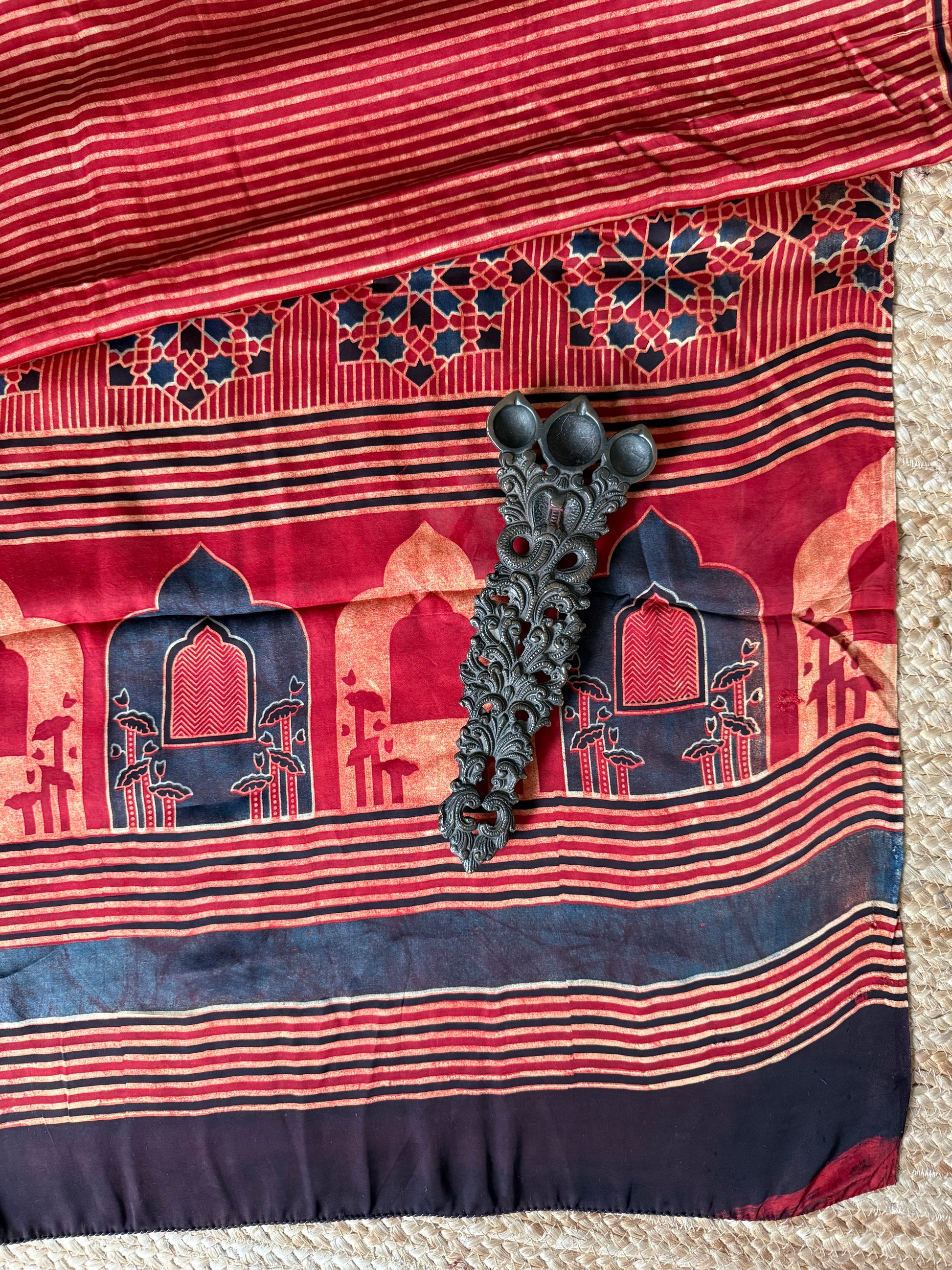 RED MAROON CONTEMPRORAY AJRAKH MODAL SILK SARI