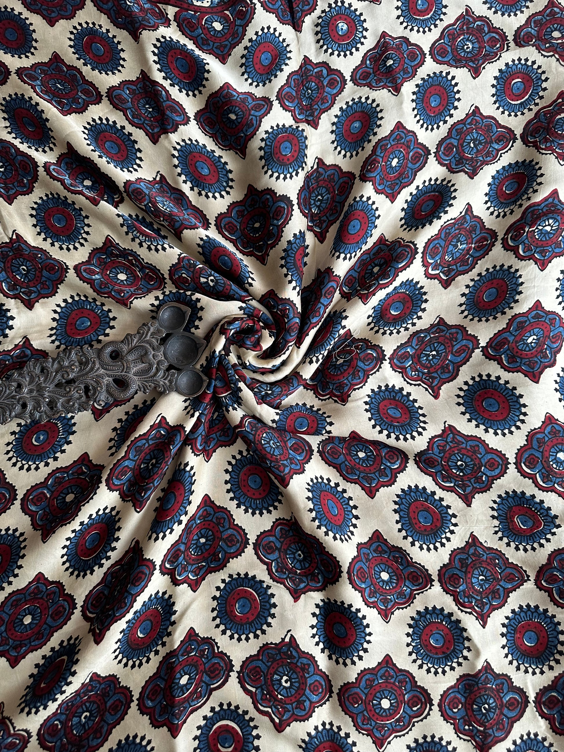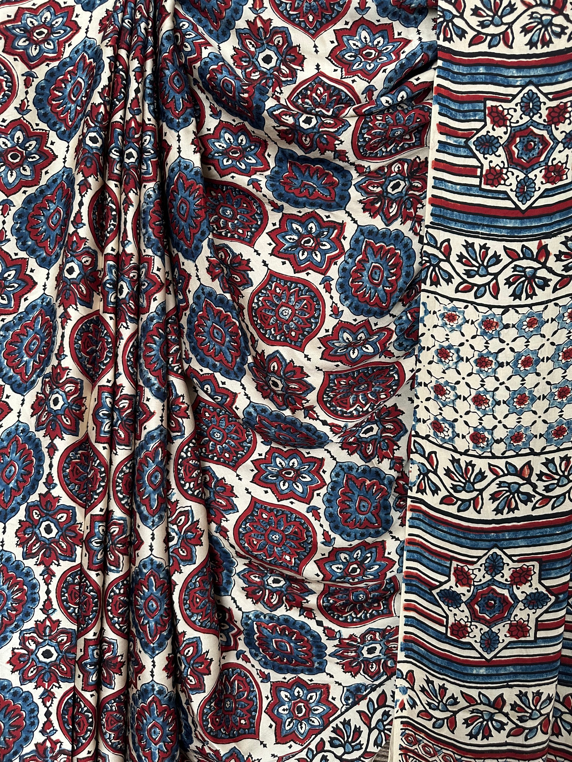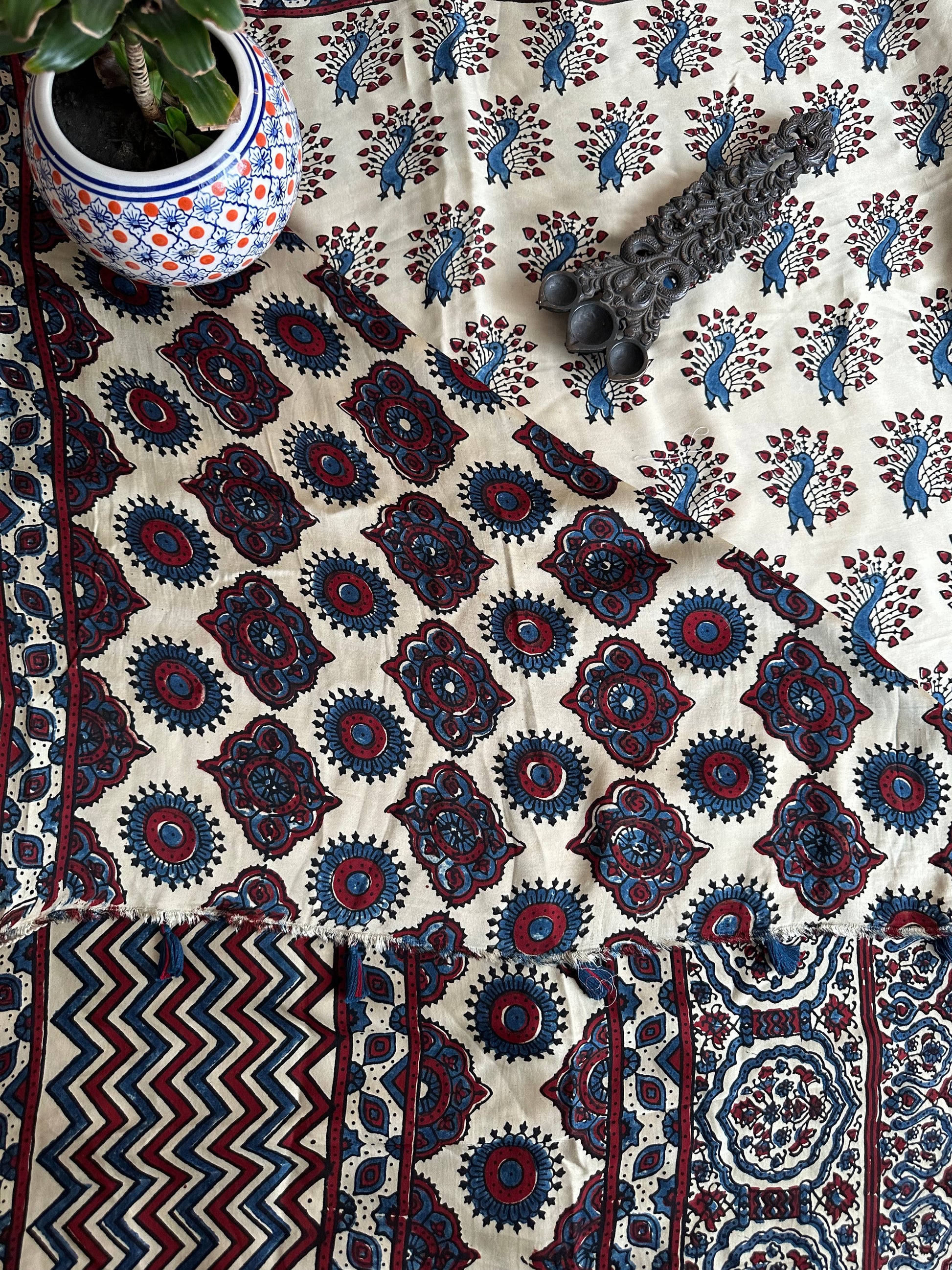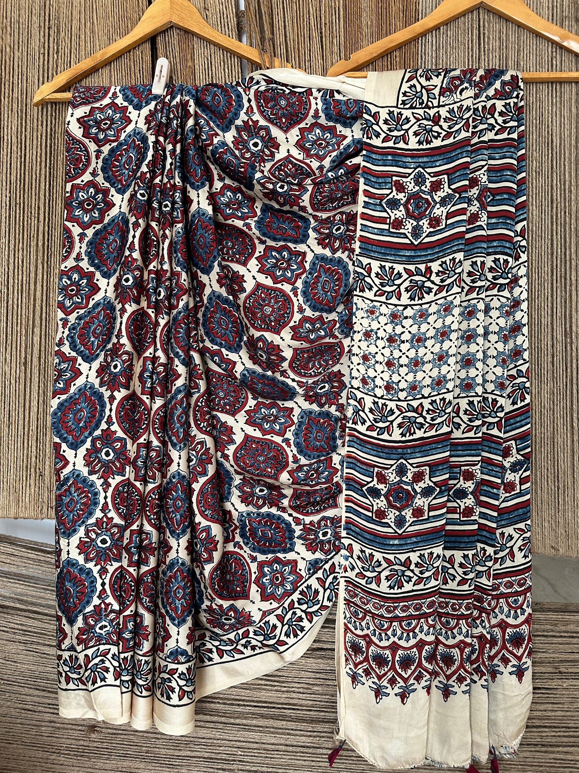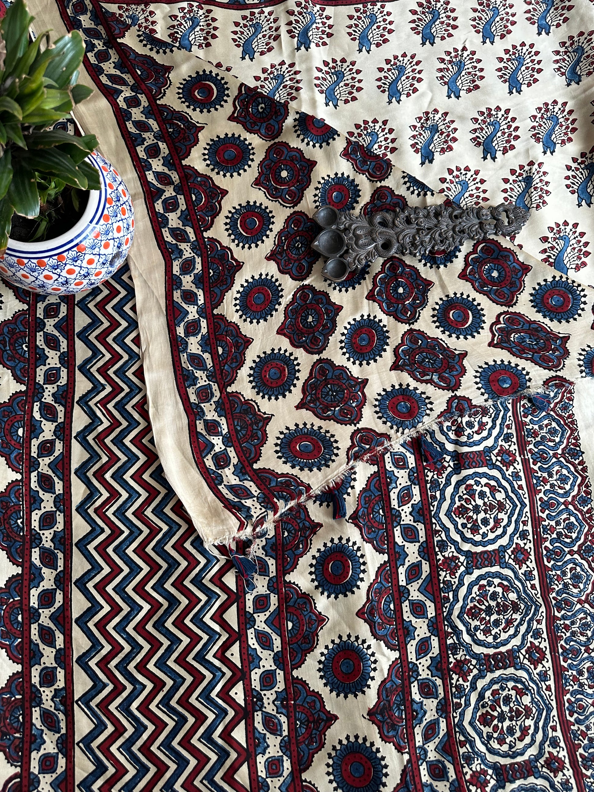 BEIGE BADAM BUTTA AJRAKH MODAL SILK SARI WITH BORDER