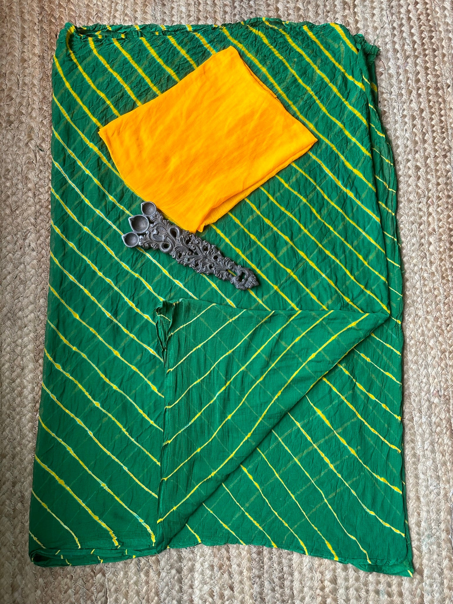 bottle green multi lehariya handcrafted saree with have its own contrast blouse piece (80 cms)