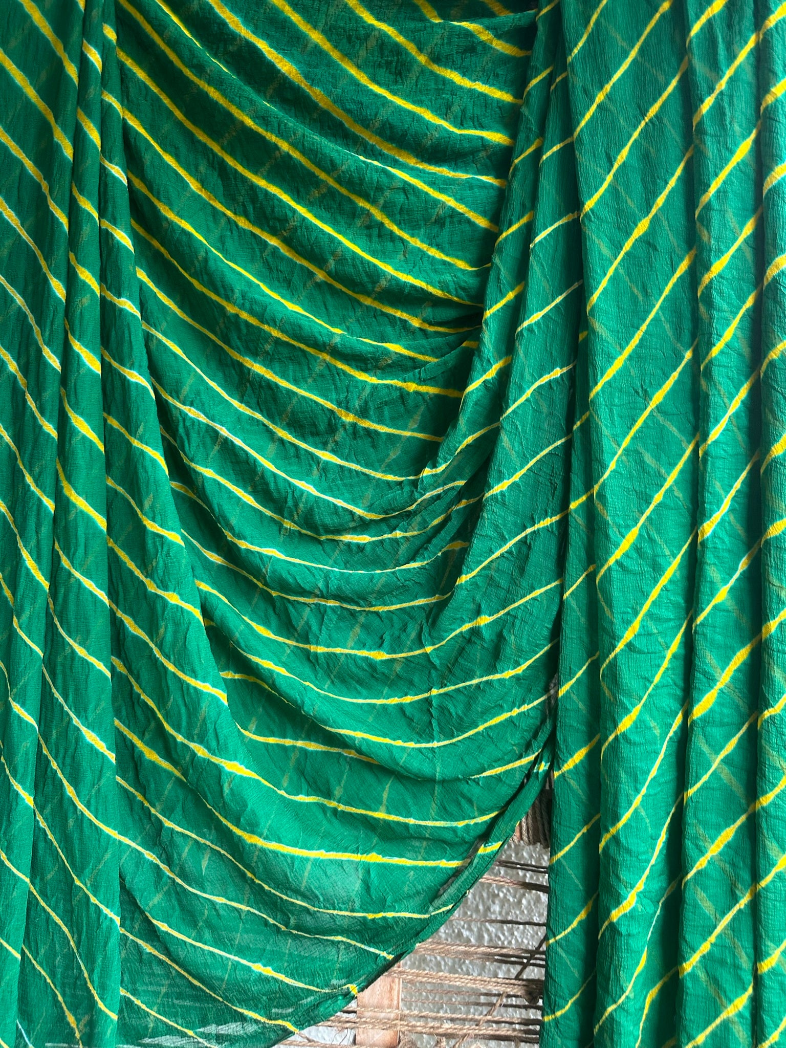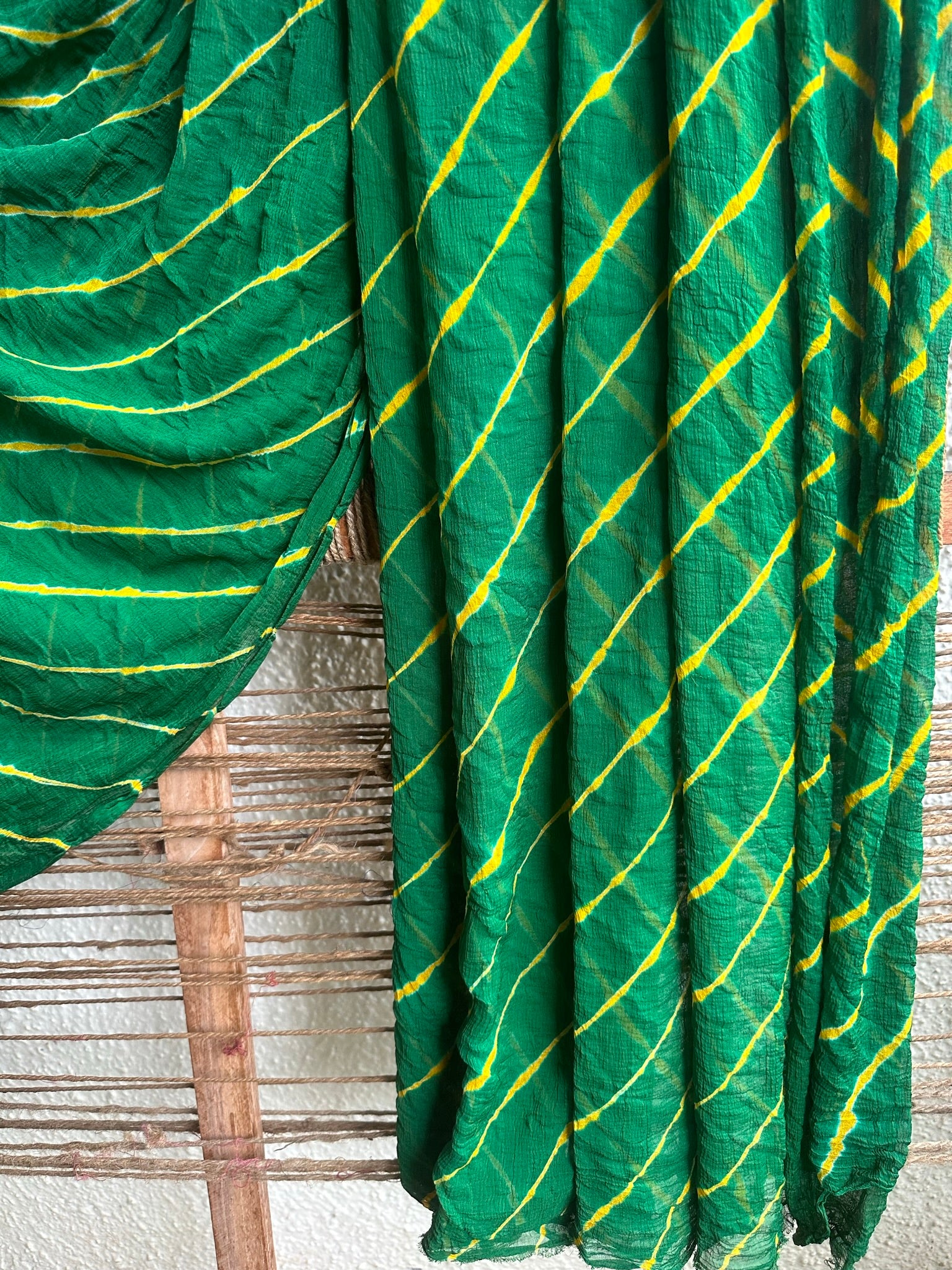 BOTTLE GREEN MULTI LEHERIYA HANDCRAFTEDCHIFFON SARI CL-52