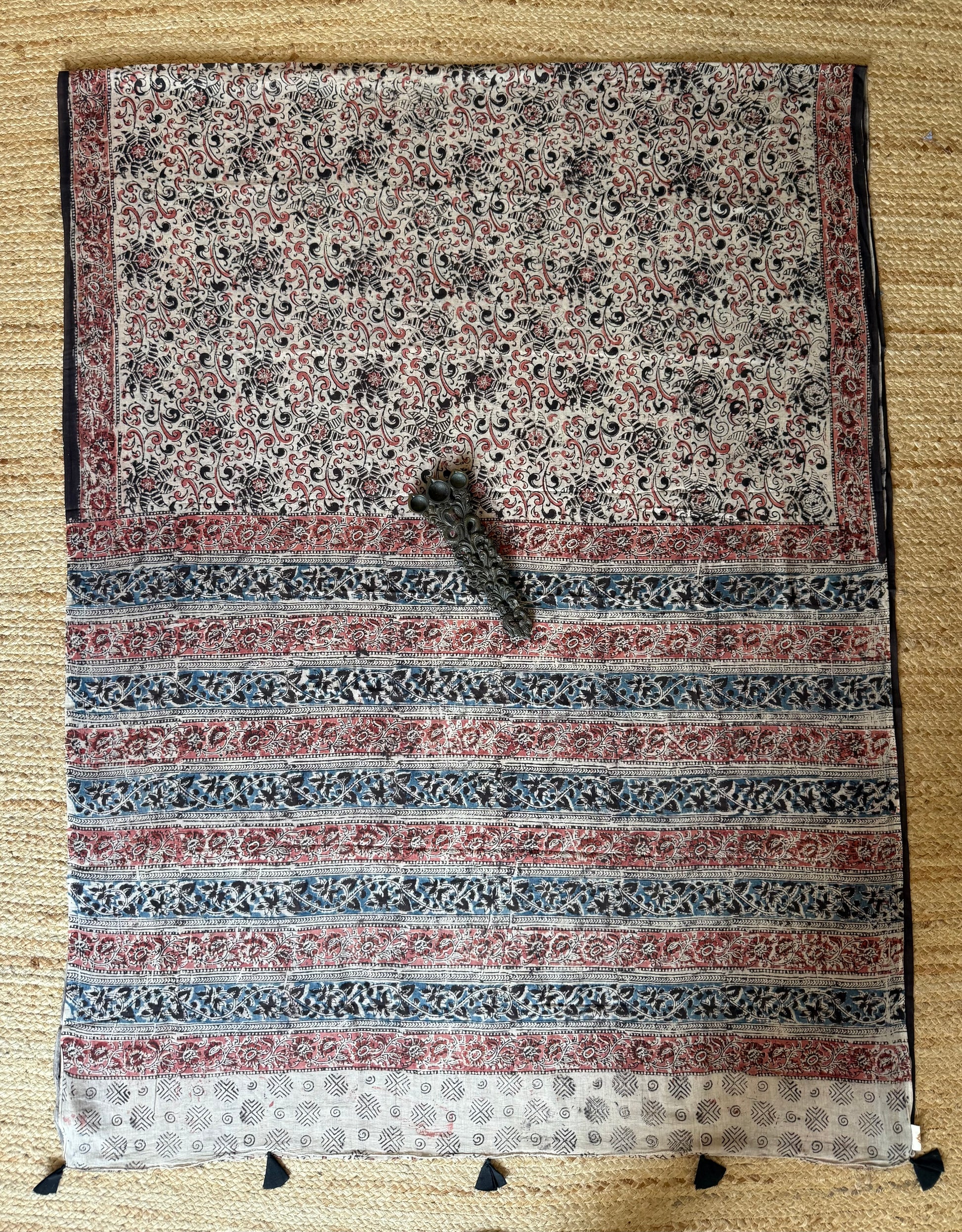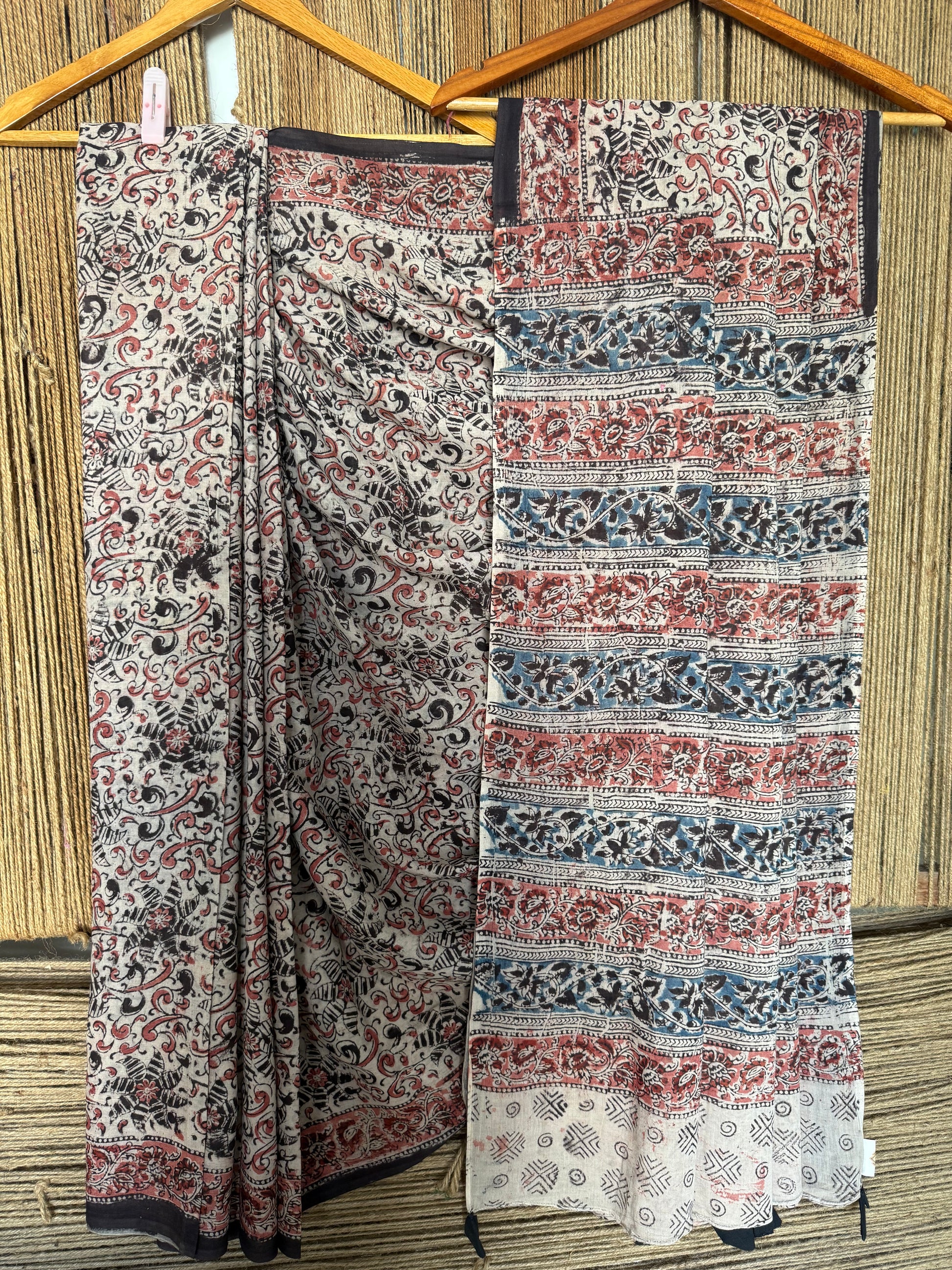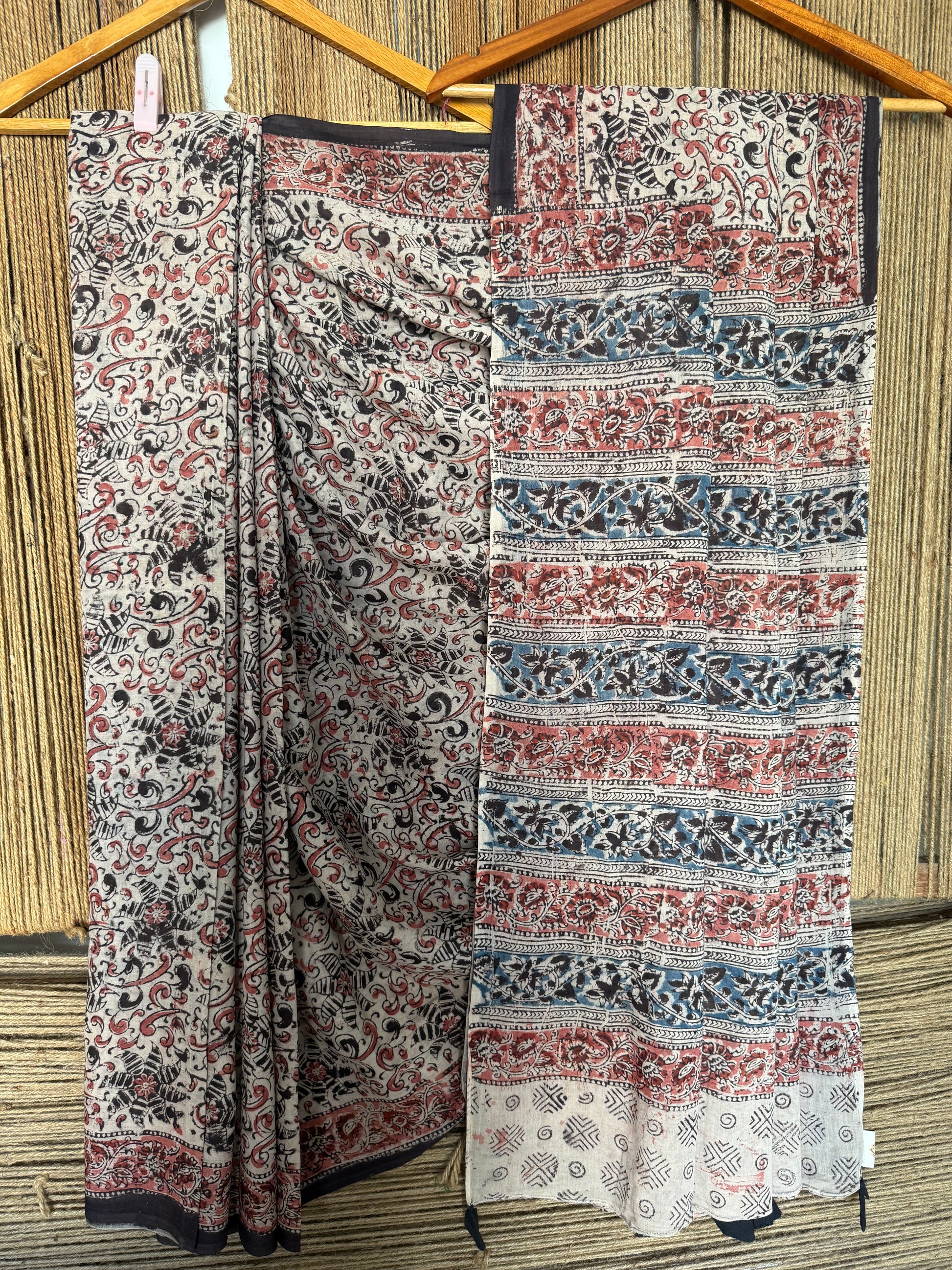 BEIGE KALAMKARI MULL COTTON AJRAKH HAND CRAFTED SARI