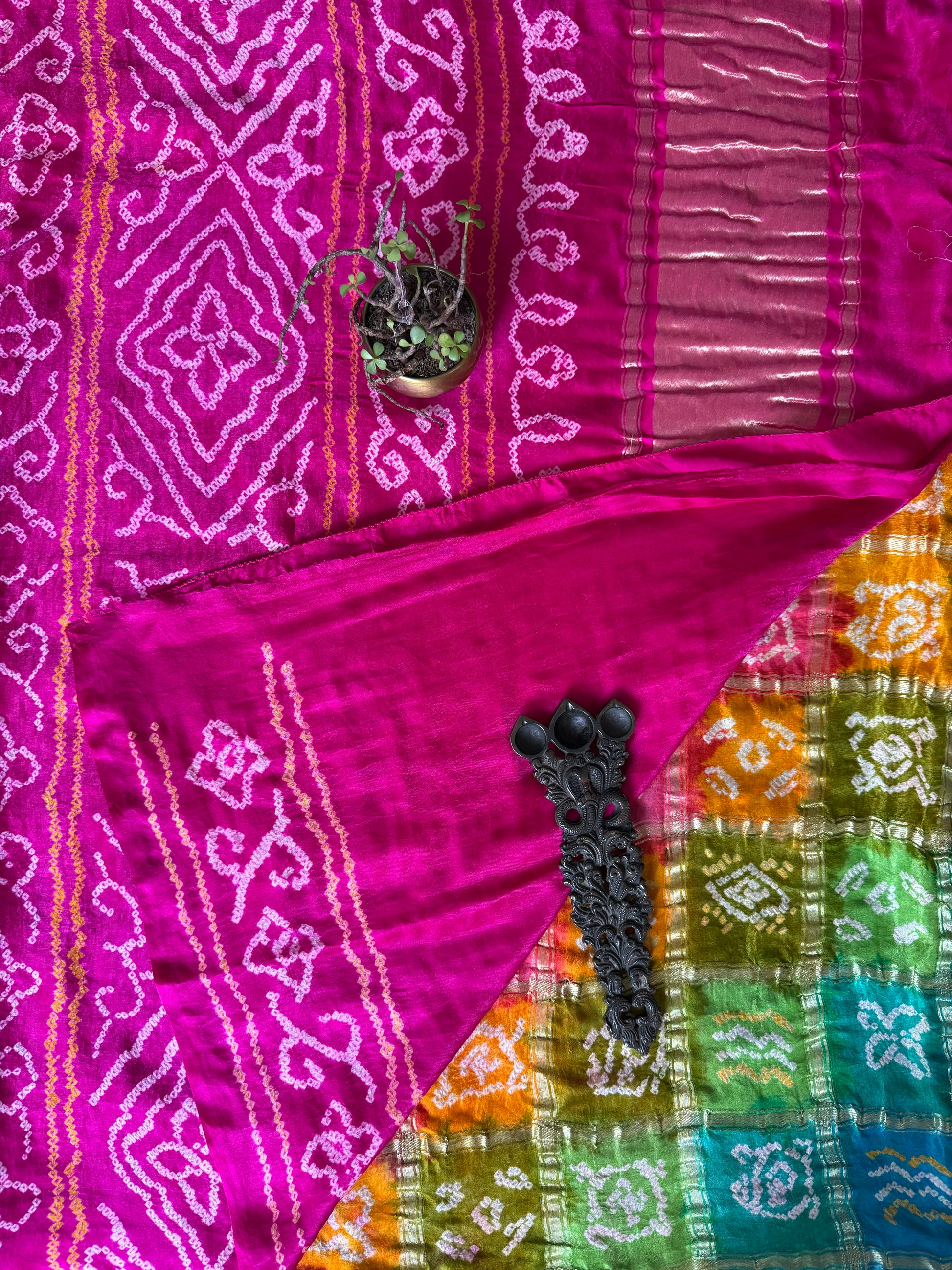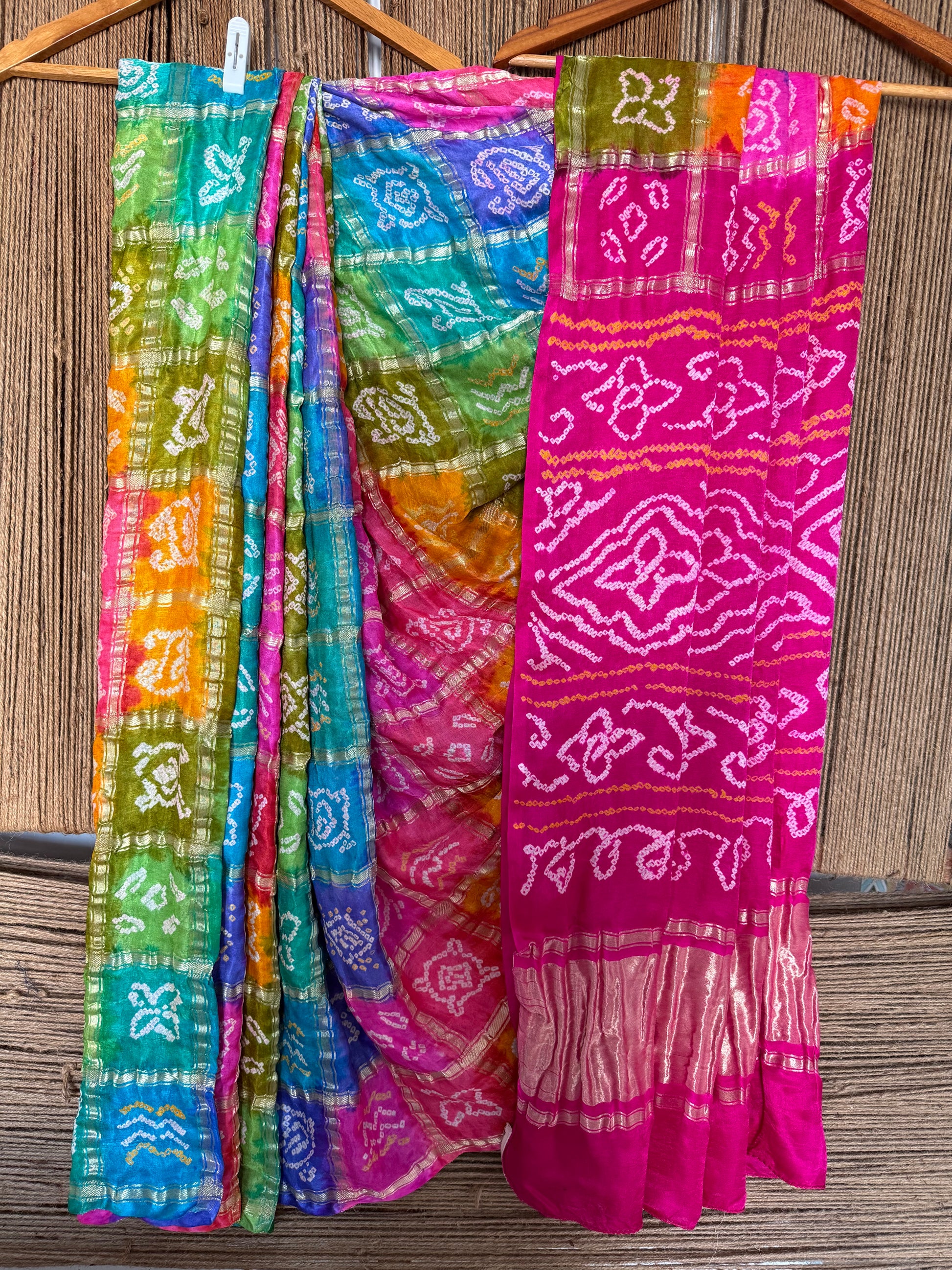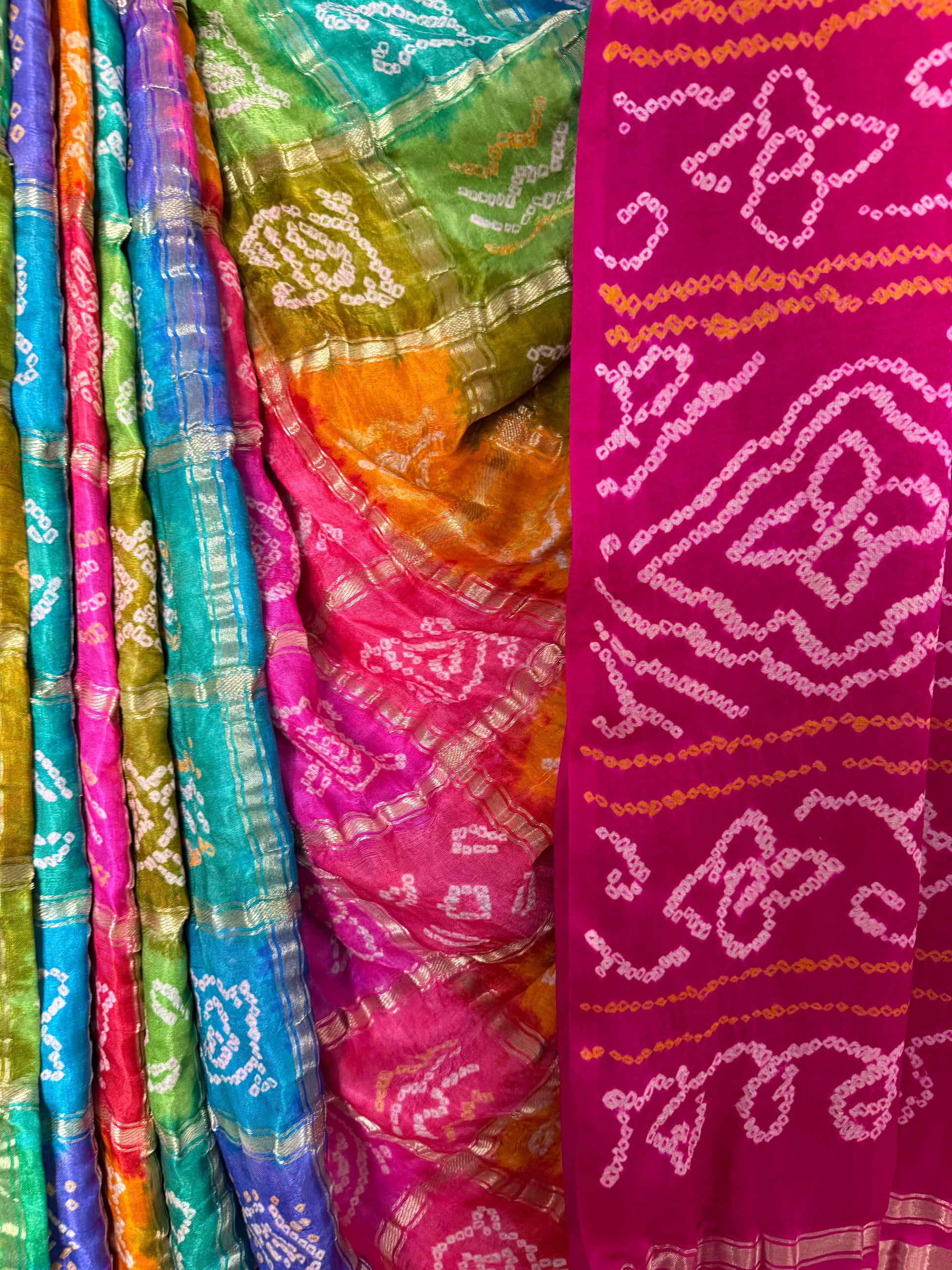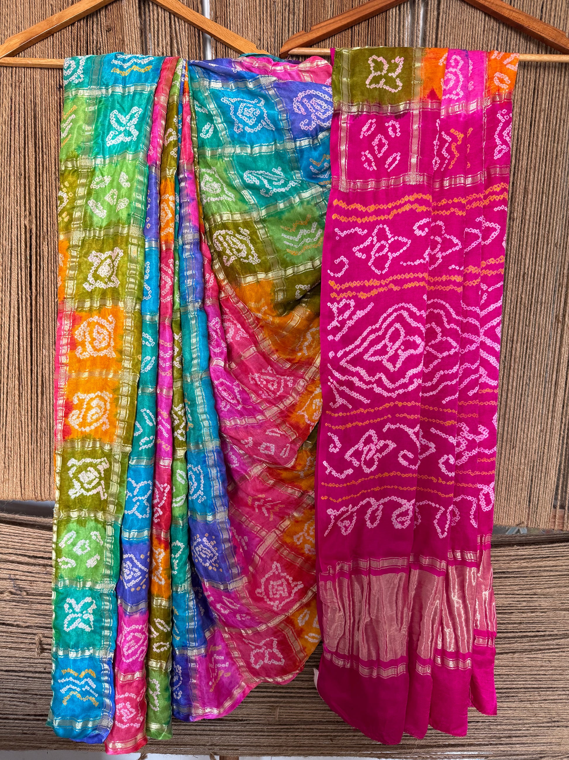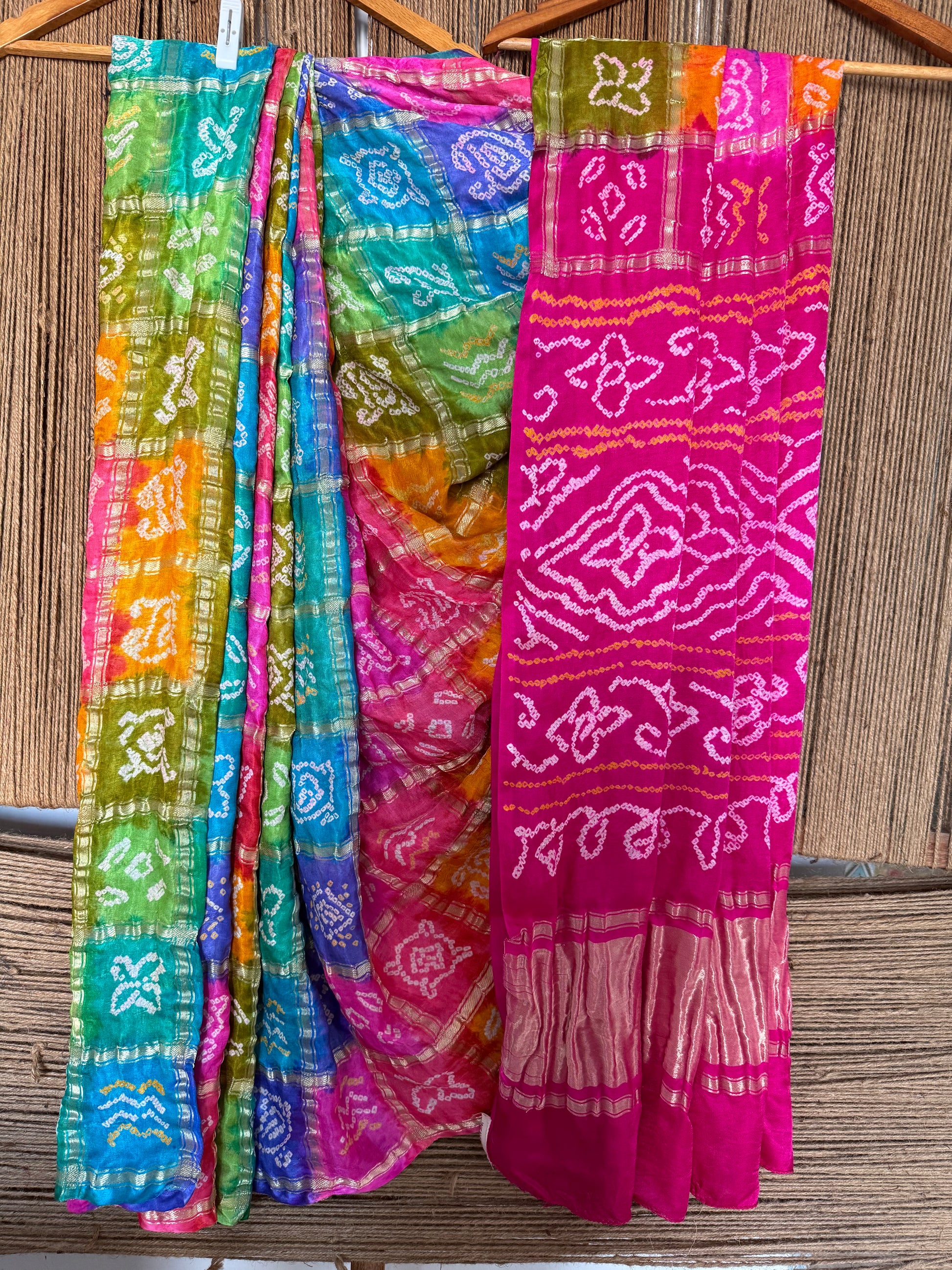 MULTI COLOUR & PINK GAJJI SILK GHARCHOLA RAI BANDHANI GAJJI SARI BS- 208