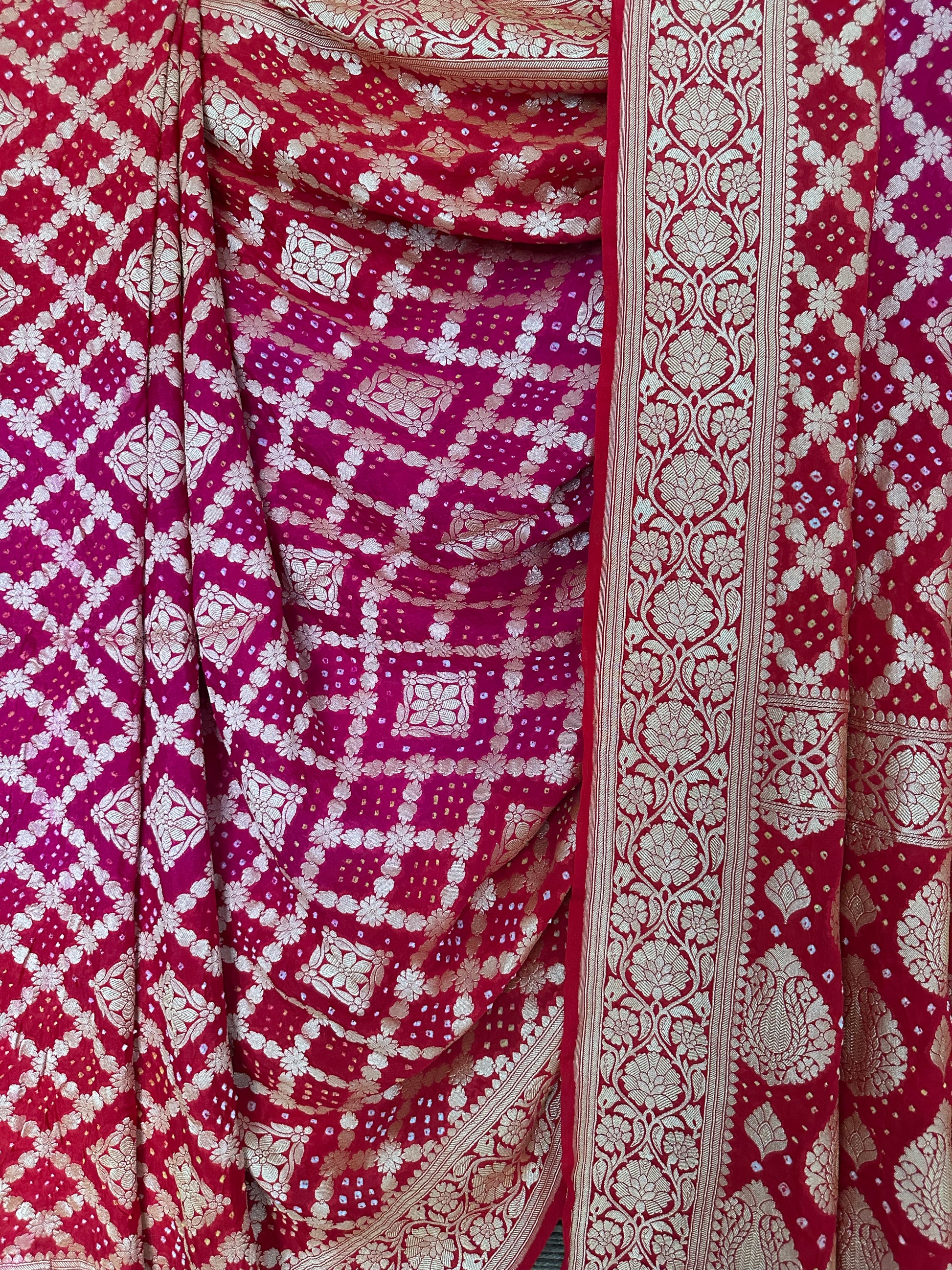 LIGHT PINK & PURPLE DUAL SHADE HANDWOVEN NEEM ZARI HANDWOVEN BAREEK BANDHANI SAREE