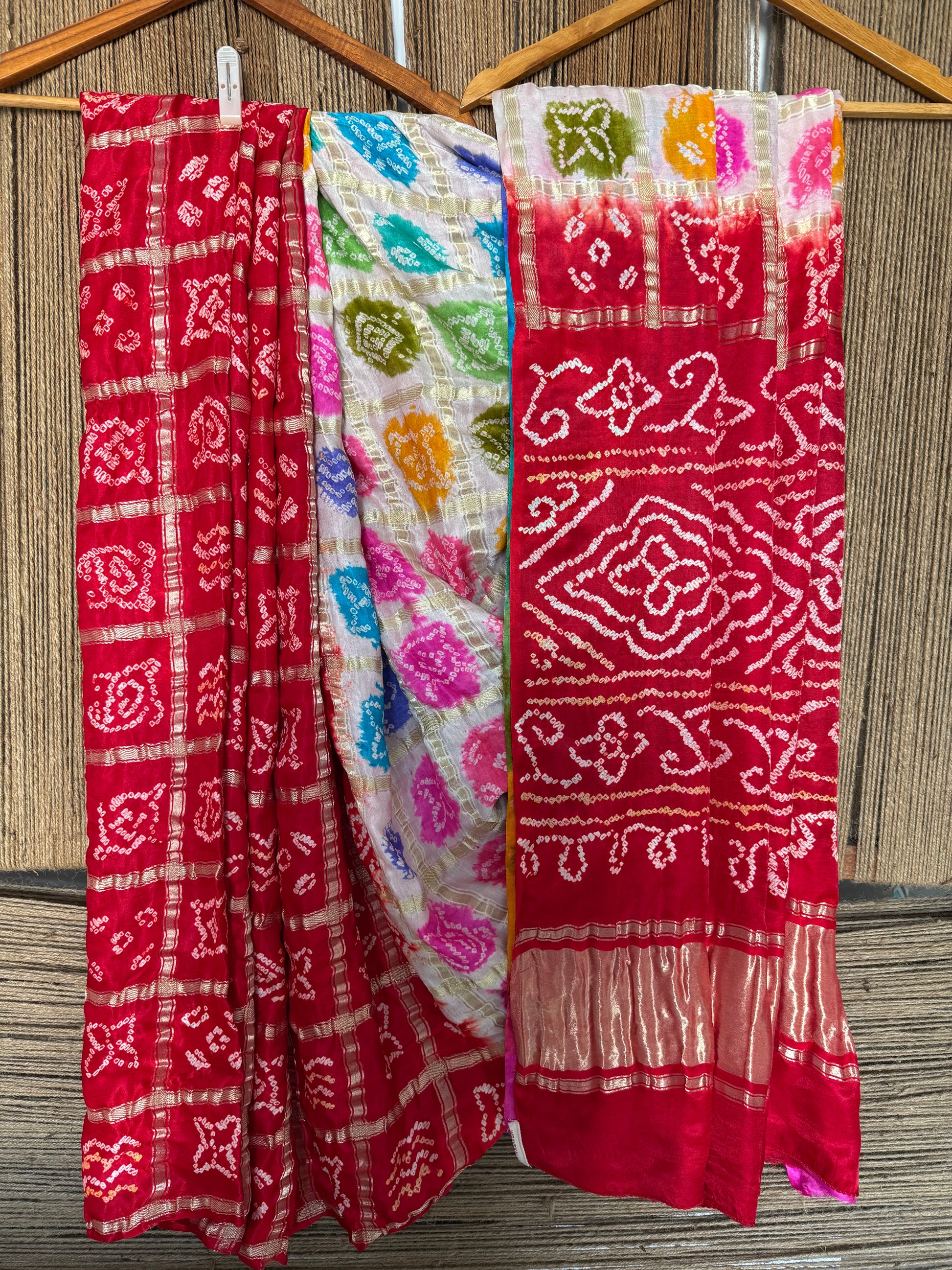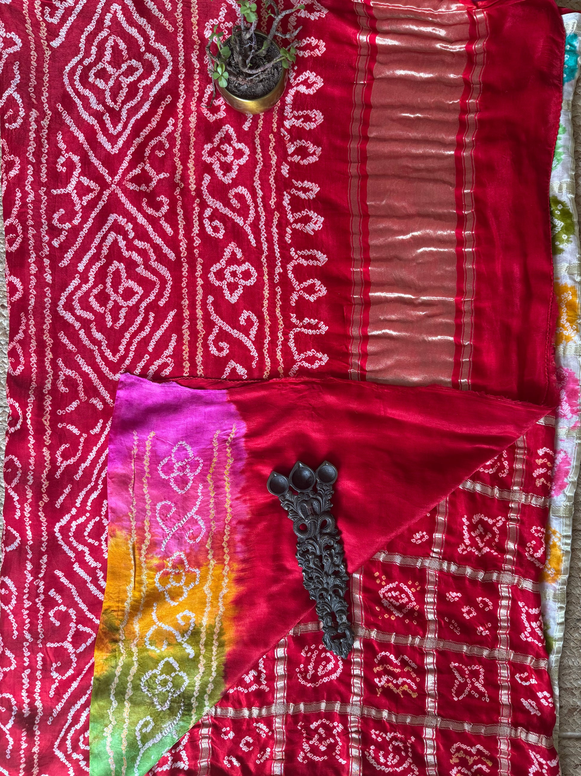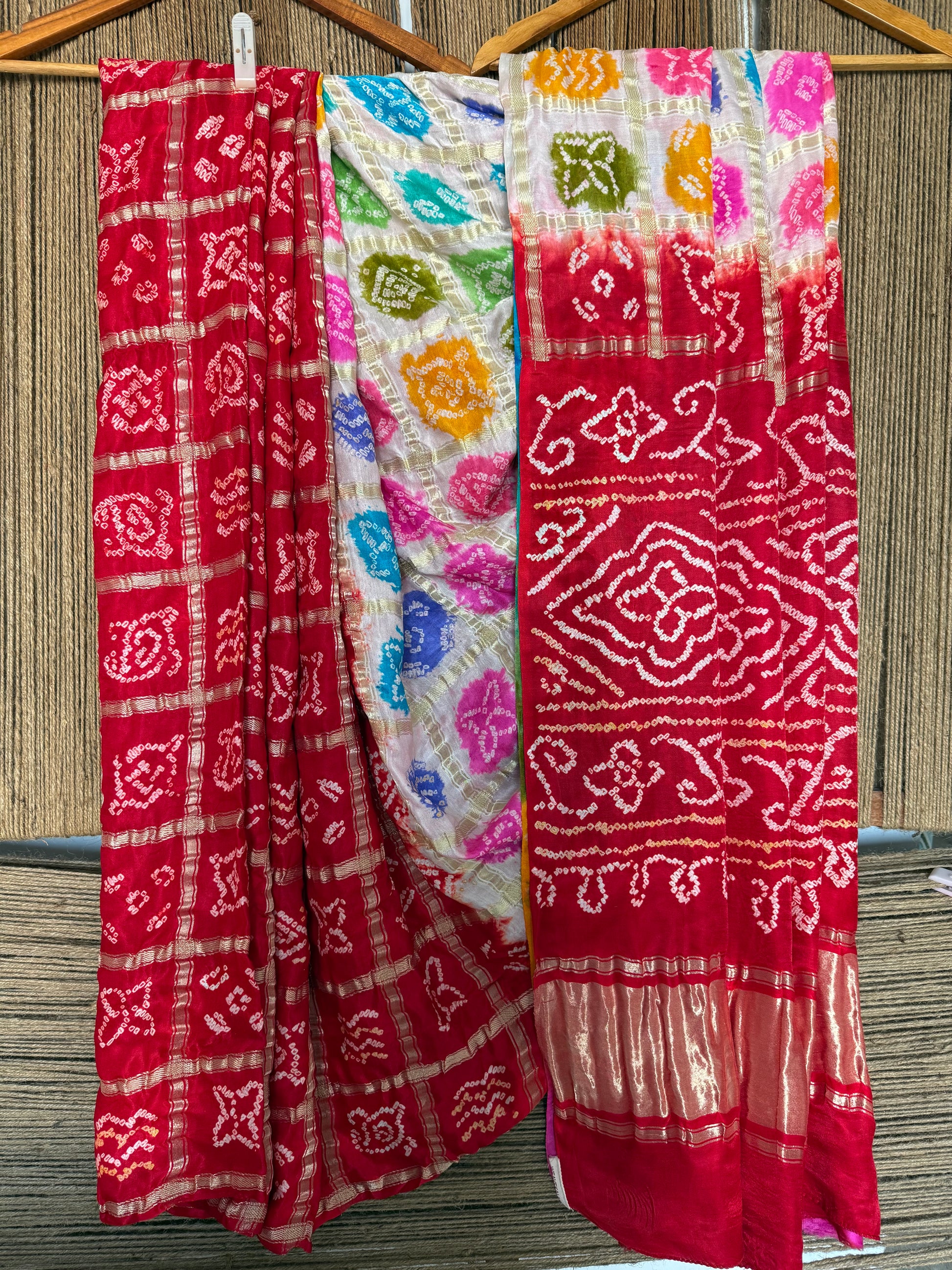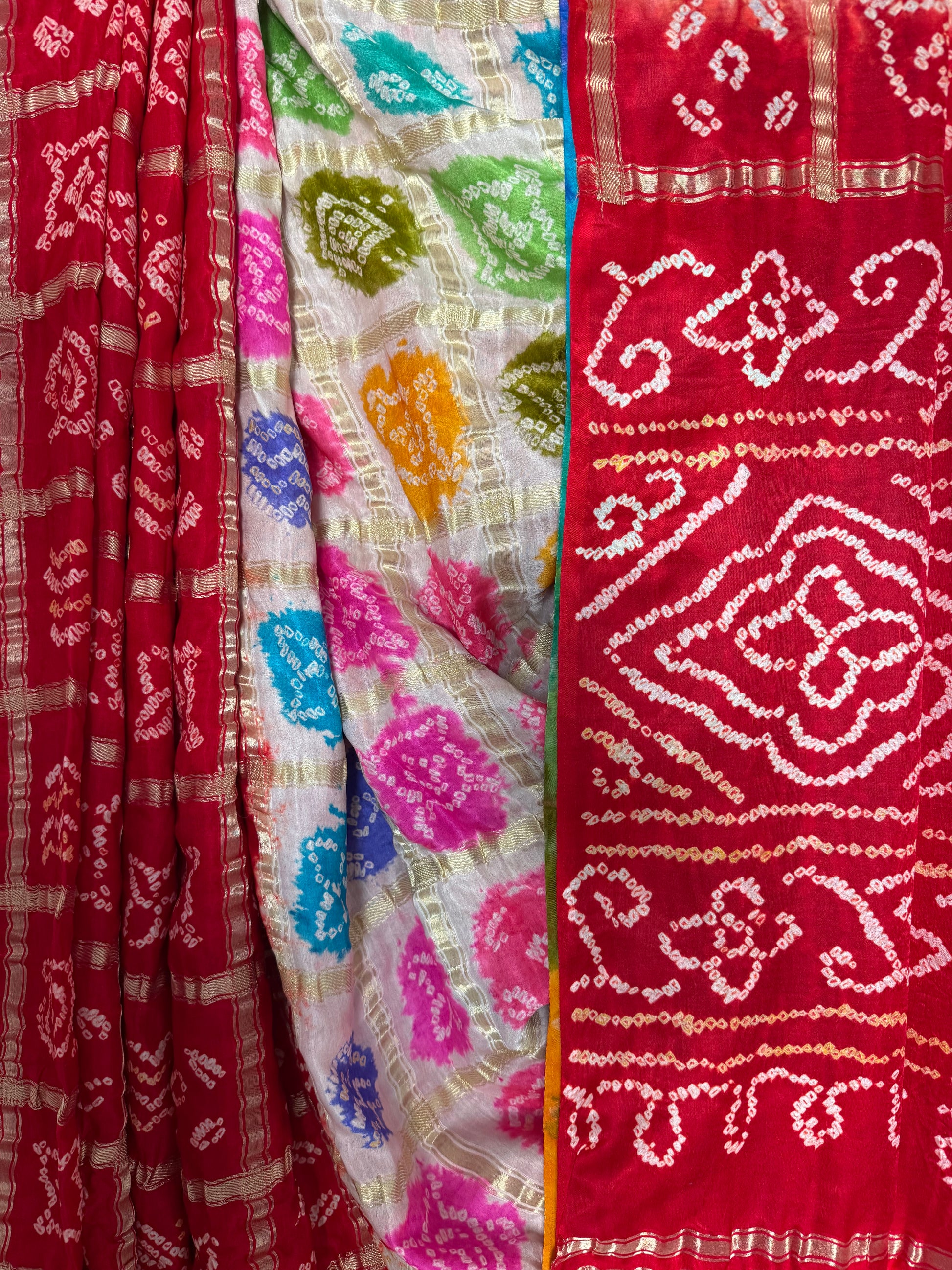 RED MULTI COLOUR GAJJI SILK GHARCHOLA RAI BANDHANI GAJJI SARI BS- 2016