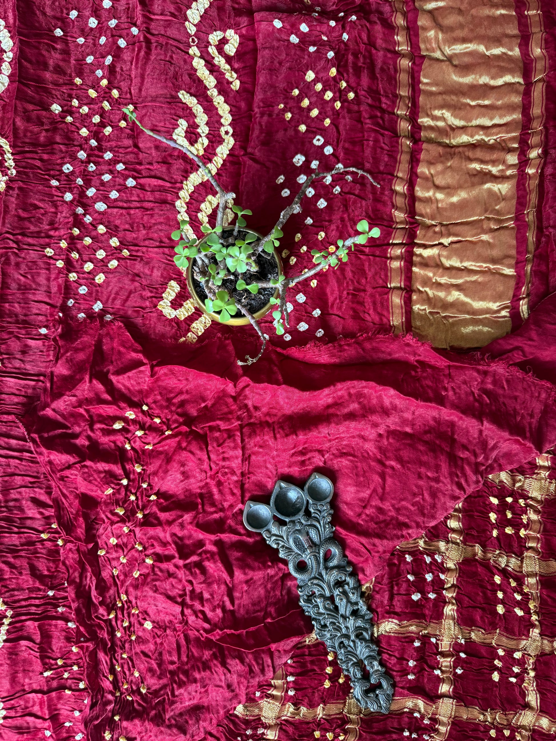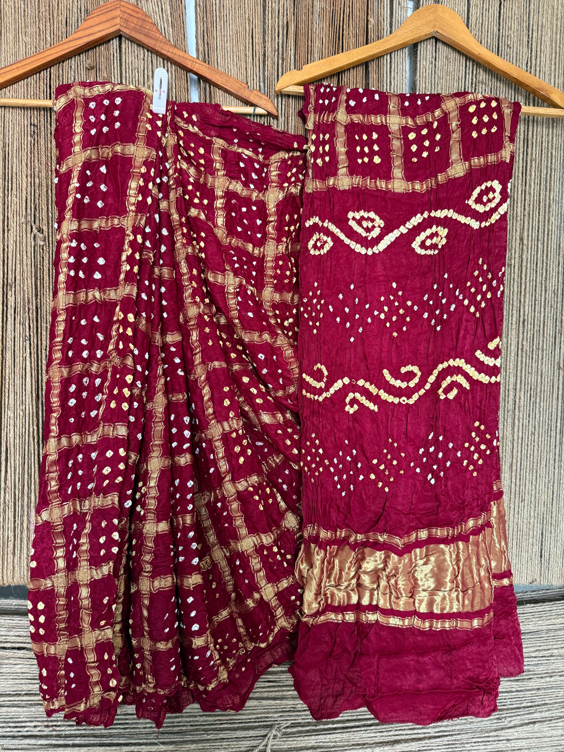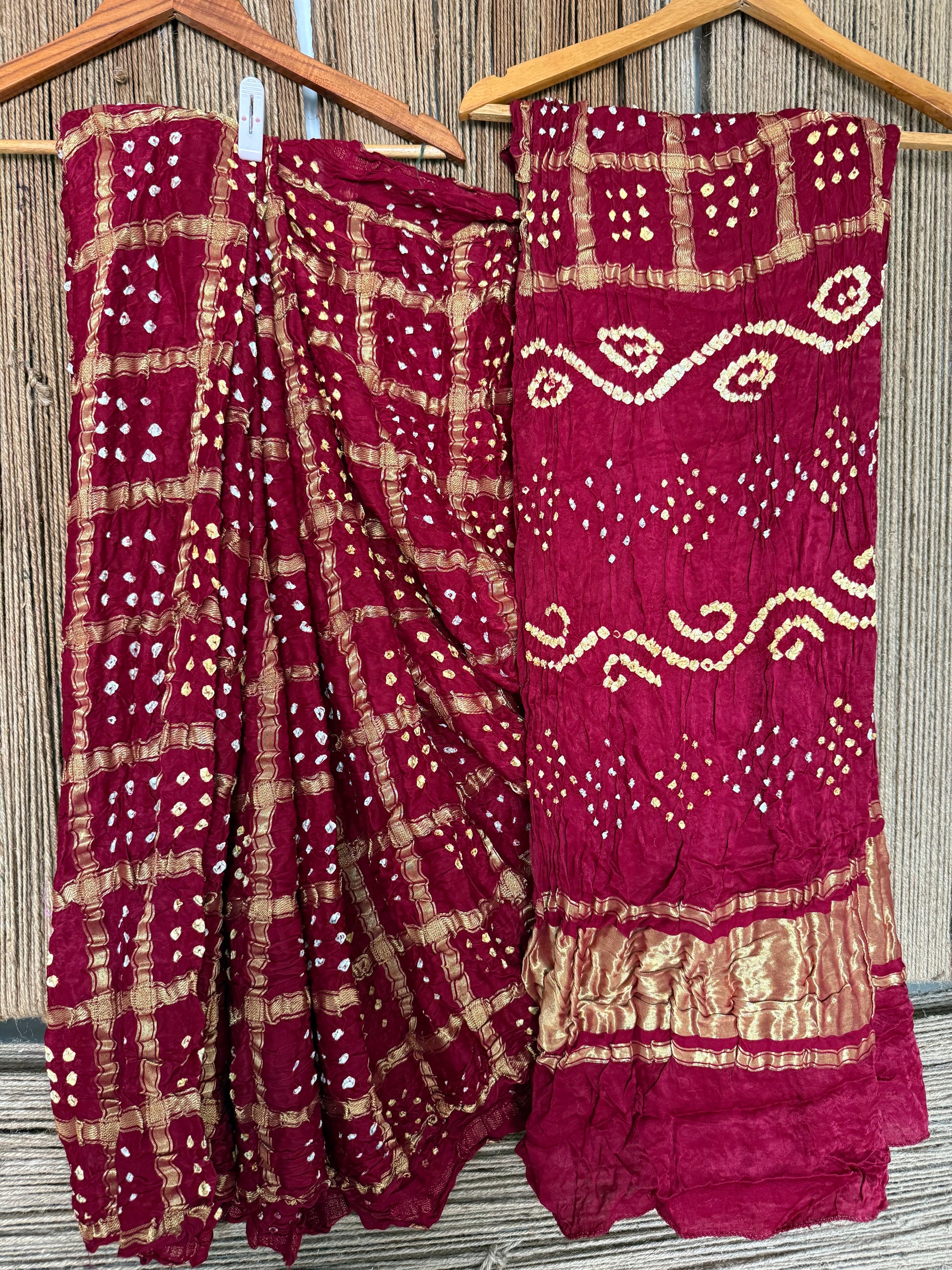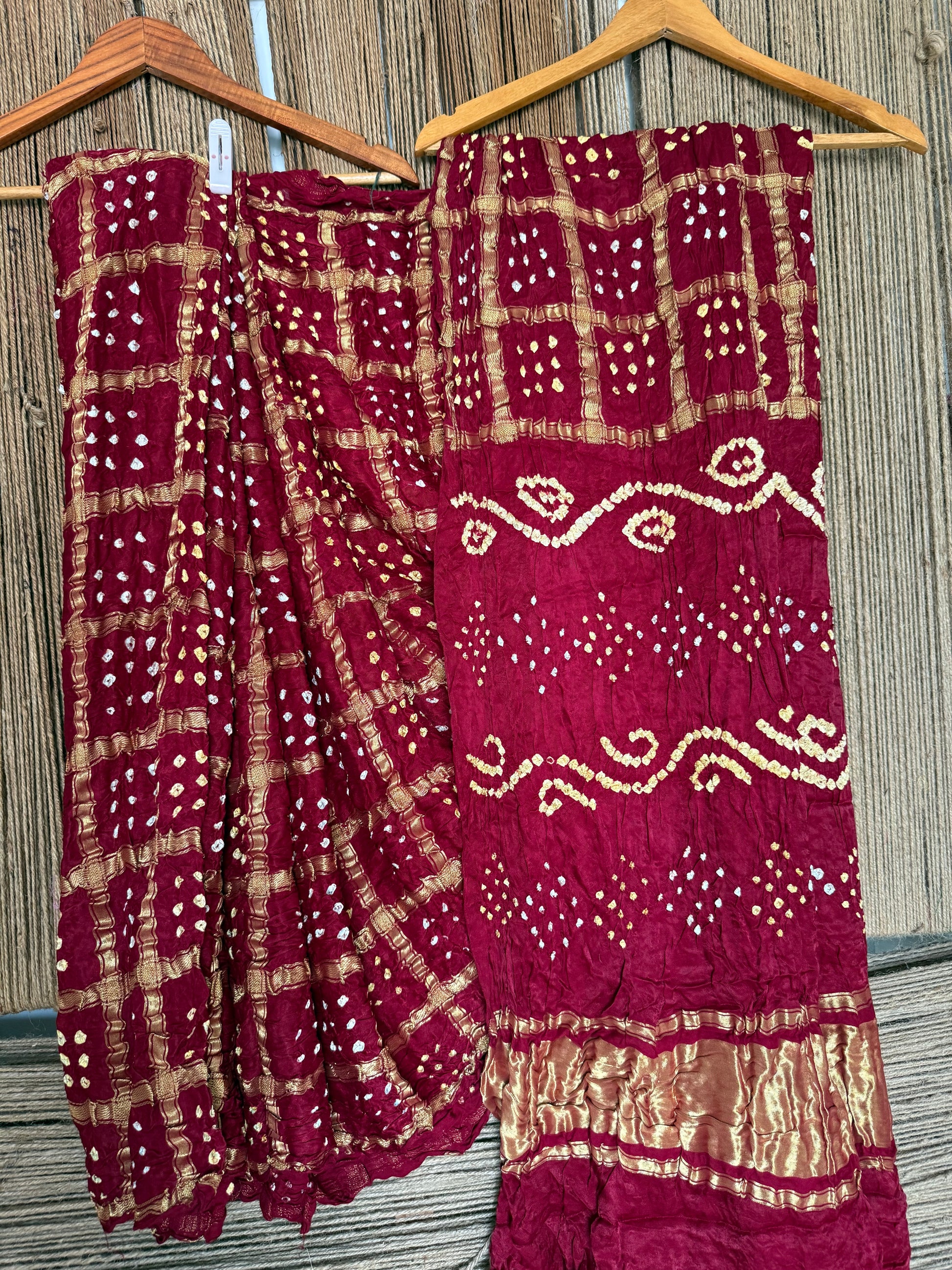 MAROON MODAL SILK GHARCHOLA BANDHANI SARI BS- 68