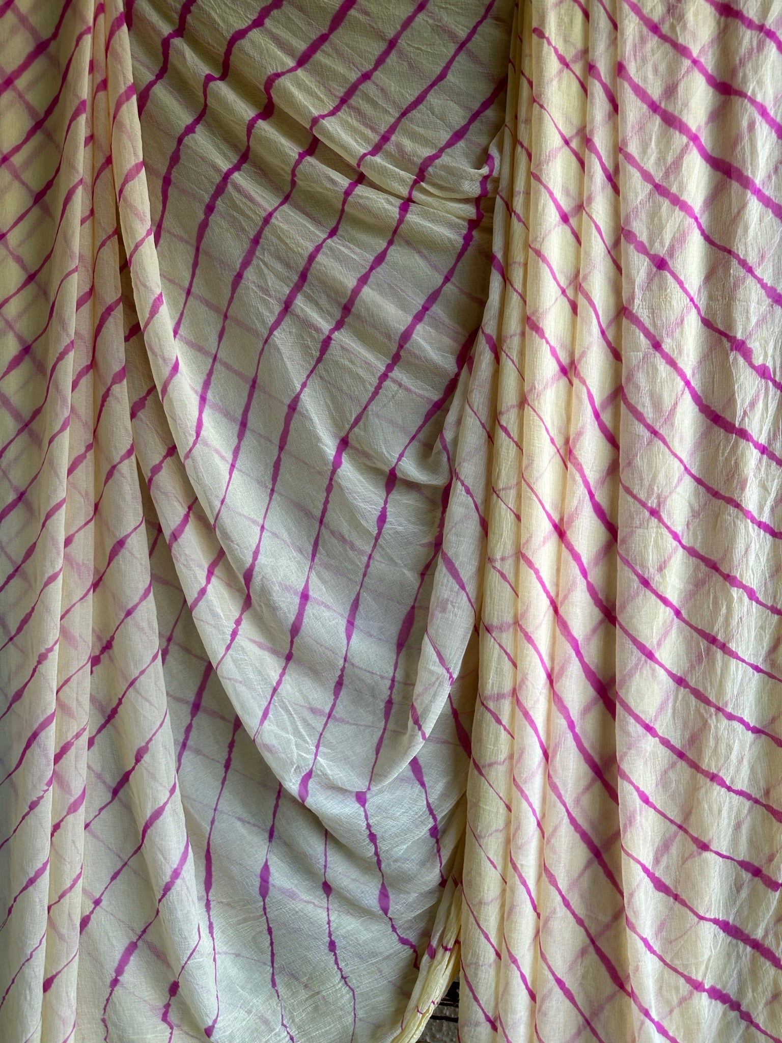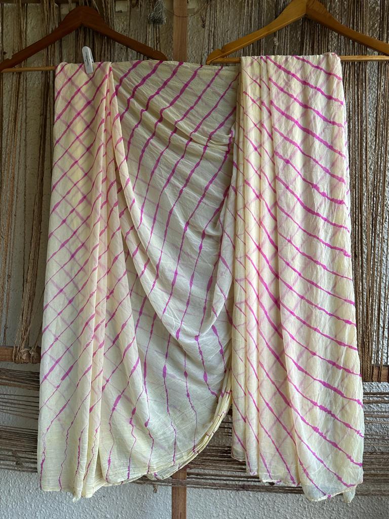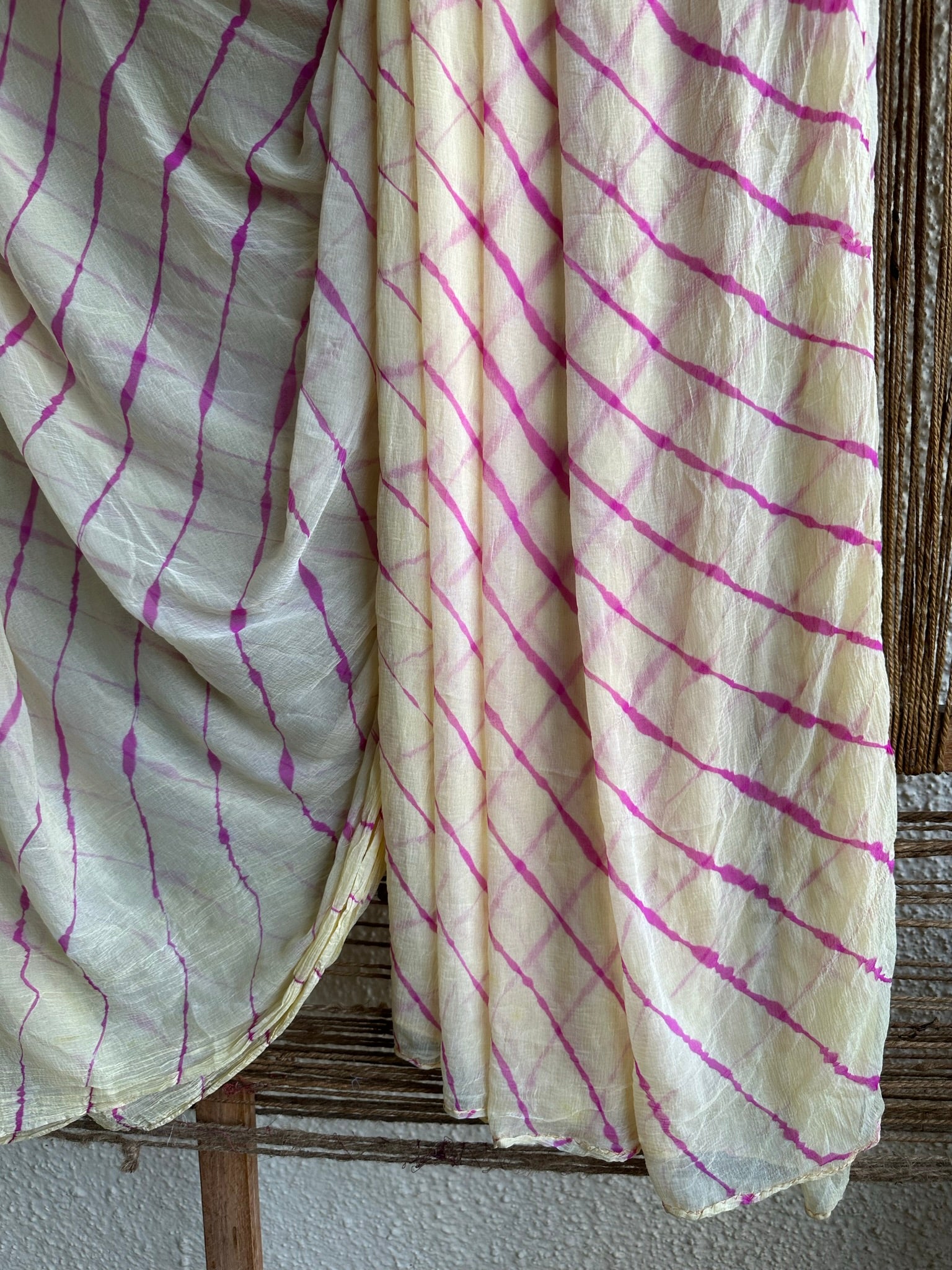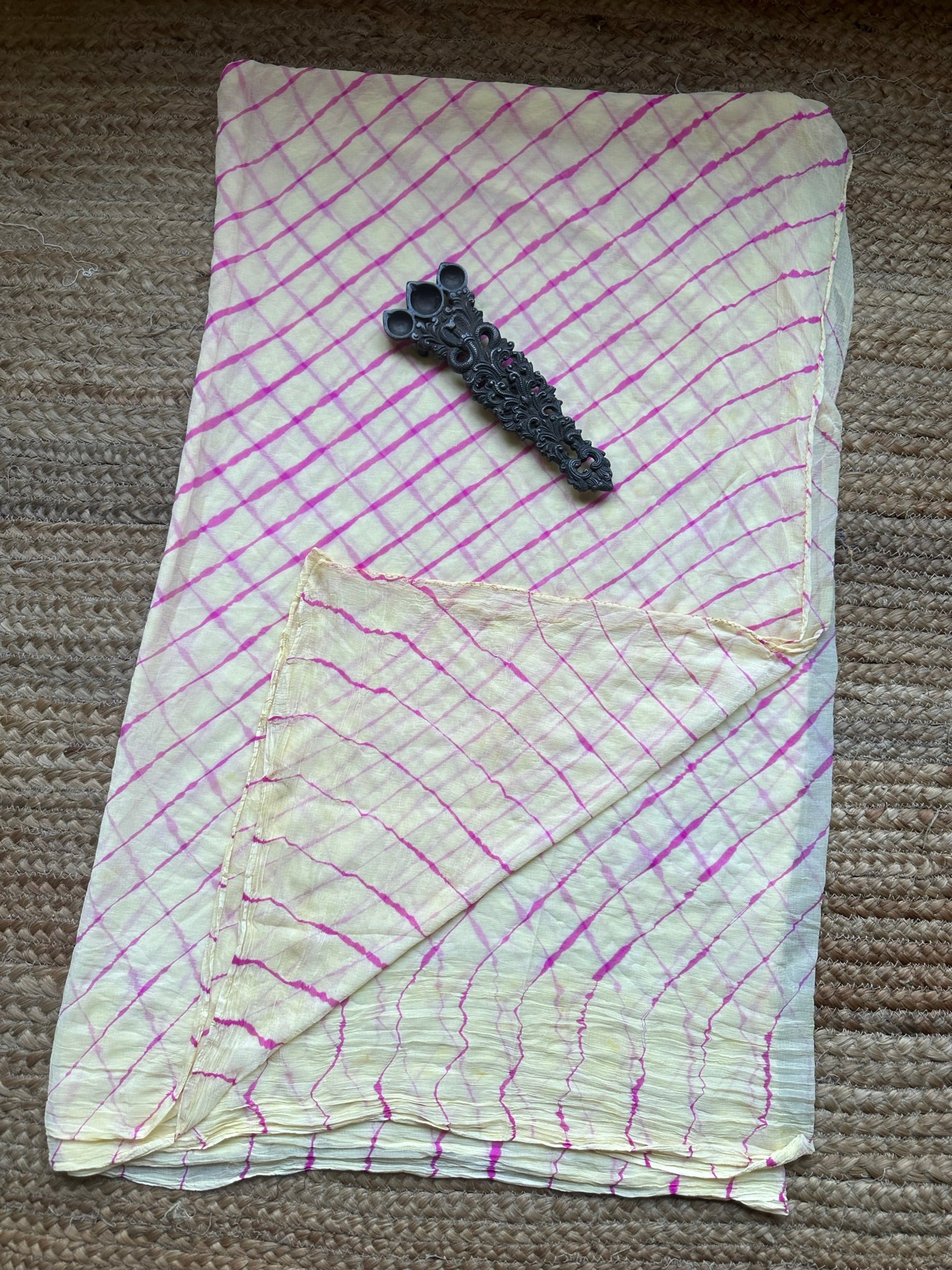 LIGHT YELLOW MULTI LEHARIYA HANDCRAFTED SAREE WITH HAVE ITS OWN CONTRAST BLOUSE PIECE (80 CMS)