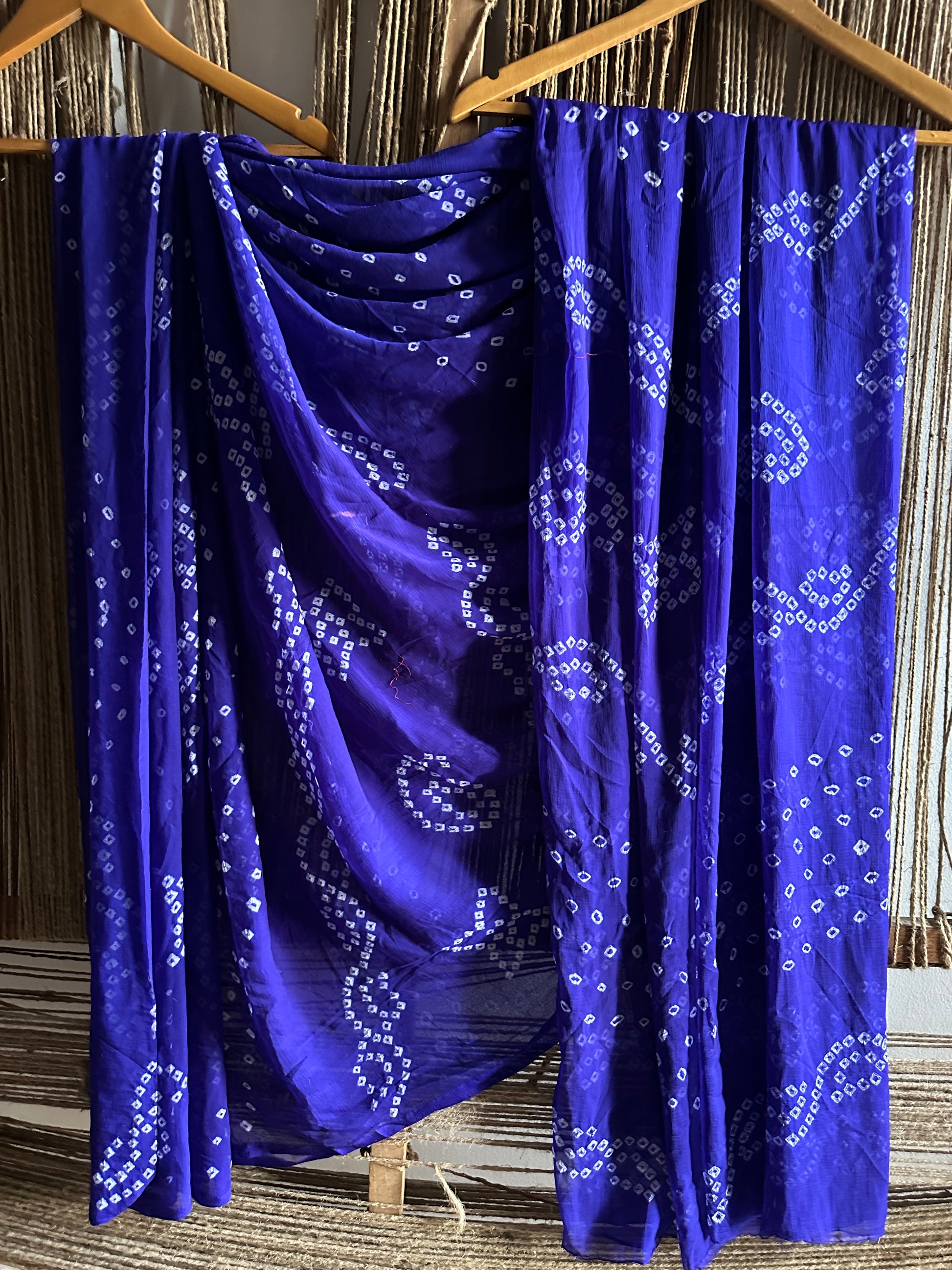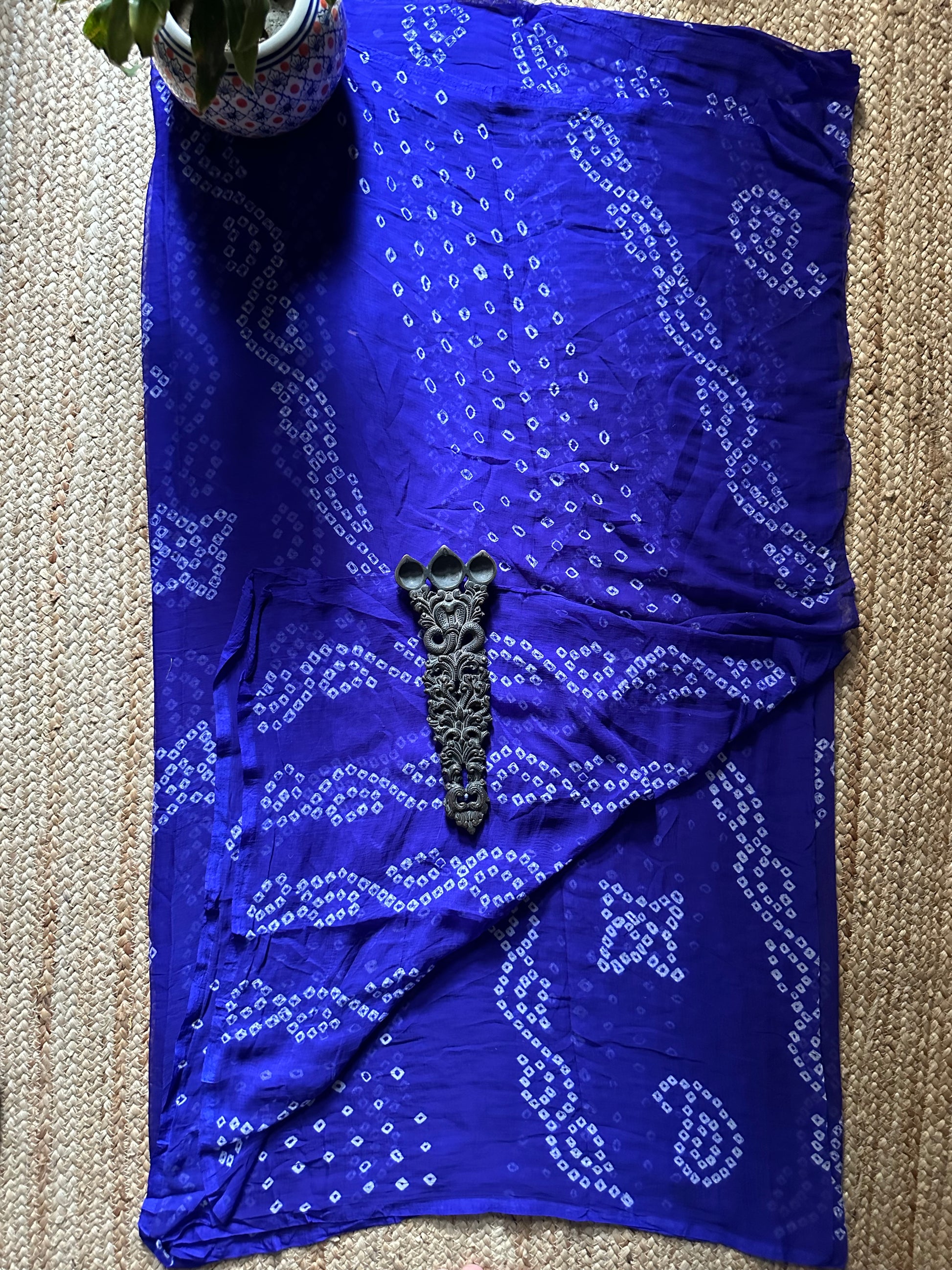 Ink Blue bandhani handcrafted saree with have its own contrast blouse piece (80 cms)