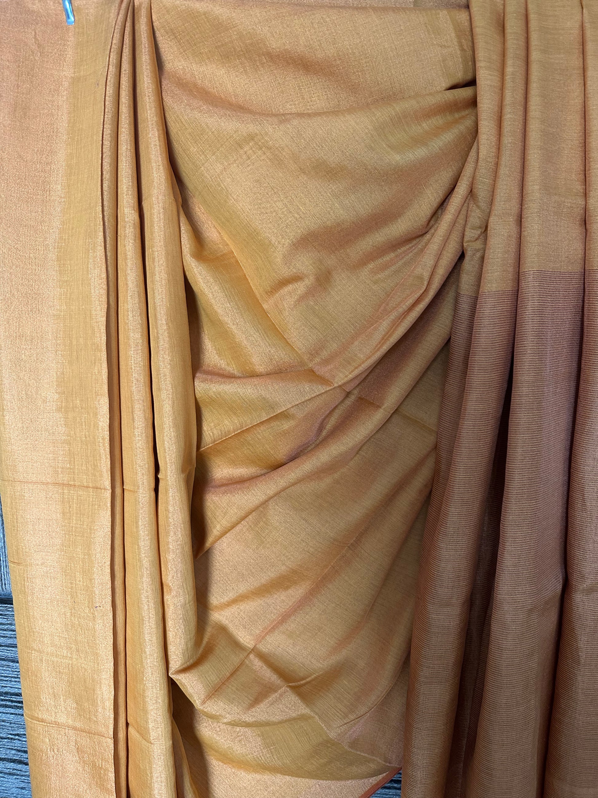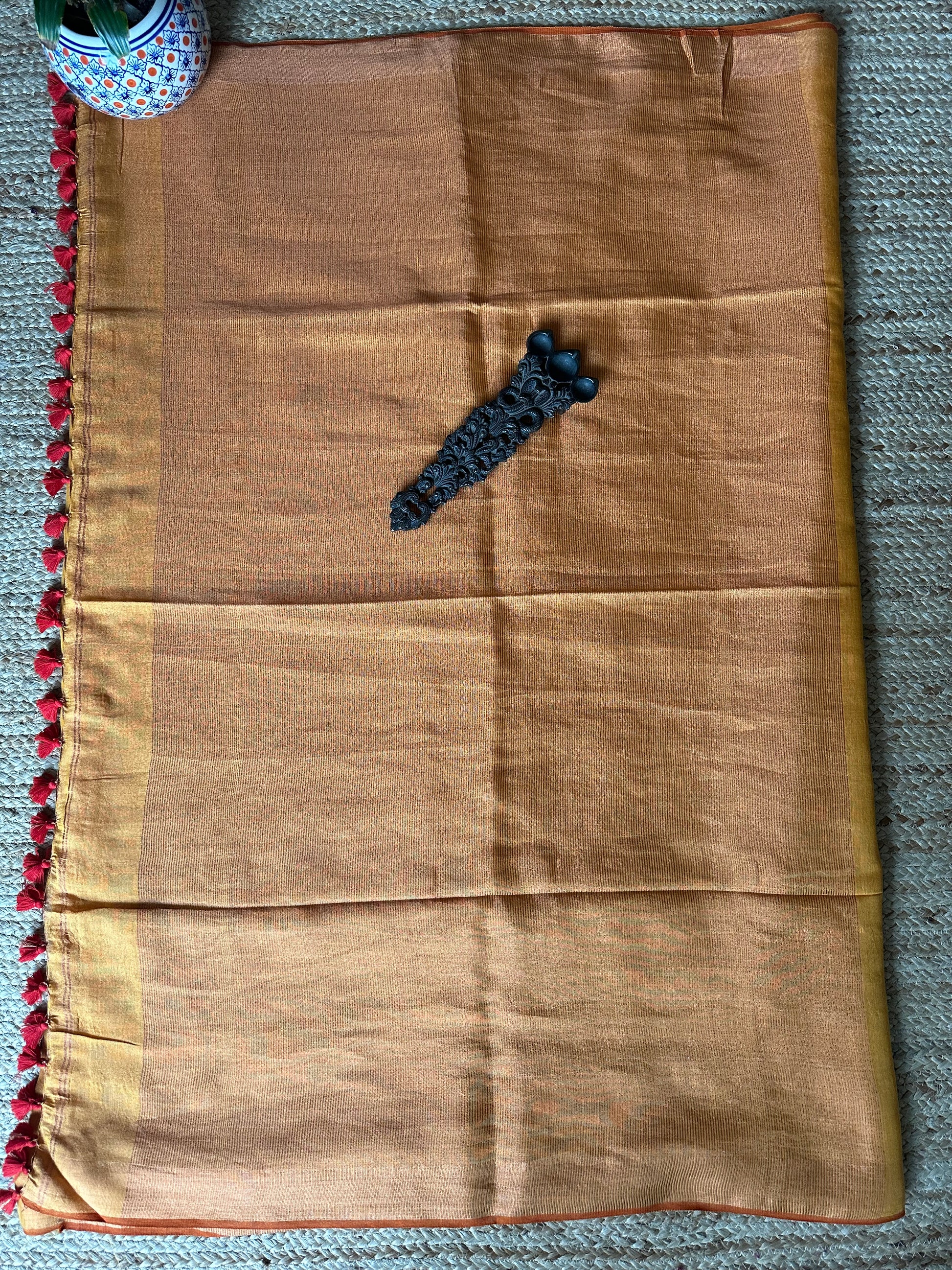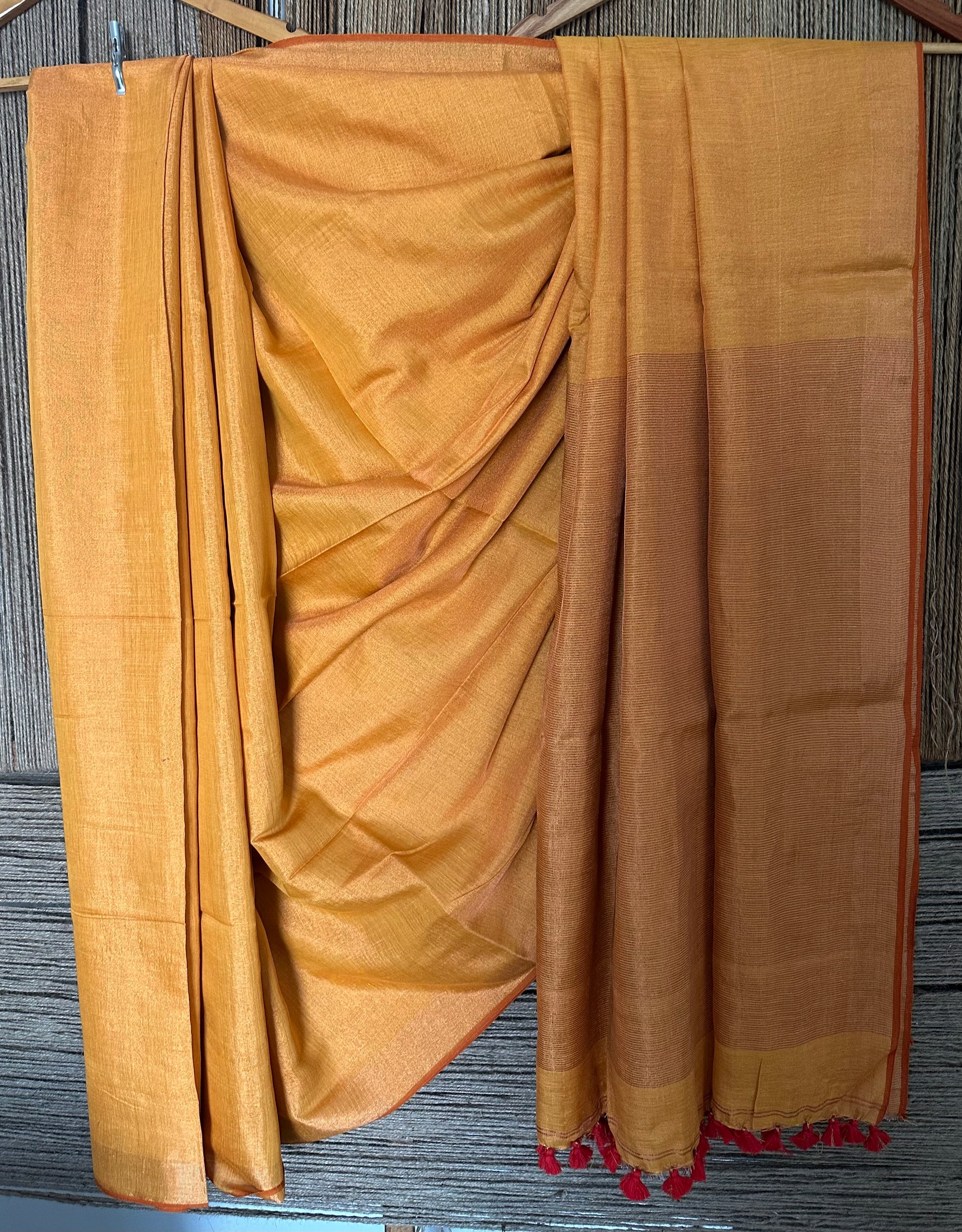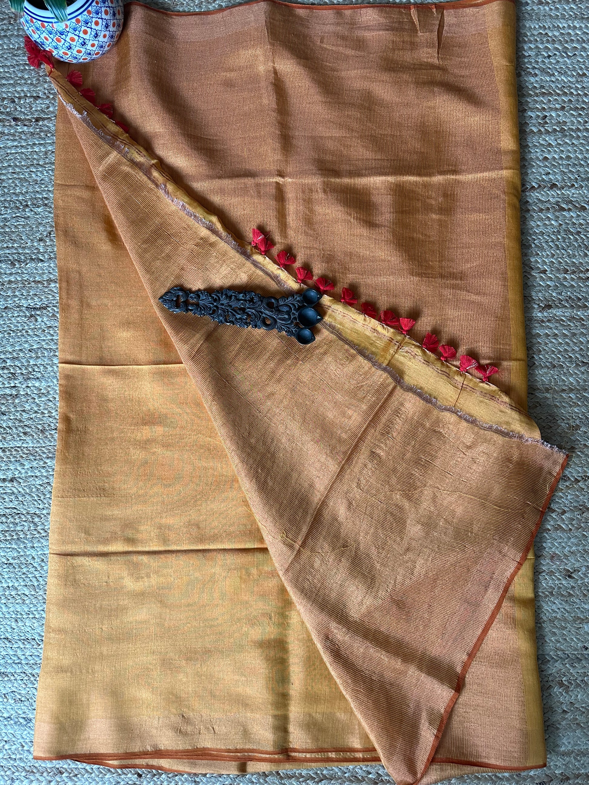 SANDALWOOD YELLOW GOLD TISSUE LINEN ZARI SARI WITH WOVEN RED BORDER TL-7