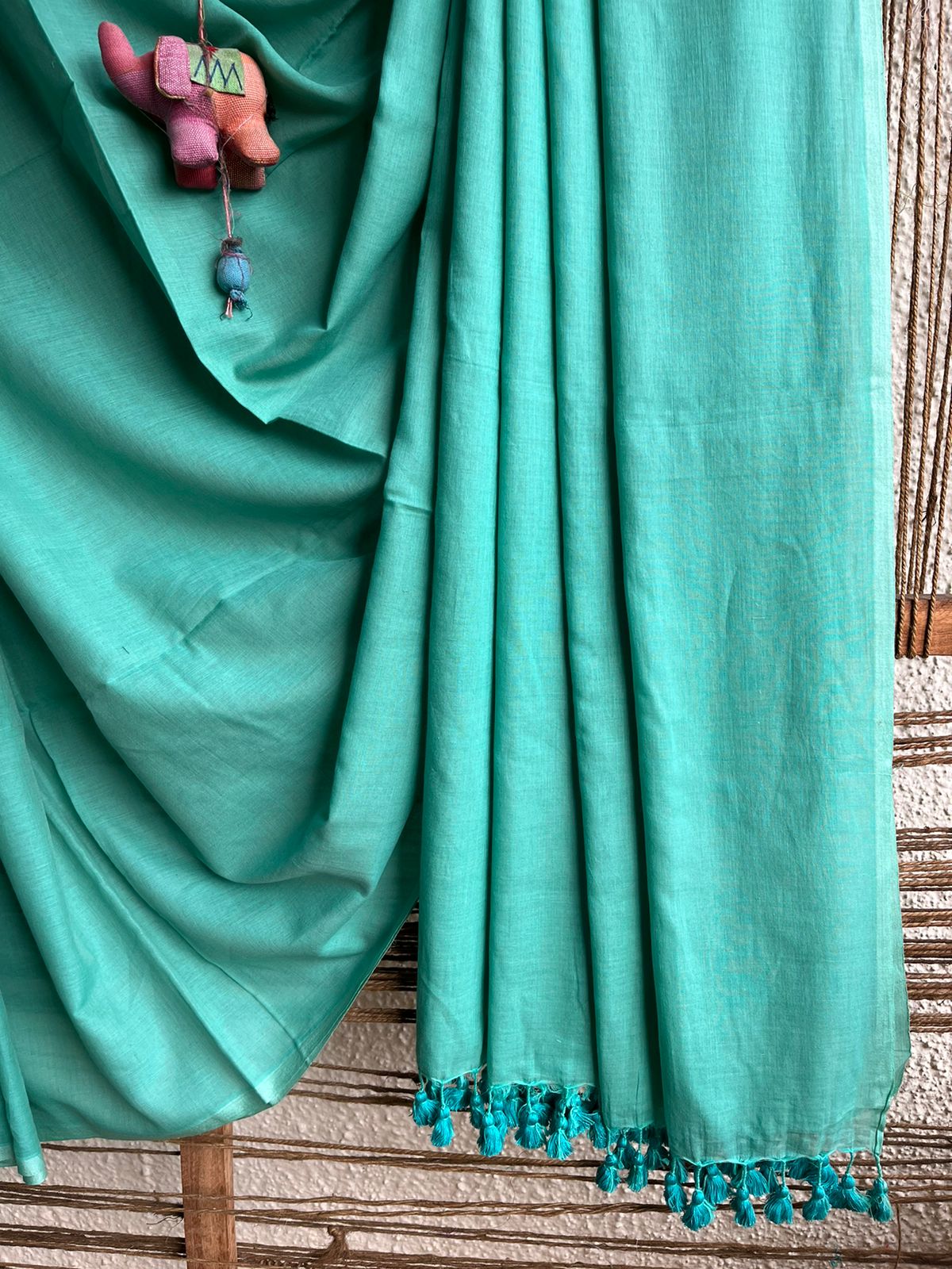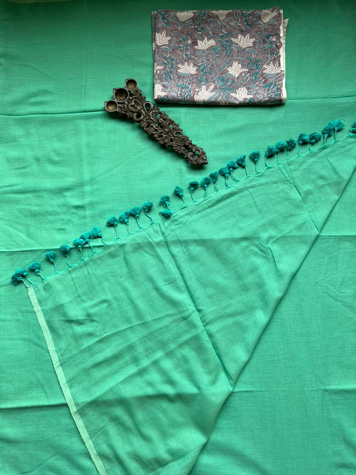 the saree is without blouse piece ,however we have paired with hancrafted blouse piece