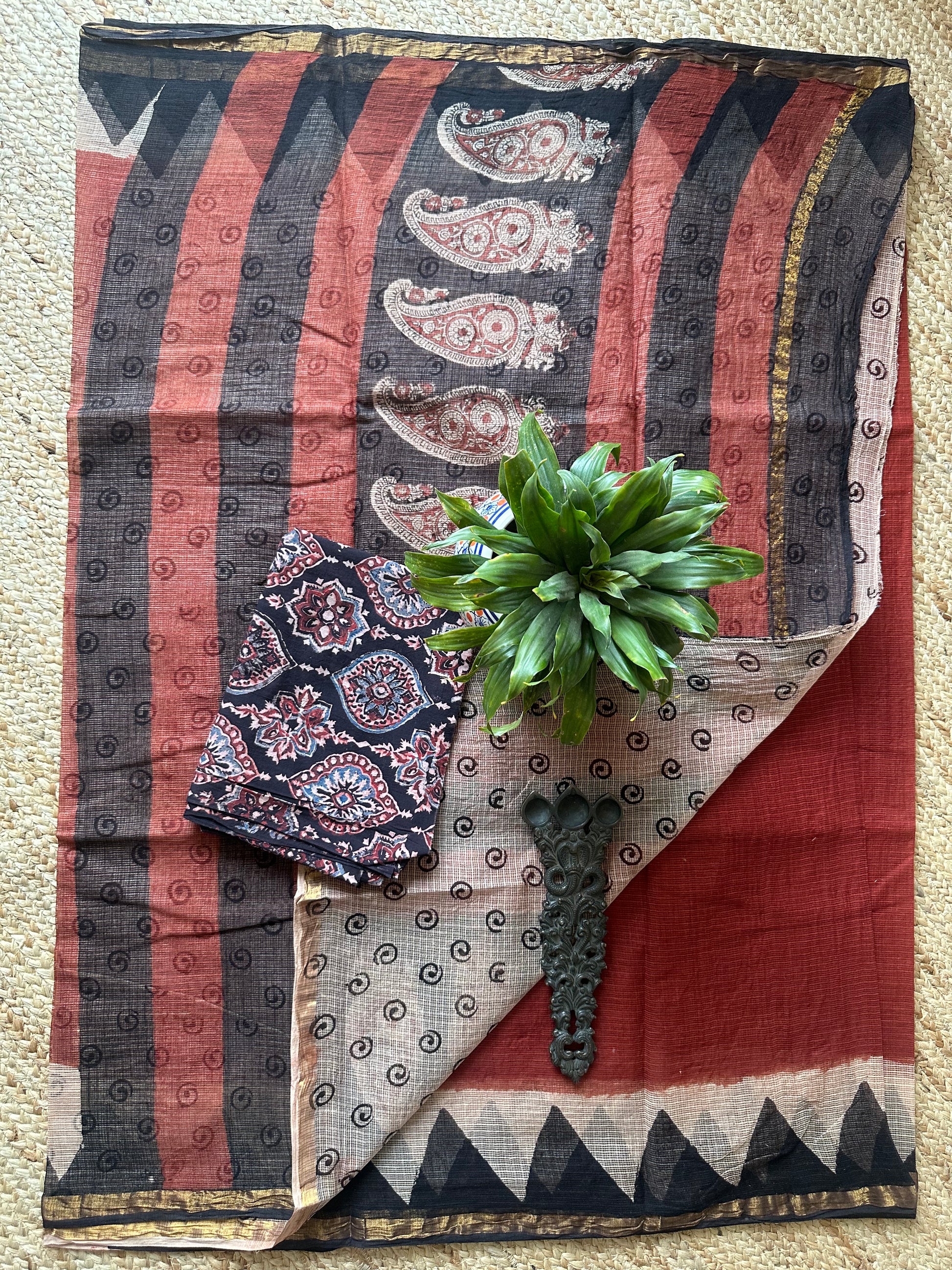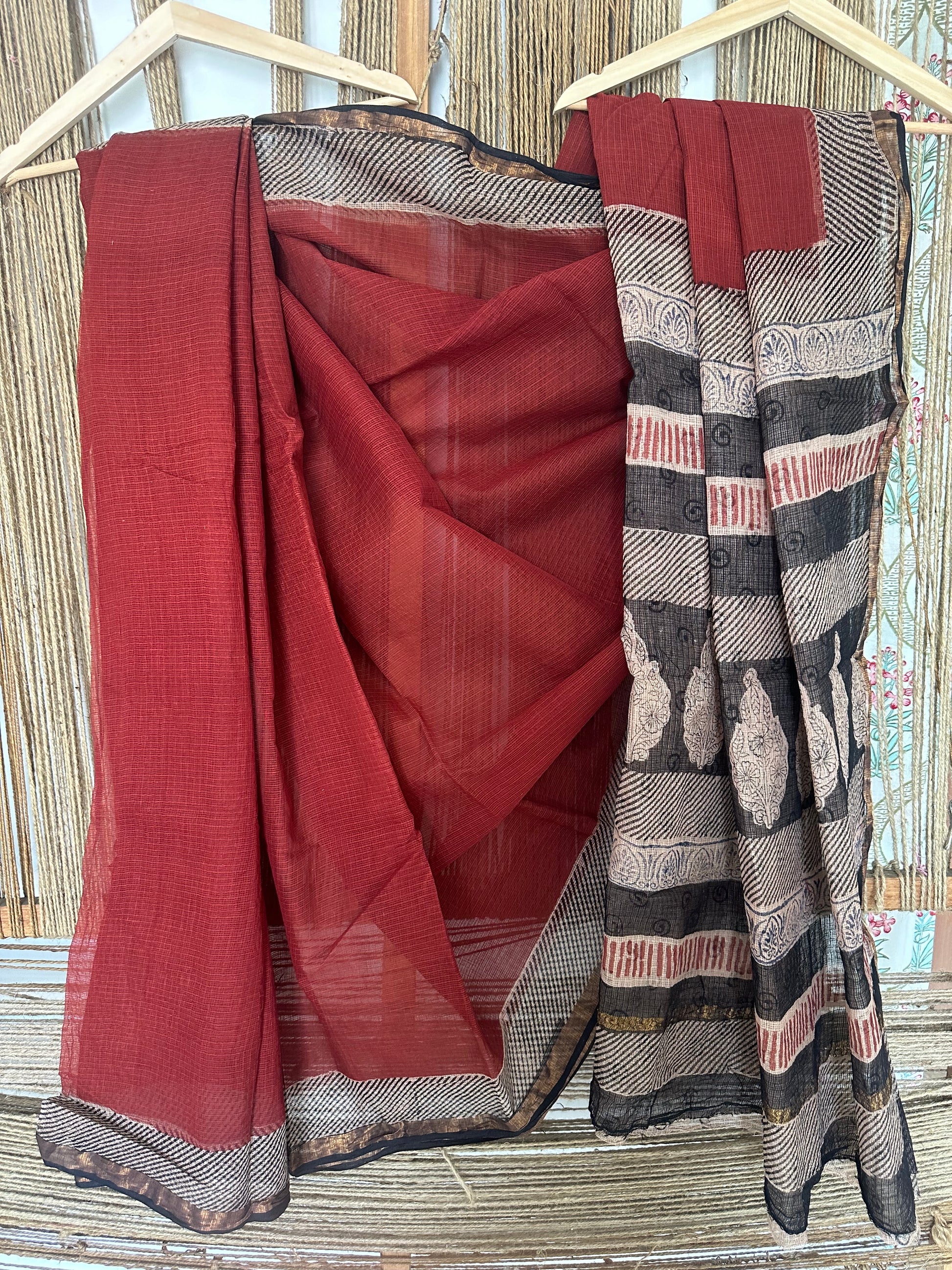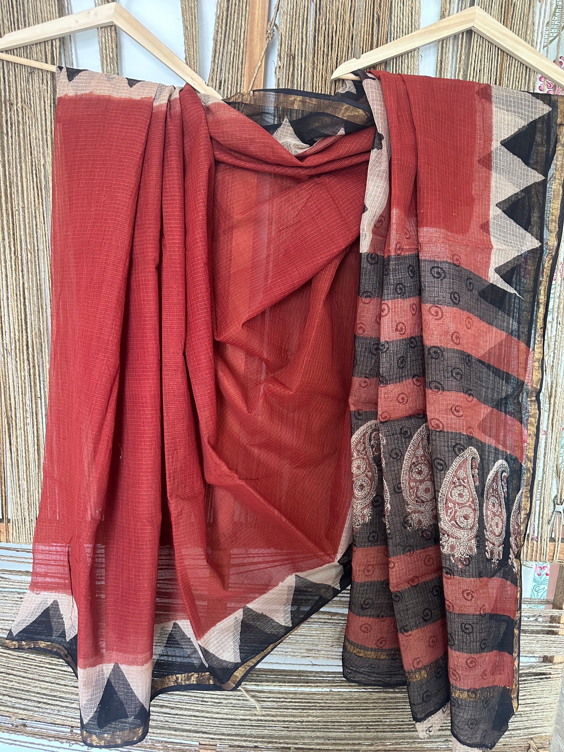 MAROON BLACK KOTA DORIA HANDBLOCK SARI