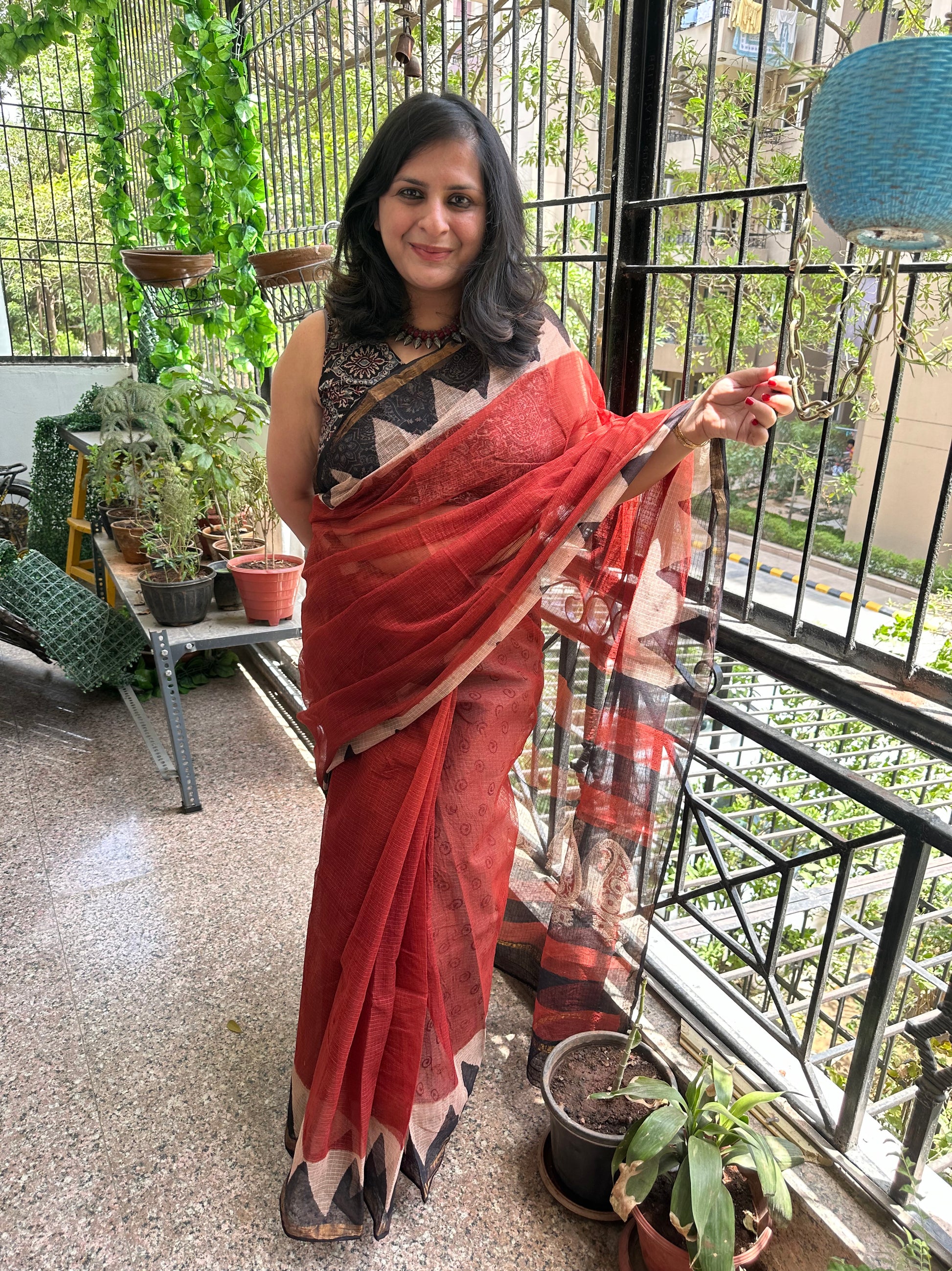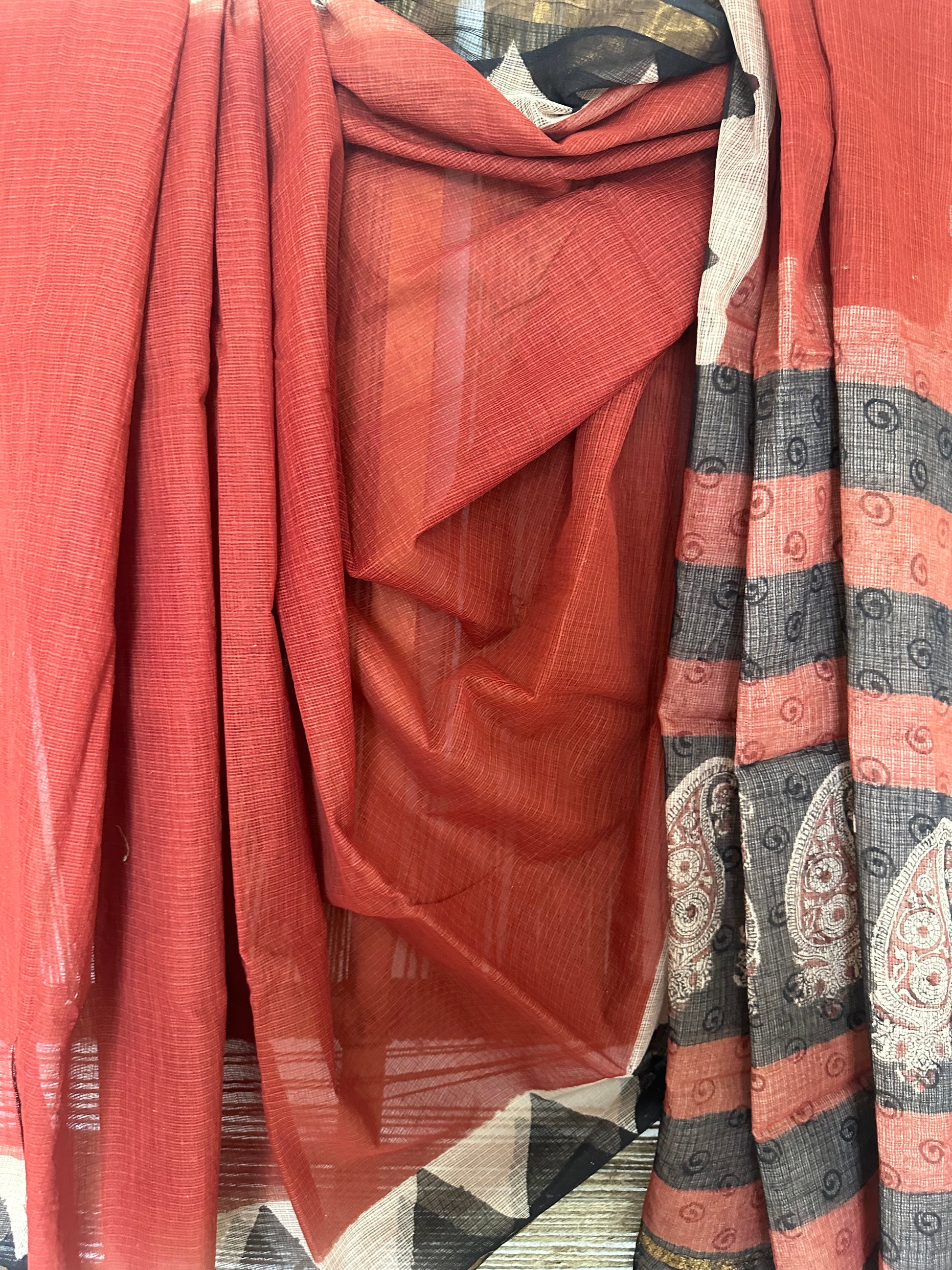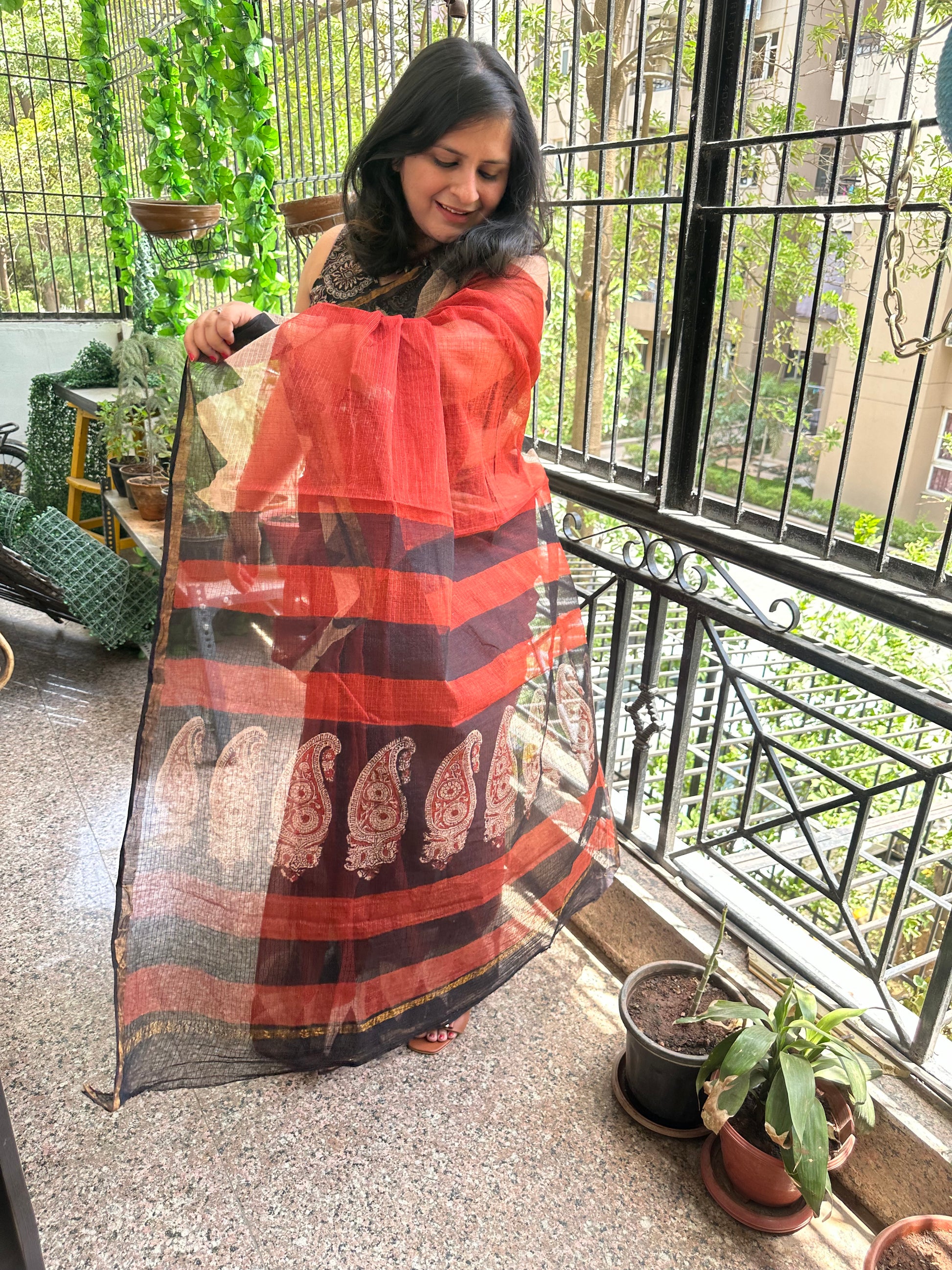 MAROON BLACK KOTA DORIA HANDBLOCK SARI